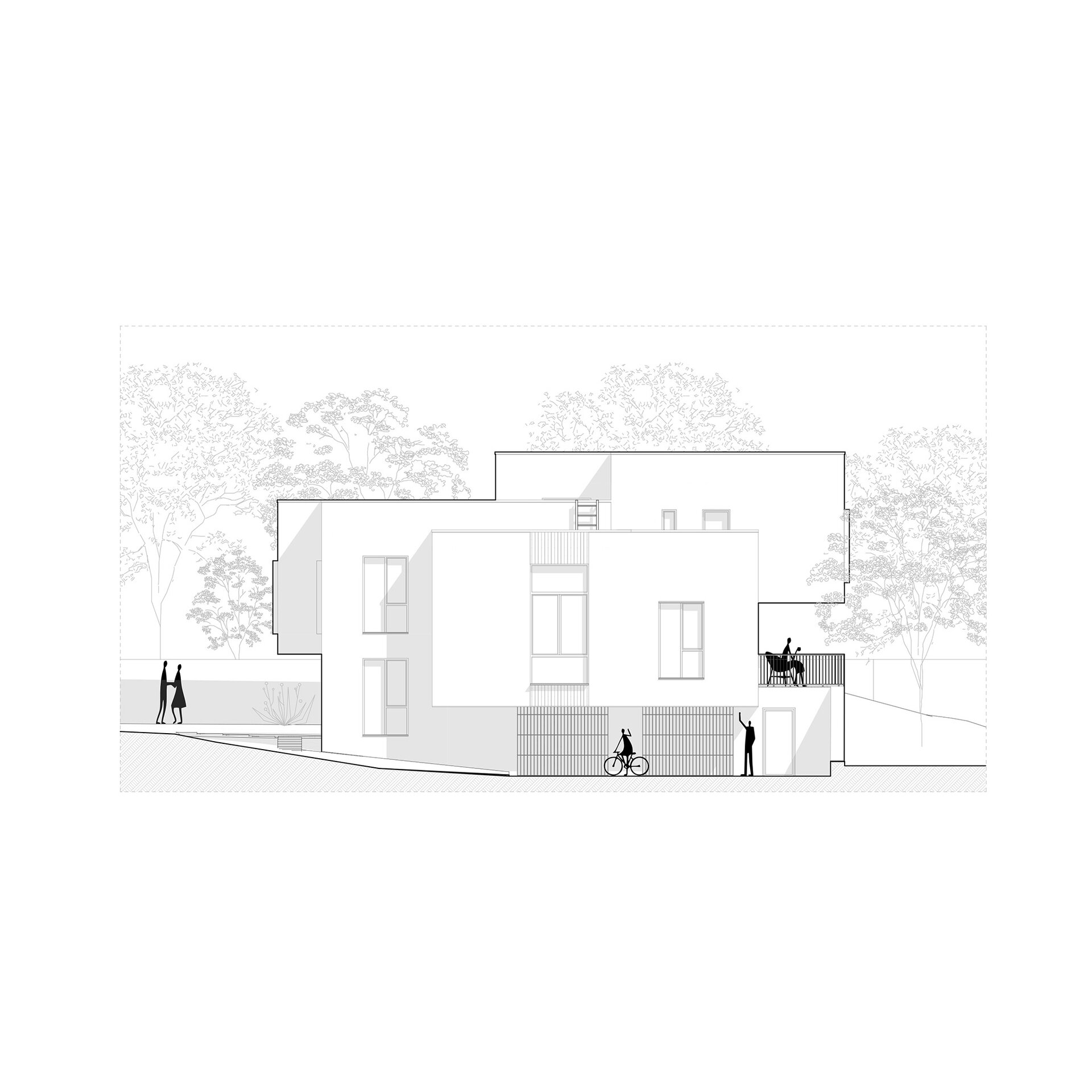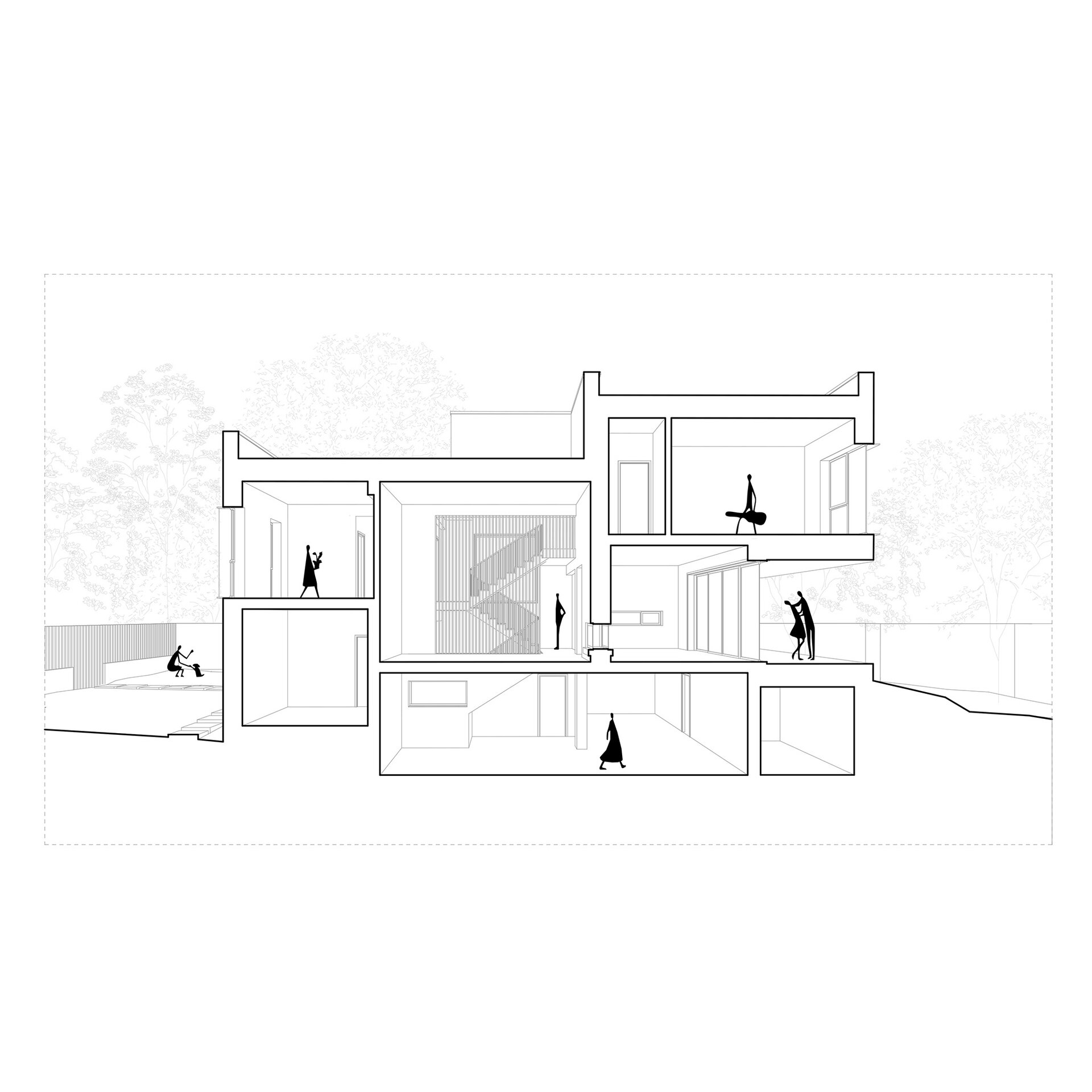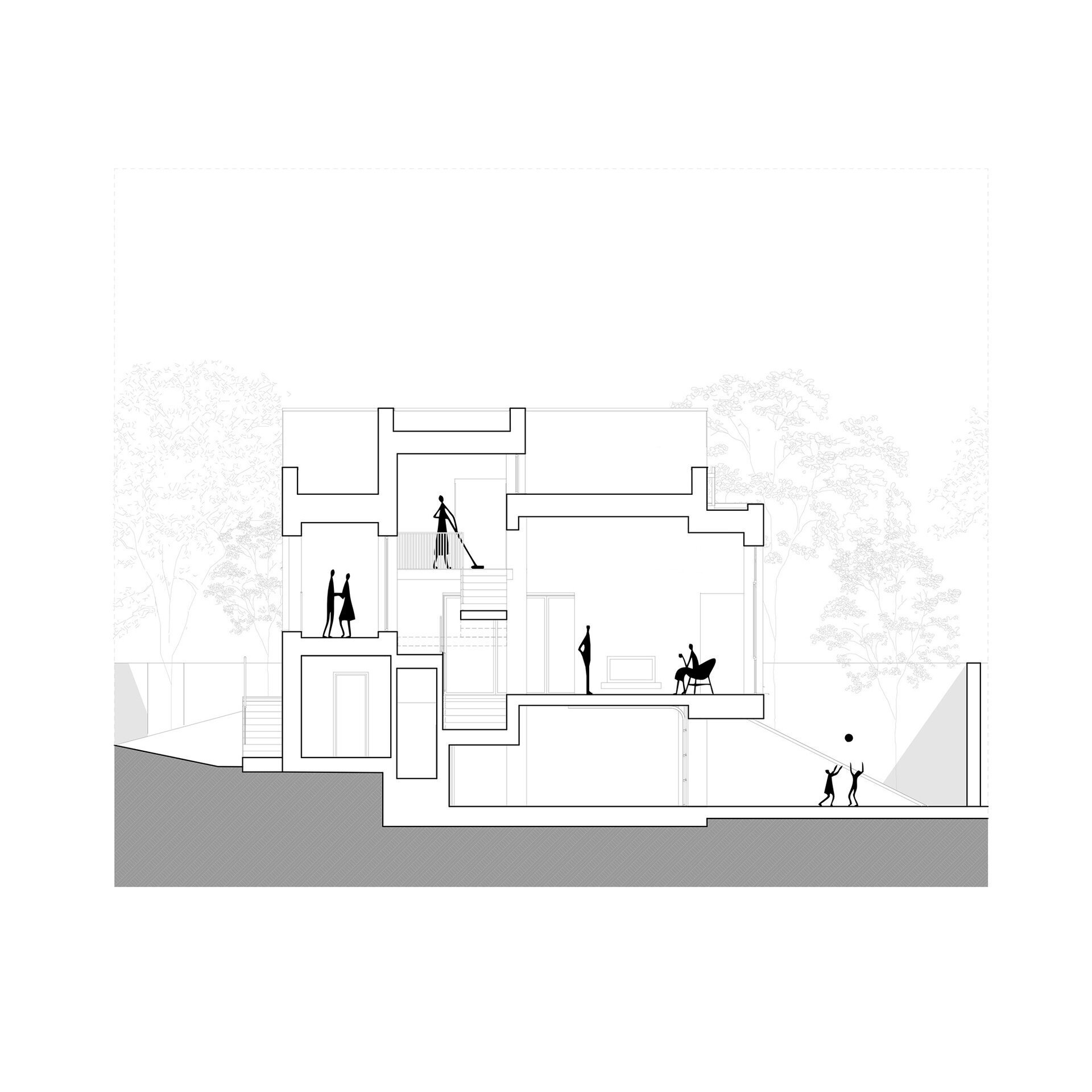 Mai mult decât o simplă organizare funcțională, casa urmărește calitatea locuirii și răspunde transformărilor stilului de viață contemporan. Arhitectura favorizează interacțiunea și continuitatea vizuală, dar în același timp păstrează intimitatea și autonomia fiecărui membru al familiei. Este o viziune asupra locuirii urbane de astăzi: deschisă, conectată și în permanent dialog cu exteriorul.
