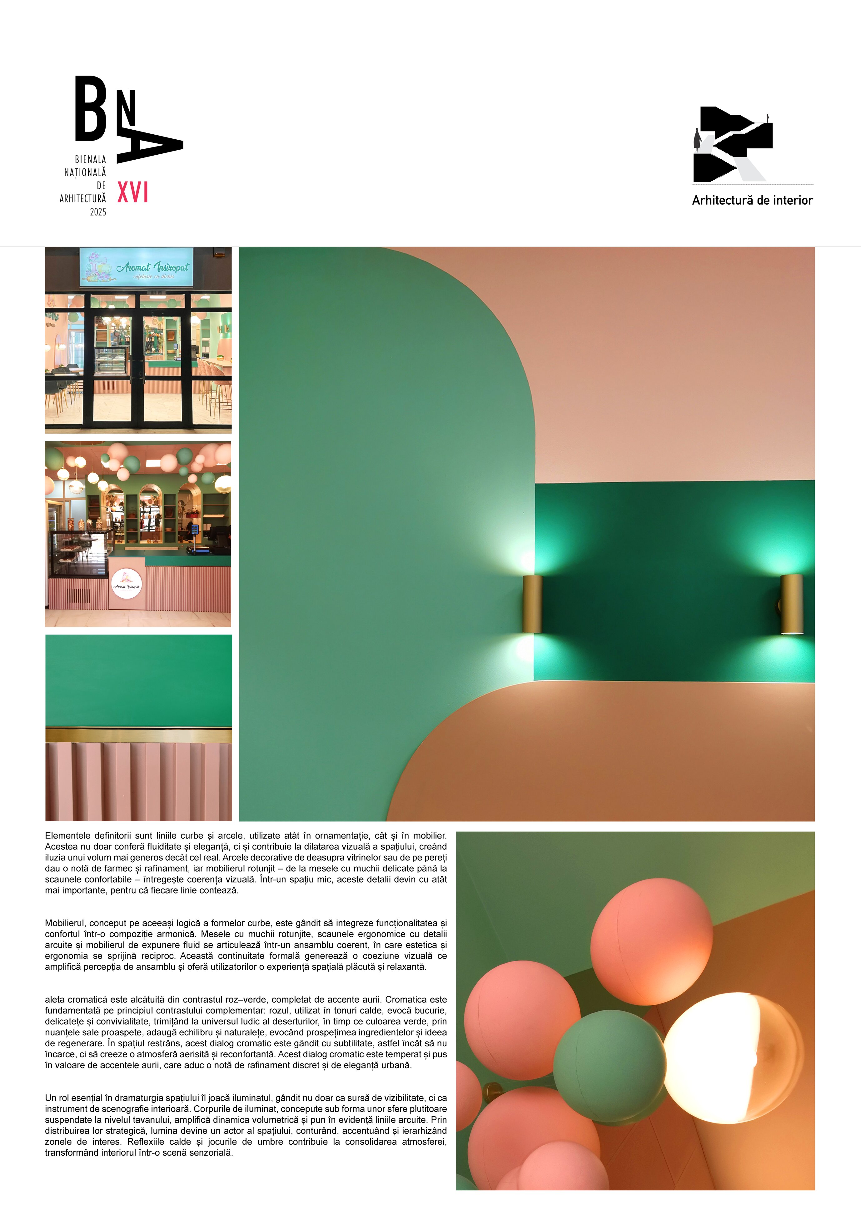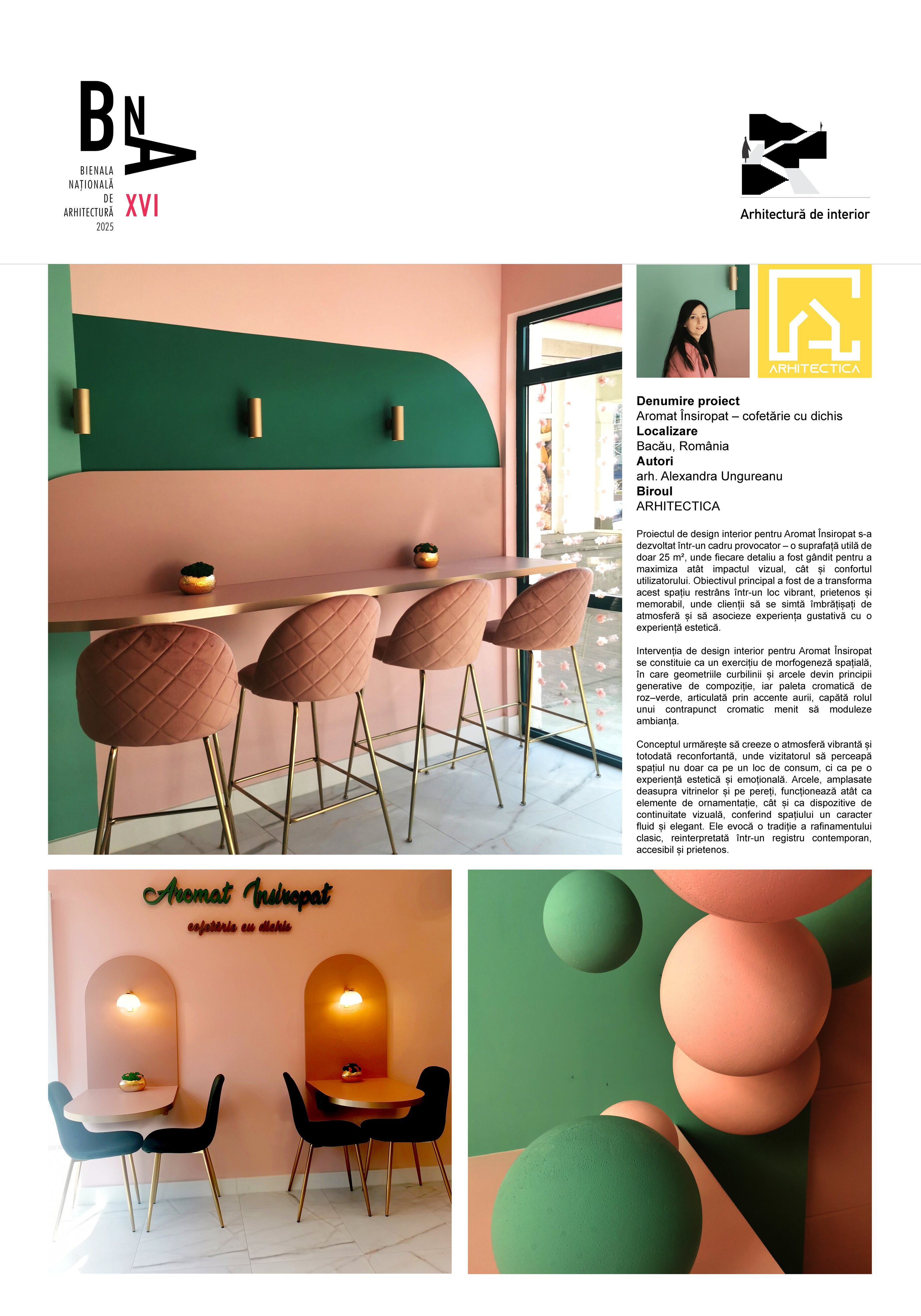 Proiectul de design interior pentru Aromat Însiropat s-a dezvoltat într-un cadru provocator – o suprafață utilă de doar 25 m², unde fiecare detaliu a fost gândit pentru a maximiza atât impactul vizual, cât și confortul utilizatorului. Obiectivul principal a fost de a transforma acest spațiu restrâns într-un loc vibrant, prietenos și ALTFEL, unde clienții să se simtă îmbrățișați de atmosferă și să asocieze experiența gustativă cu o experiență estetică.