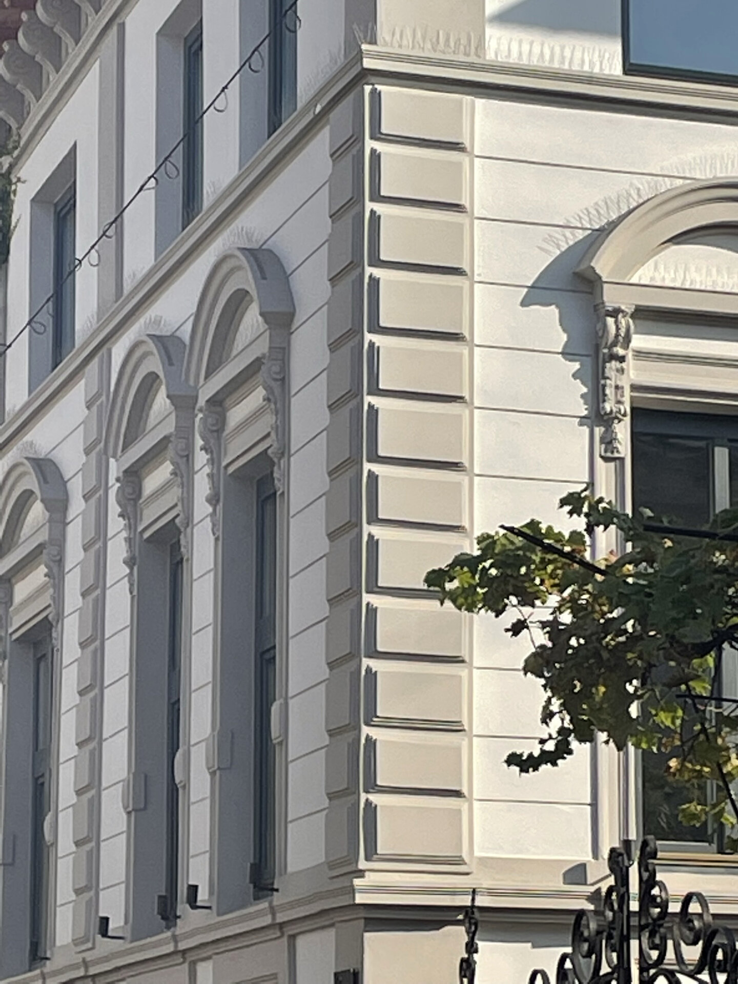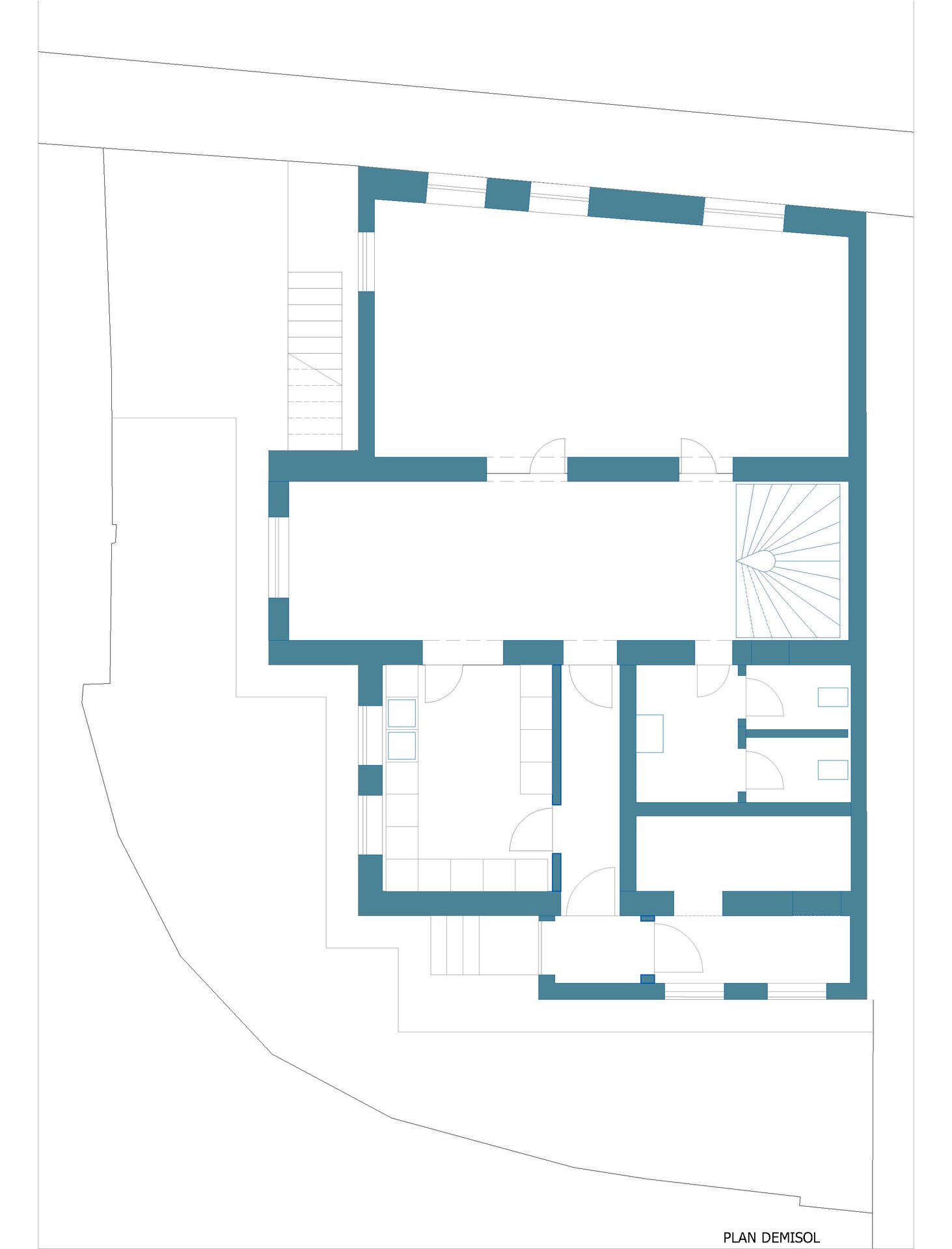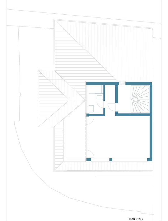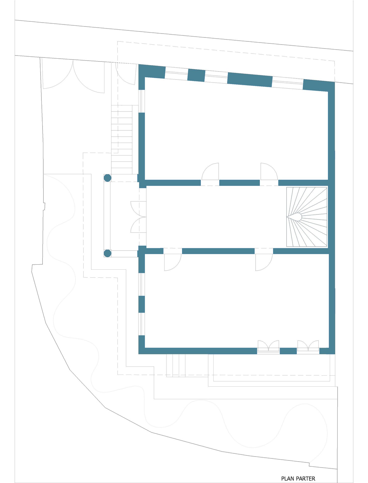 Desfășurarea stradala permitea amplificarea volumului casei cu un etaj, ceea ce conferă prestanța si un plus de monumentalitate. Mansarda, permisa de regulament, a fost dispusa discret, in partea posterioara a volumului.