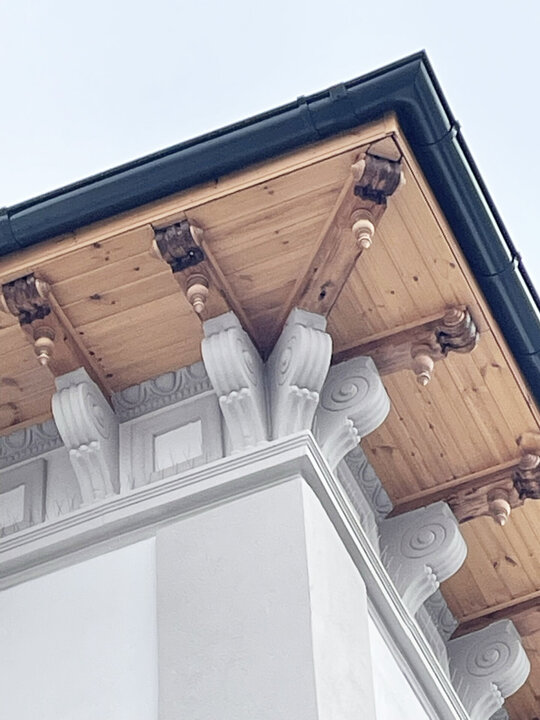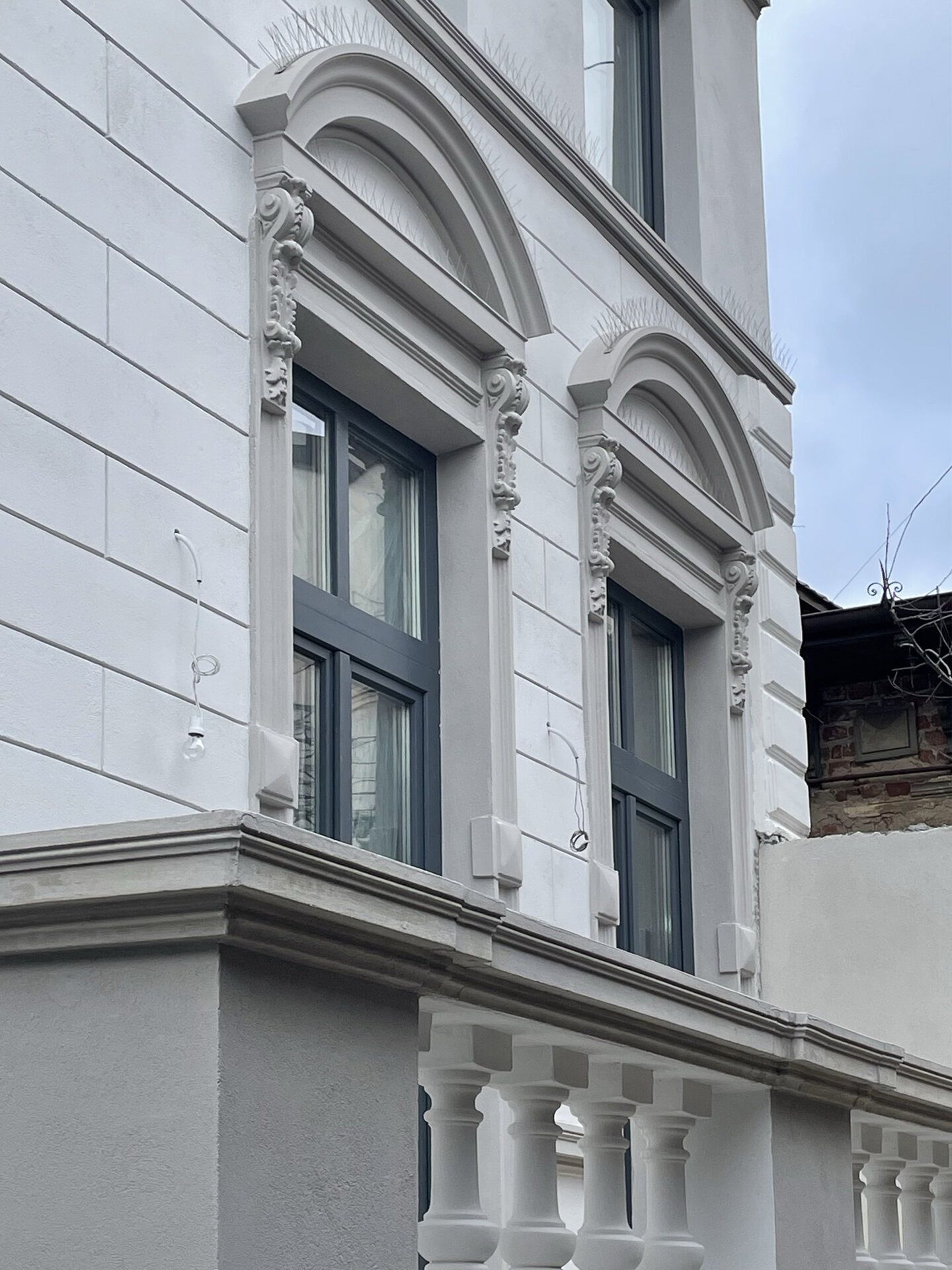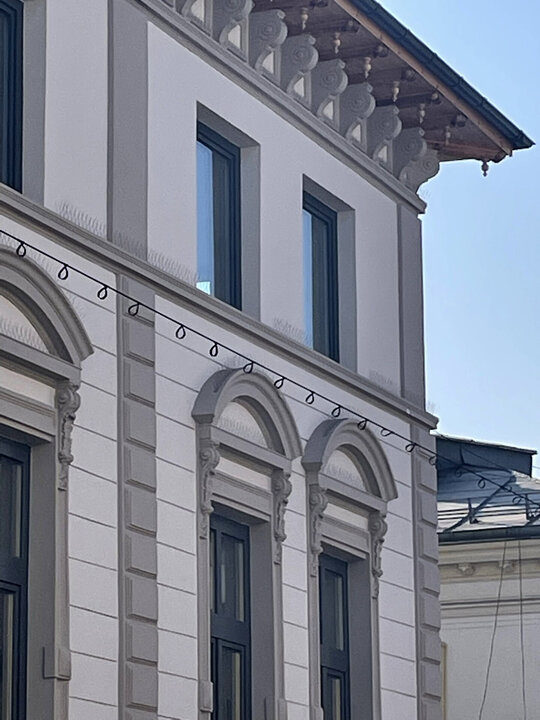 Casa existenta a fost consolidata in interior pentru a păstra elementele decorative prezente pe fațada. Acoperișul a fost refăcut - dupa adăugarea etajului - folosindu-se elementele originale care au putut fi recuperate. Foișorul a fost deschis, devenind un spațiu aerisit. Elementele decorative lipsa sau deteriorate au fost refăcute dupa cele originale.