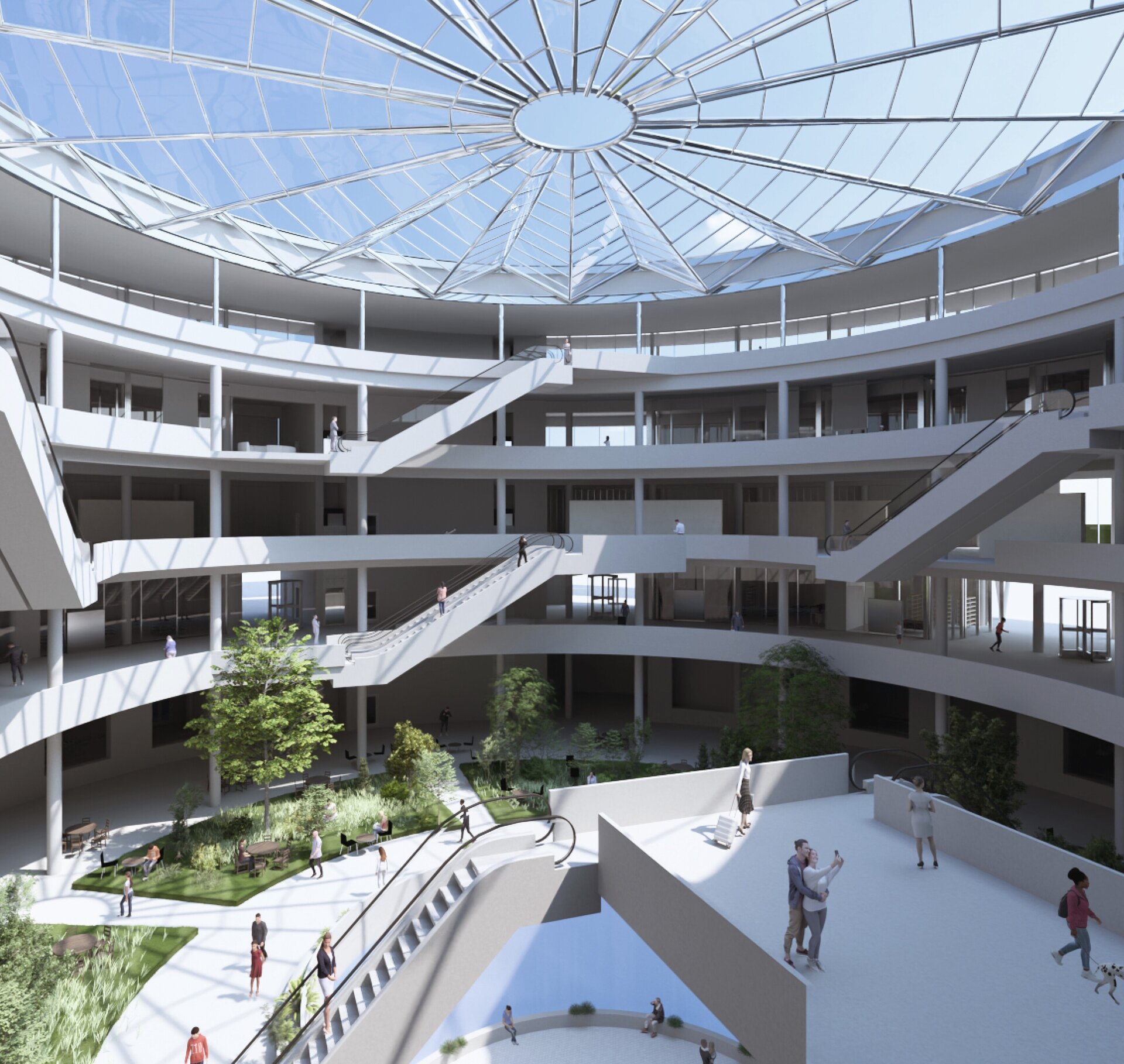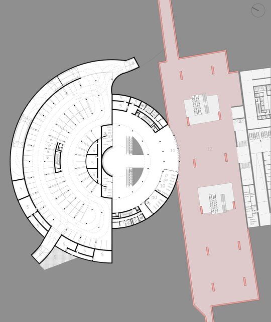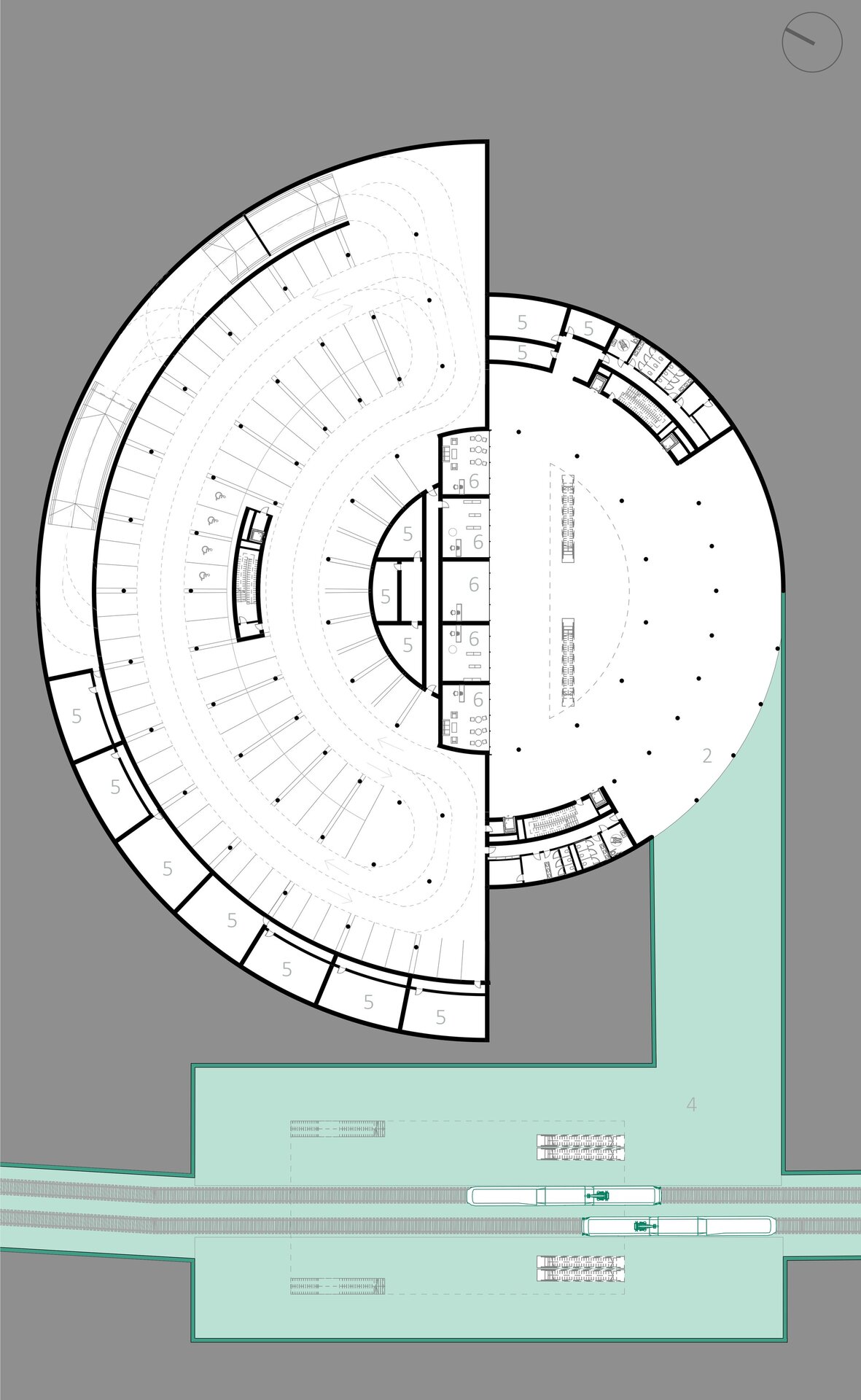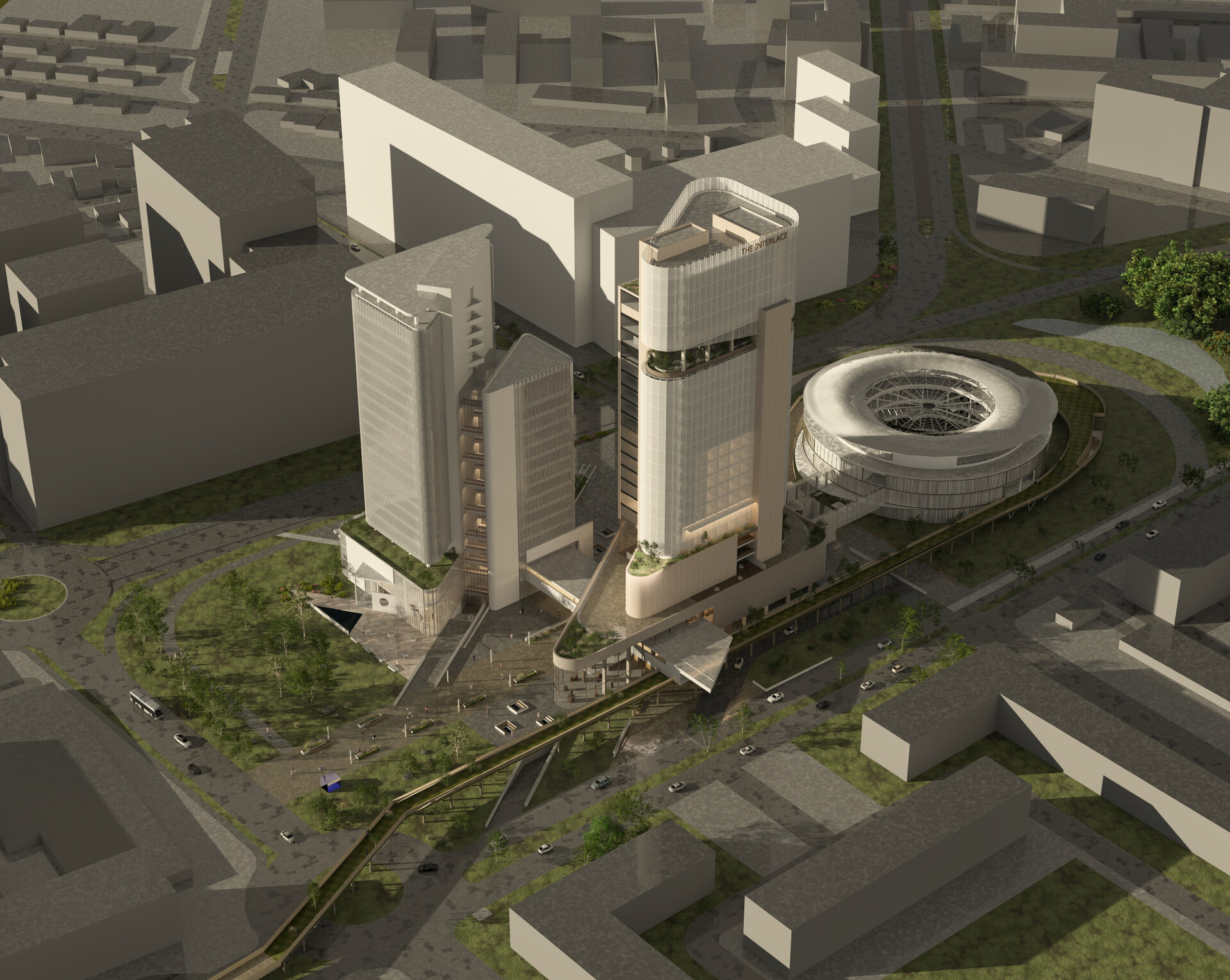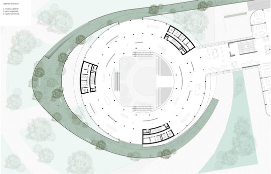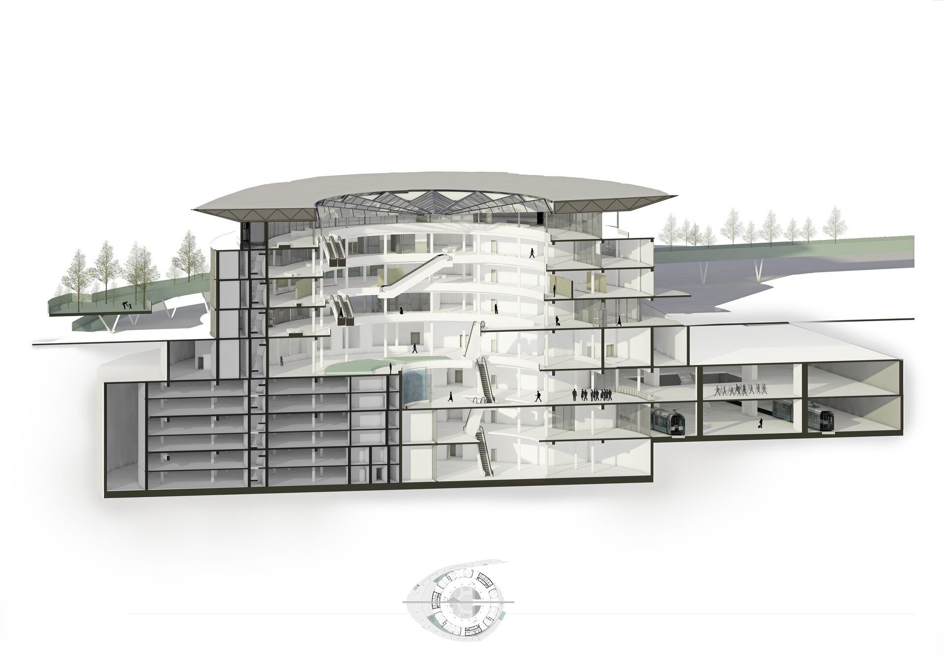 Imaginat ca un punct central în rețeaua de mobilitate a orașului, nodul integrează metroul existent, un tren de mare viteză, un pasaj rutier subteran și un parc suspendat, completate de funcțiuni publice și administrative.