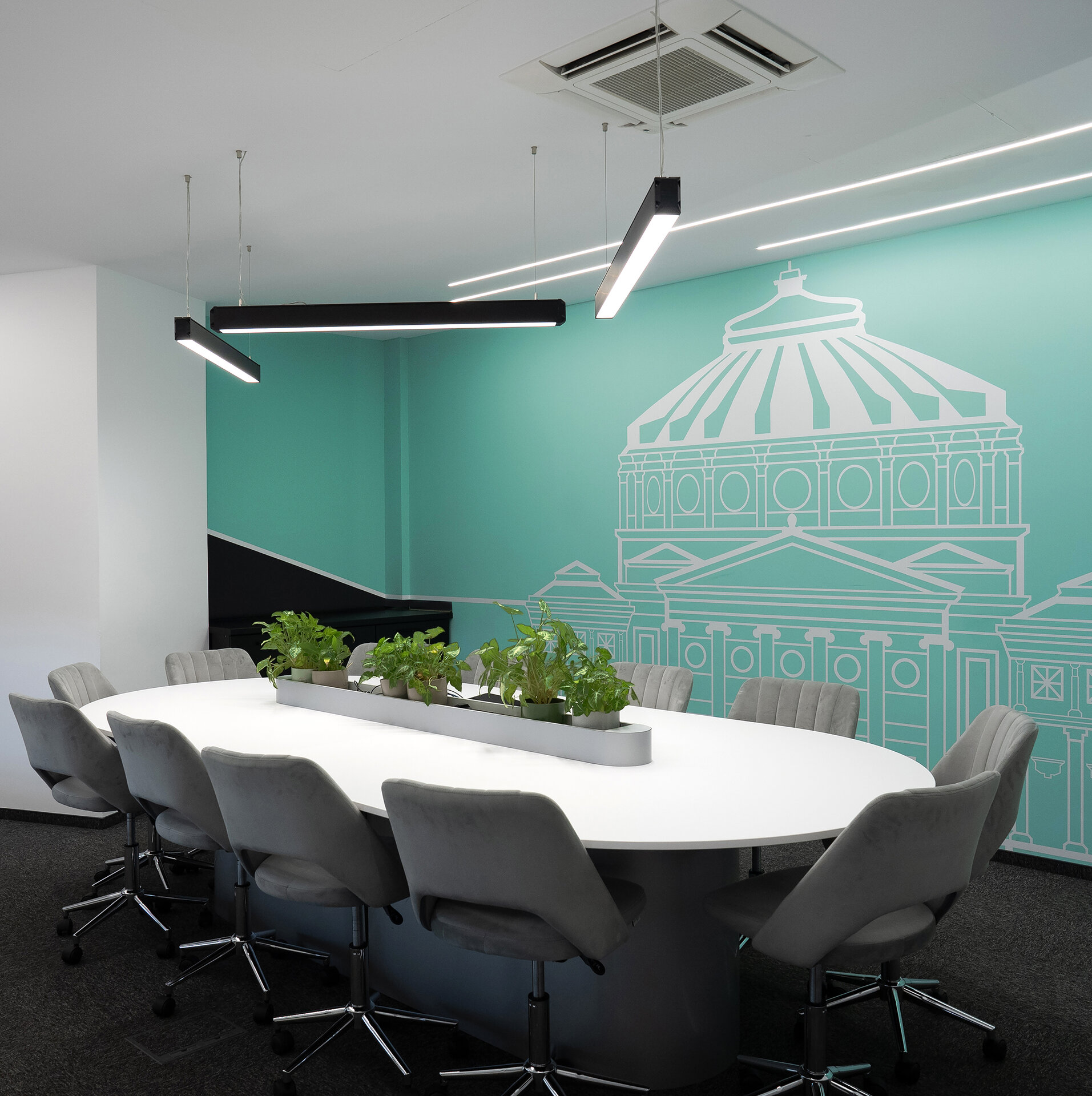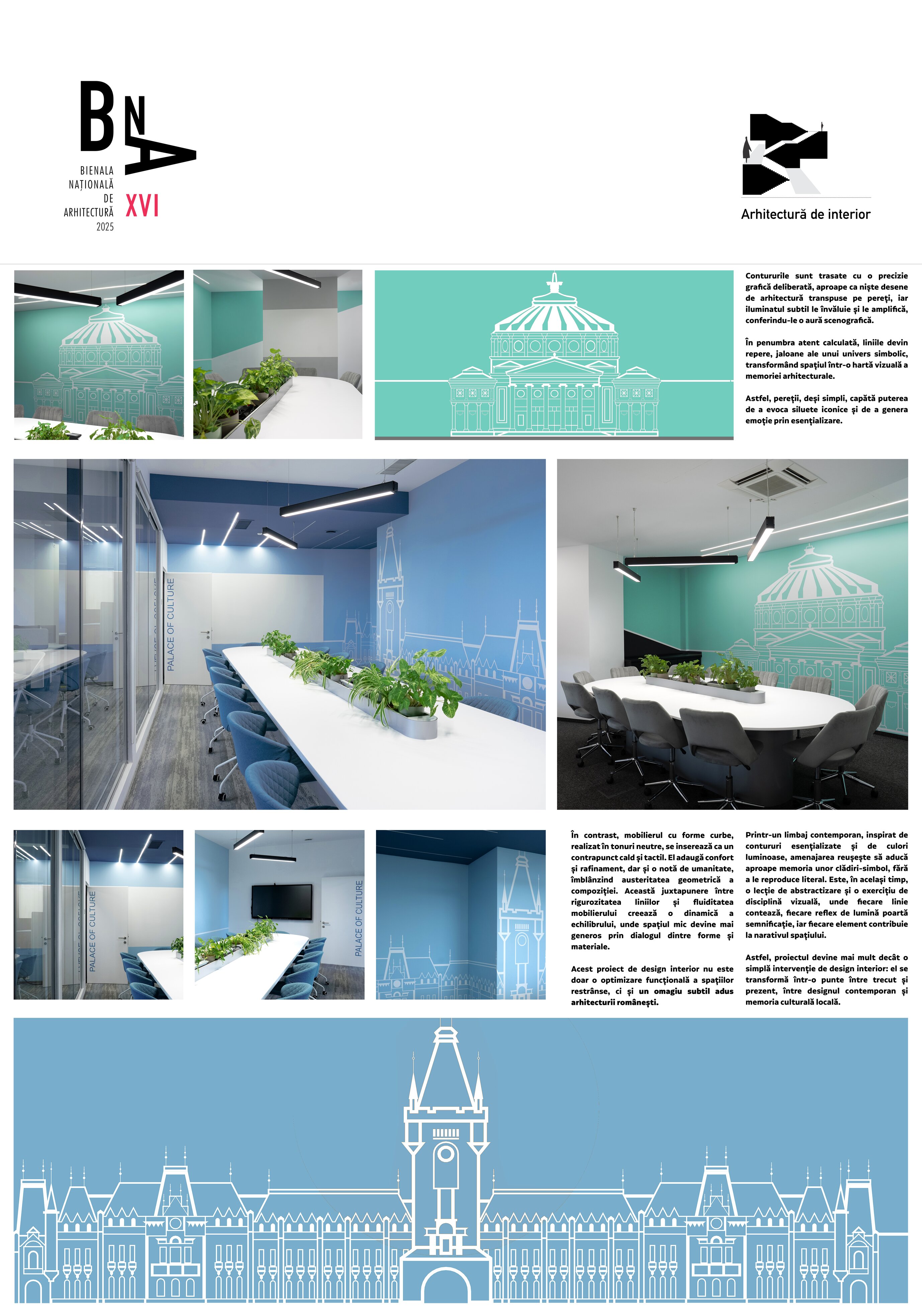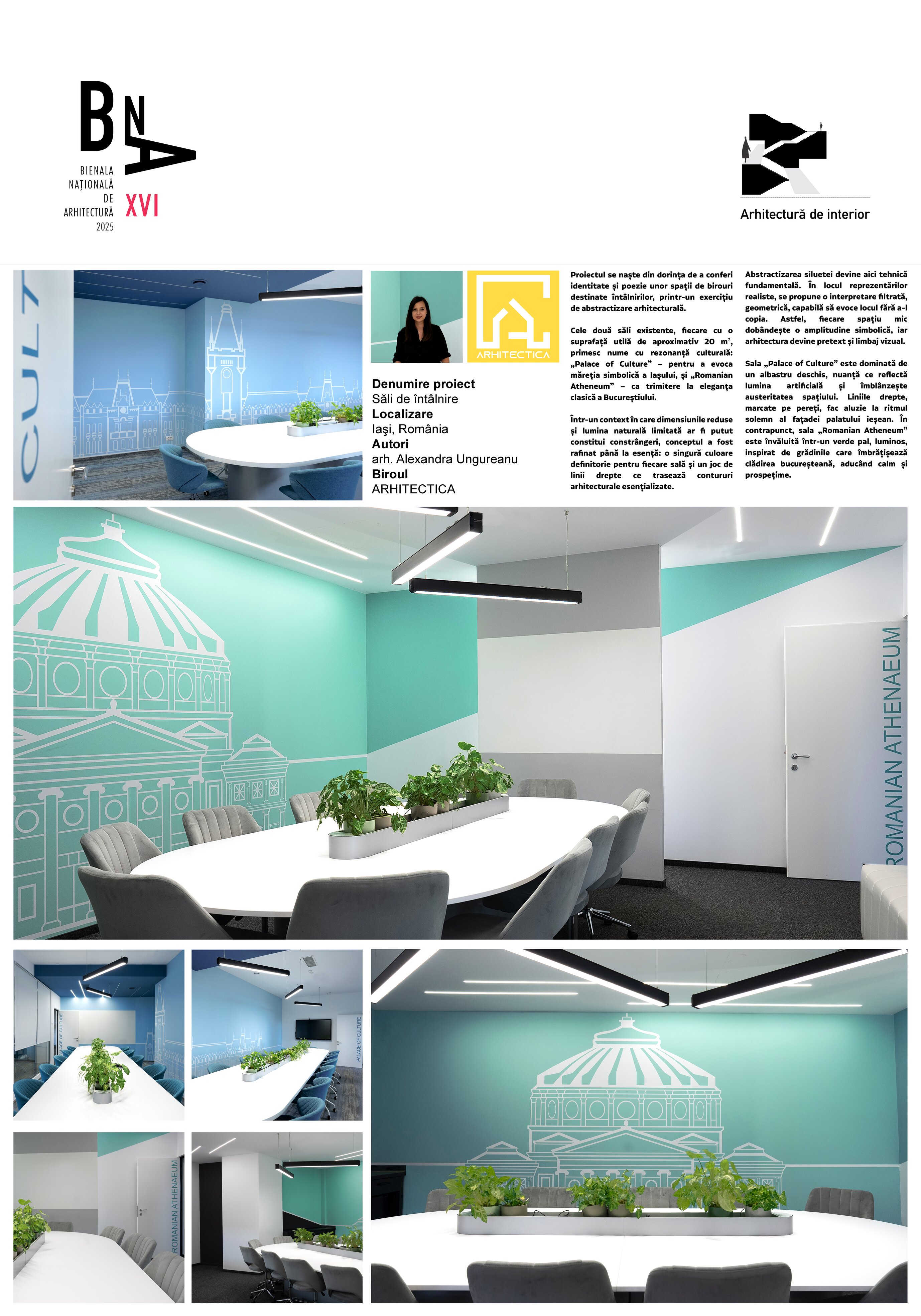 Proiectul se naște din dorința de a conferi identitate și poezie unor spații de birouri destinate întâlnirilor, printr-un exercițiu de abstractizare arhitecturală, un proiect ALTFEL, cu iubire pentru arhitectură. Cele două săli existente, fiecare cu o suprafață utilă de aproximativ 20 m², primesc nume cu rezonanță culturală: „Palace of Culture” – pentru a evoca măreția simbolică a Iașului, și „Romanian Atheneum” – ca trimitere la eleganța clasică a Bucureștiului. Într-un context în care dimensiunile reduse și lumina naturală limitată ar fi putut constitui constrângeri, conceptul a fost rafinat până la esență: o singură culoare definitorie pentru fiecare sală și un joc de linii drepte ce trasează contururi arhitecturale esențializate.
