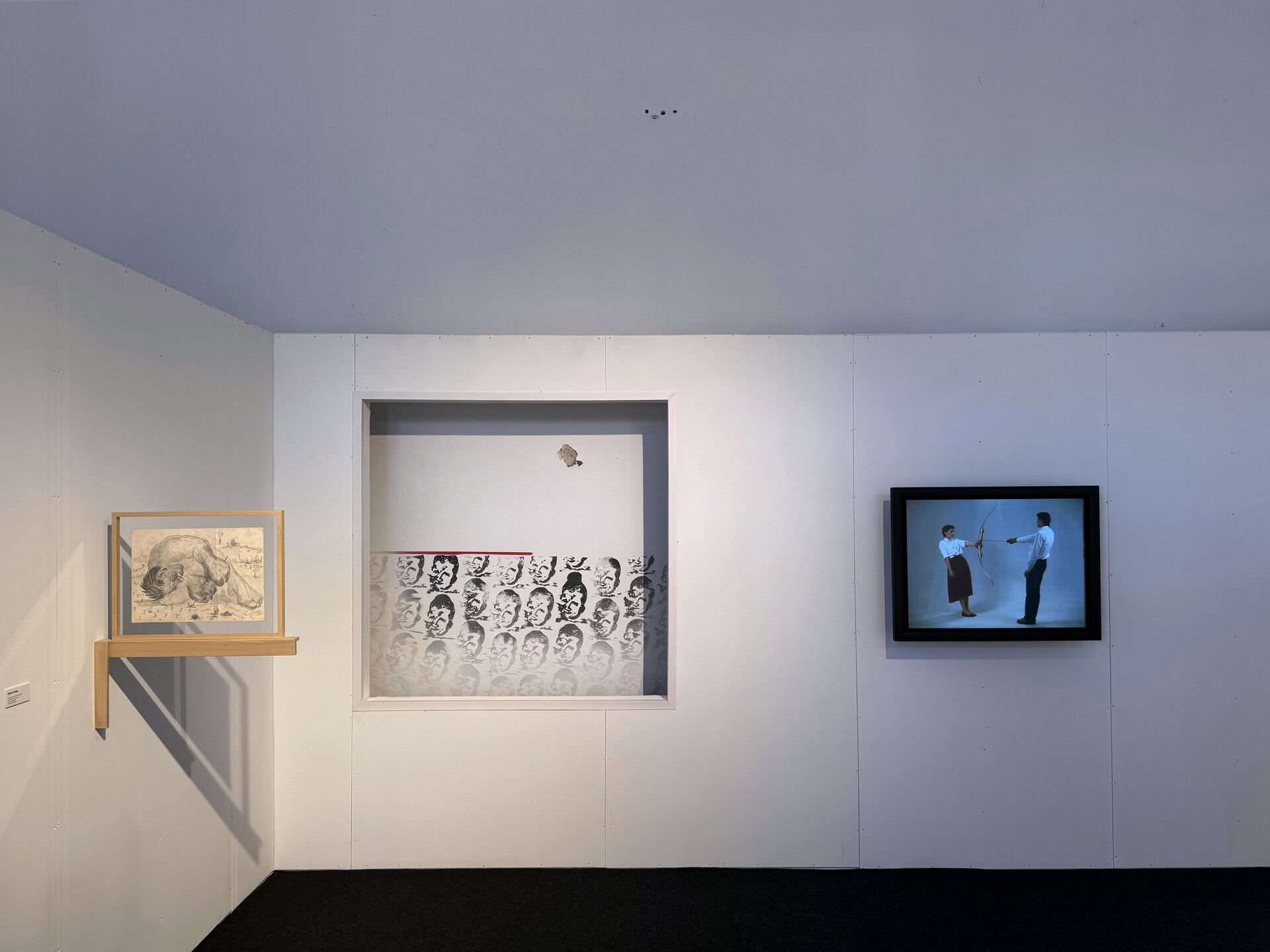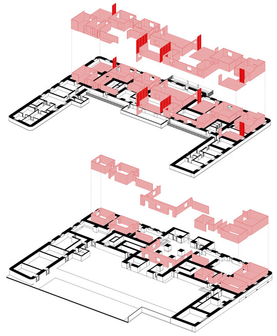 Proiectul arhitectural s-a bazat pe doi piloni principali, complementari și de importanță egală. Primul pilon, cel funcțional, a vizat reinterpretarea clasicului spațiu muzeal de tip white cube, adică acel cadru neutru, imaculat, în care arta poate fi privită fără interferențe vizuale. În Garnizoană, acest model a fost recreat prin introducerea unor structuri temporare albe, de înălțimi variabile, adaptate nevoilor de panotare. Aceste volume simple au definit un traseu expozițional coerent, separându-se deliberat de pereții clădirii existente. De la cota de 2,60 m în sus, vizitatorii puteau însă să vadă, dincolo de pereții perfecți ai noilor galerii, plafonul decojit și zidurile degradate ale clădirii gazdă. Această suprapunere vizuală a generat un dialog direct între prezent și trecut, între ordinea perfectă a spațiului expozițional și fragilitatea materială a Garnizoanei. În plus, pardoselile disparate, vopsite și deteriorate, au fost acoperite de un covor gri închis, care a uniformizat spațiul și a subliniat caracterul unitar al noilor galerii.