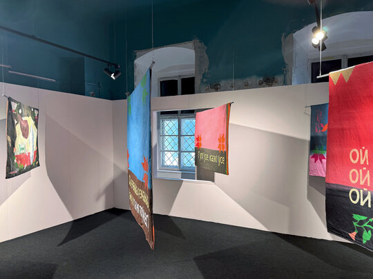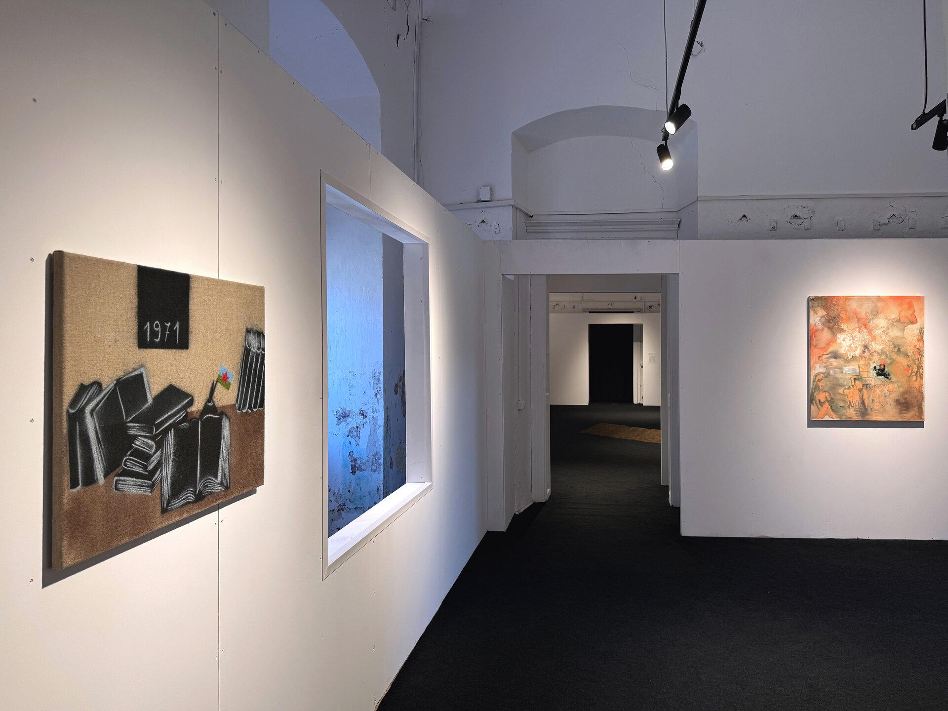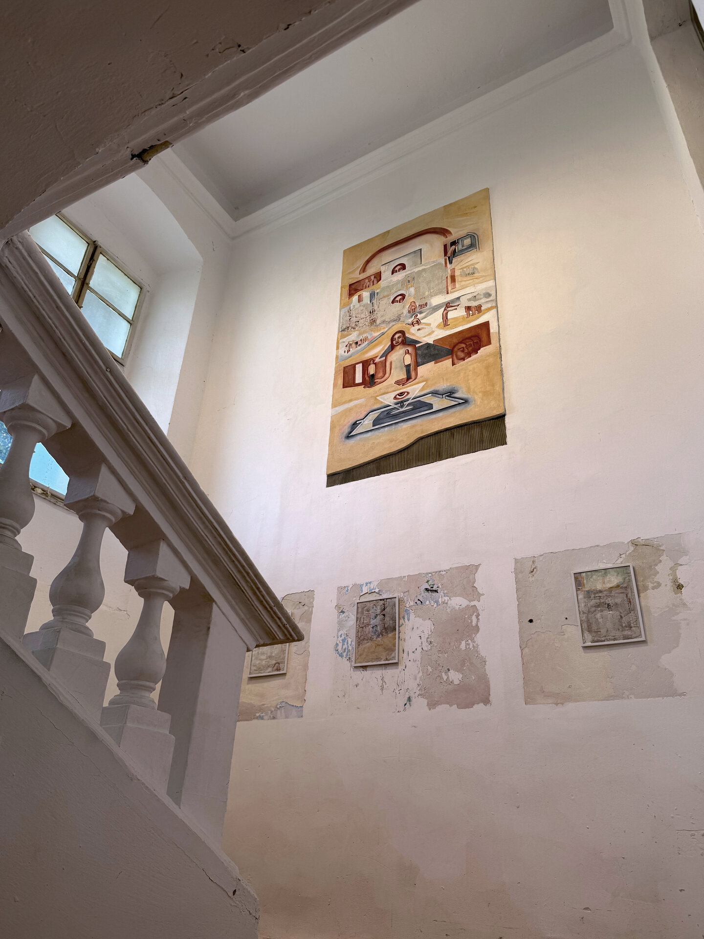 Expozițiile s-au desfășurat în trei locații principale, fiecare cu specificitatea sa, însă cea mai provocatoare dintre ele a fost, fără îndoială, Comenduirea Garnizoanei – o clădire masivă, situată în centrul Timișoarei, încărcată de istorie și în același timp marcată de decenii de abandon. Garnizoana, cu zidurile sale groase și cu spațiile vaste, poartă încă vizibil urmele regimurilor istorice succesive, de la autoritatea imperială la cea militară, de la utilizările muzeale postbelice până la perioada recentă, când a fost folosit sporadic pentru expoziții improvizate. Aceste intervenții recente au lăsat urme vizibile – pereți și pardoseli pictați, tencuieli căzute – transformând clădirea într-un strat complex de memorie materială.
