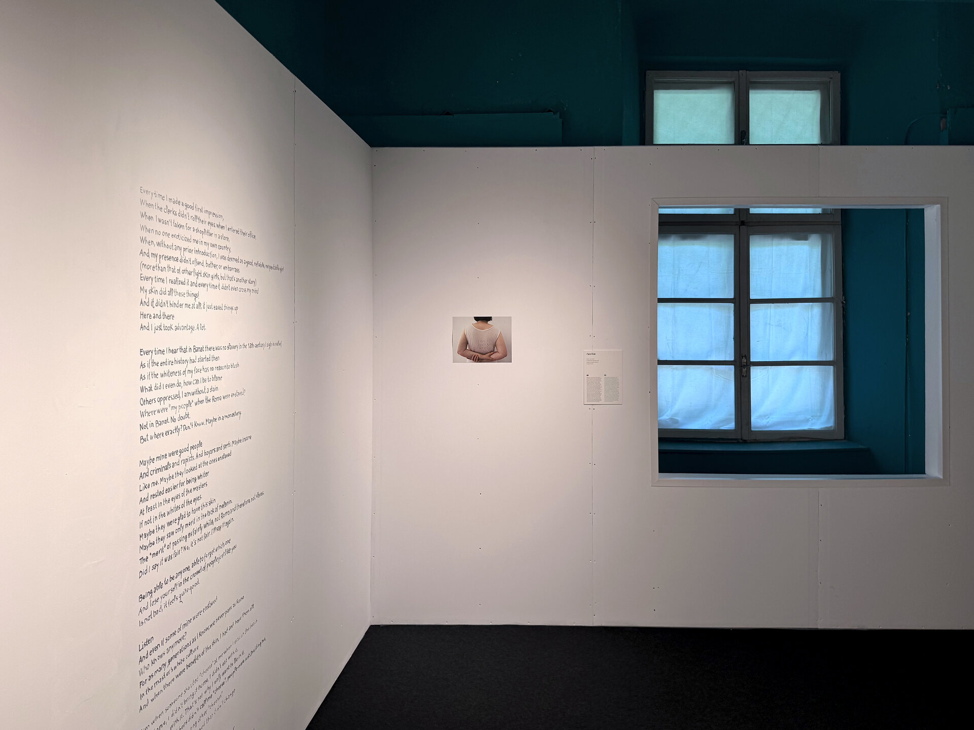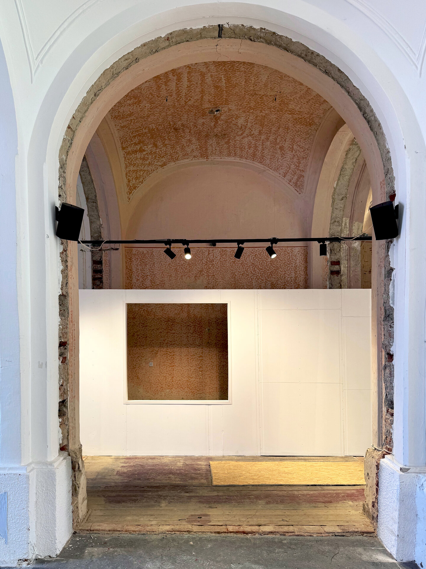 Al doilea pilon, cel conceptual, a reflectat intenția de a păstra vie memoria Garnizoanei și de a o integra în experiența expozițională. În acest sens, noii pereți albi au fost „perforați” cu decupaje pătrate, amplasate la nivelul ochiului, asemenea unor „tablouri” care ofereau privitorului perspective neașteptate asupra zidurilor vechi. Prin aceste „ferestre”, vizitatorii descopereau fragmente din tencuielile căzute, geamuri sparte, urme de graffiti sau straturi de vopsea rămase din expozițiile anterioare. Aceste elemente nu au fost ascunse, ci dimpotrivă, readuse în prim-plan ca mărturii ale trecerii timpului. În acest fel, arhitectura expozițională a devenit ea însăși un ecou al istoriei, un șoptit vizual care conecta prezentul artistic cu memoria spațiului.