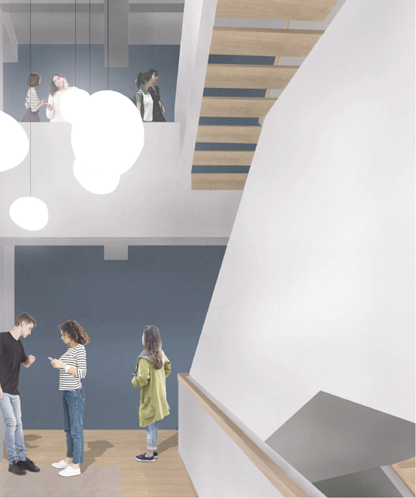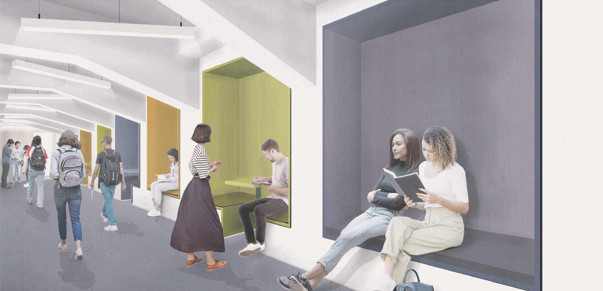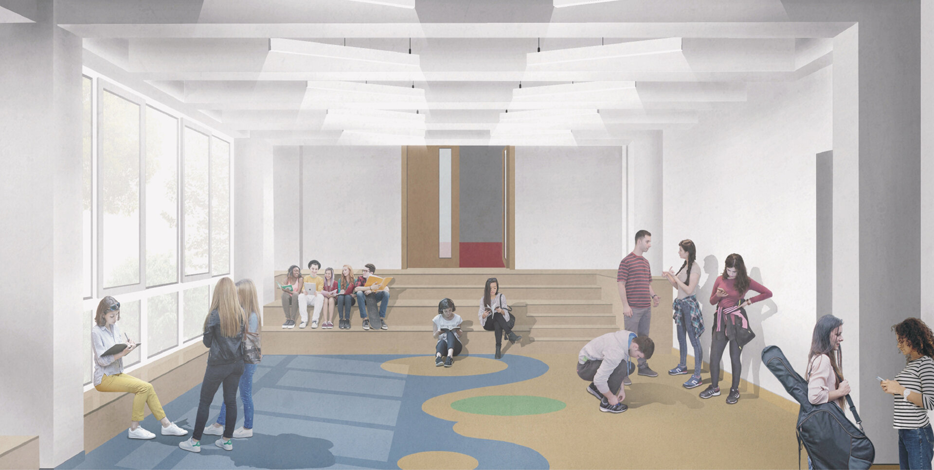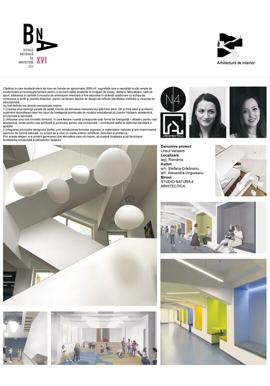 1. Crearea unor tipologii variate de spații, menite să stimuleze interacțiunea atât între elevi, cât și între elevi și profesori, susținând dezvoltarea celor trei tipuri de inteligență promovate de modelul educațional al Liceului Varlaam: academică, emoțională și spirituală.