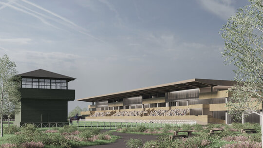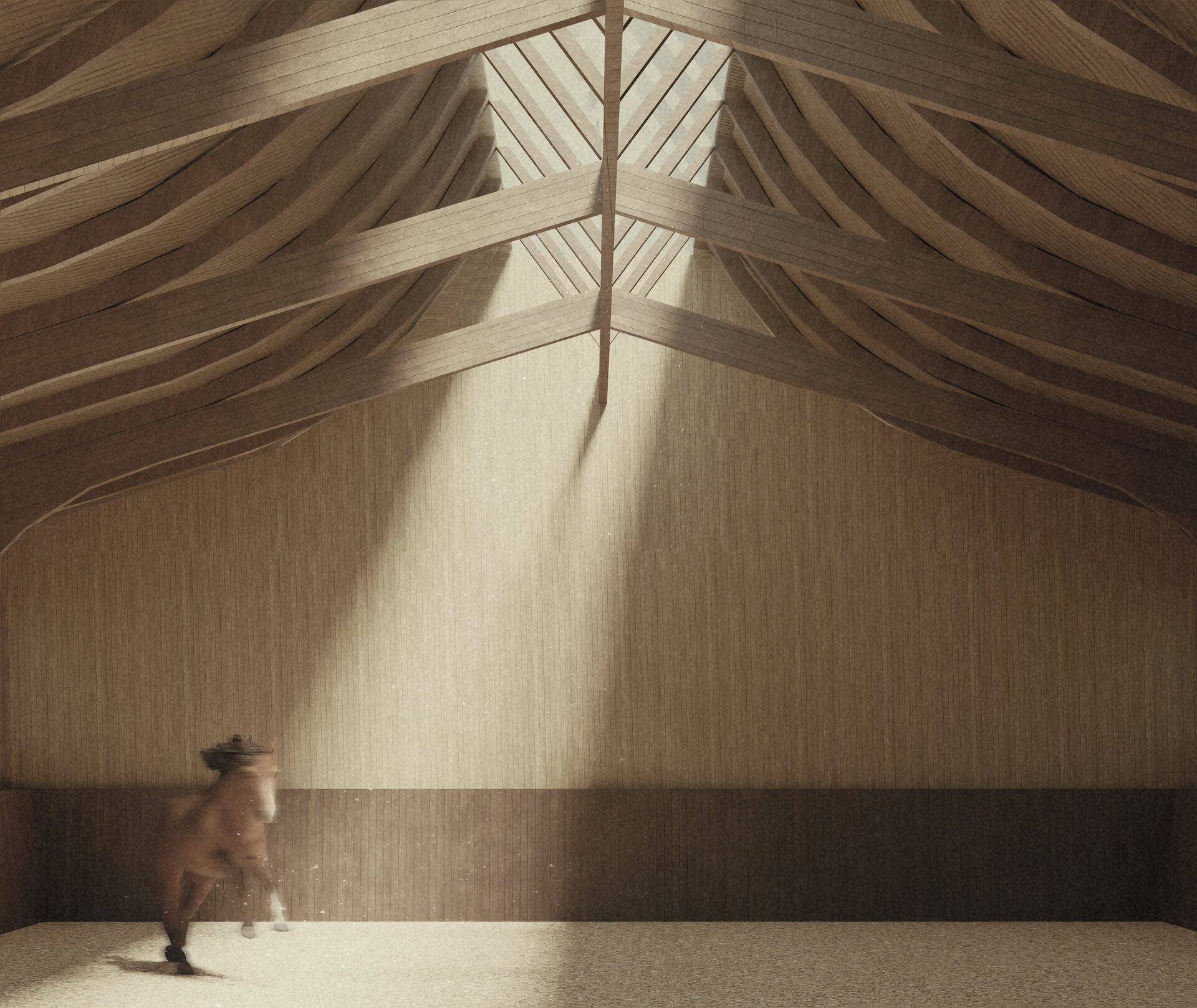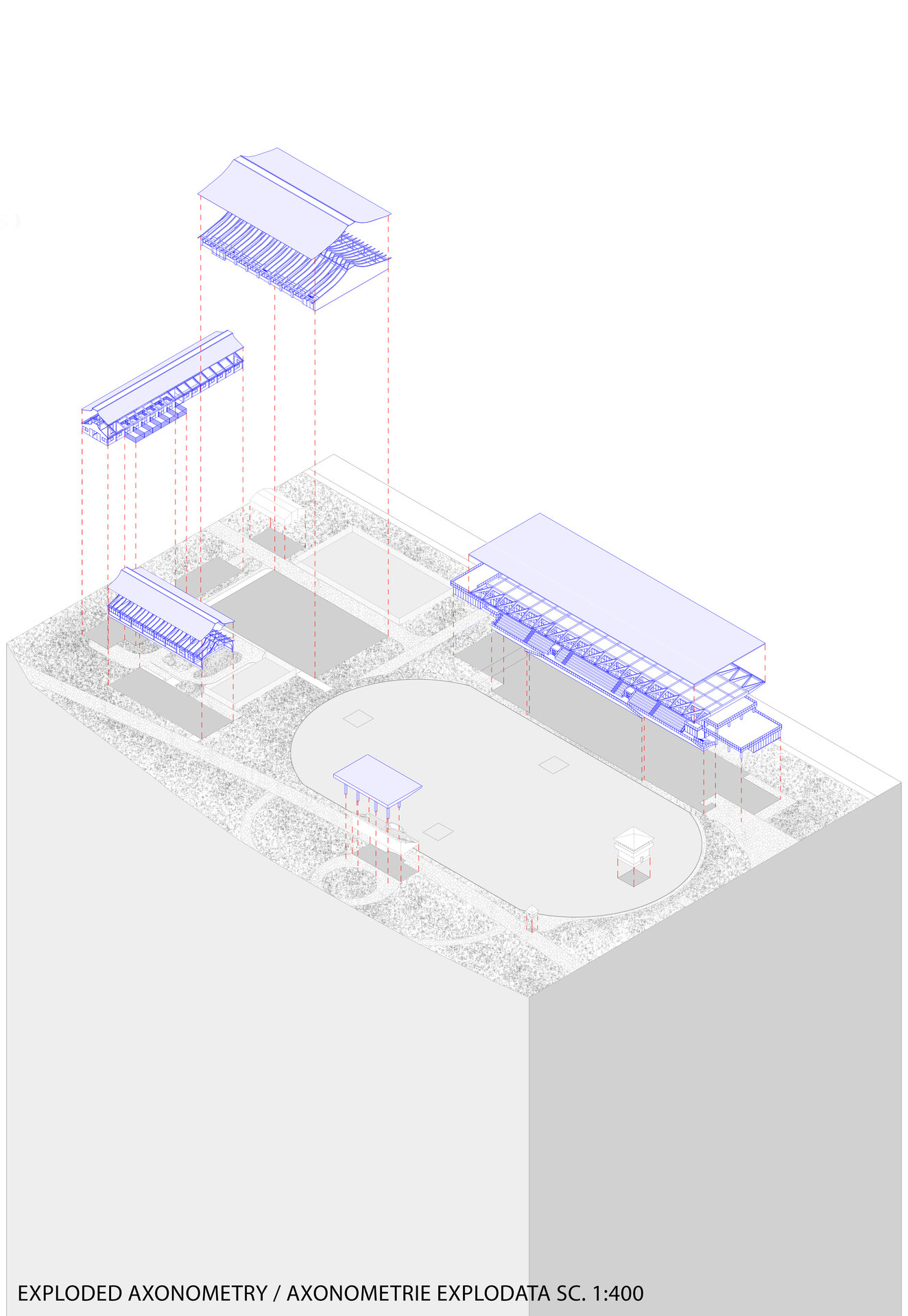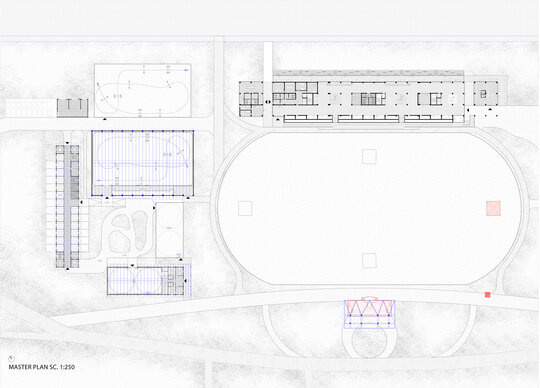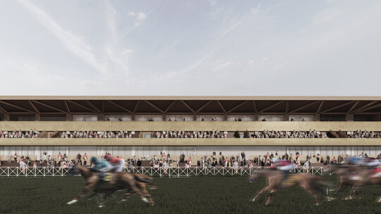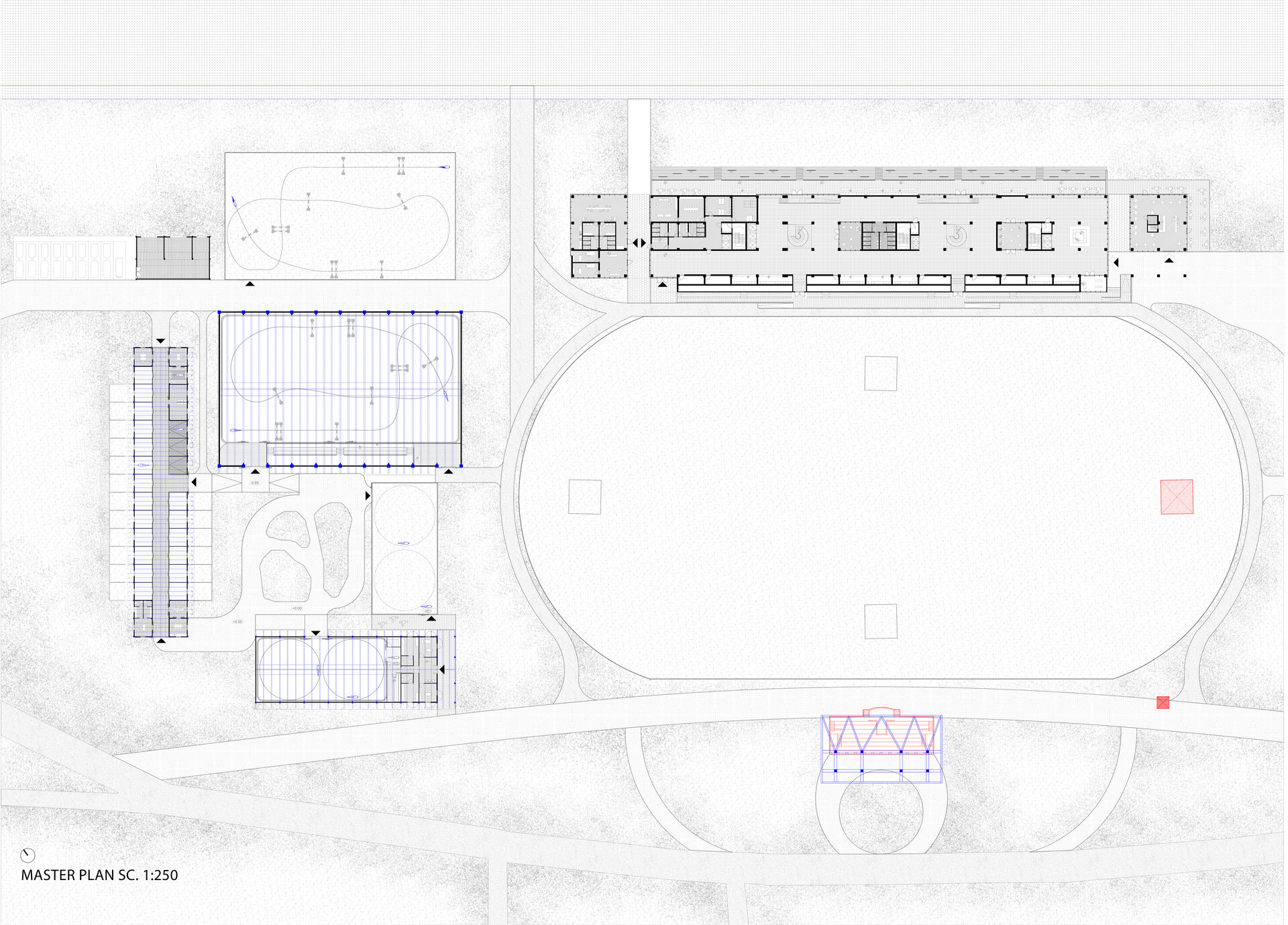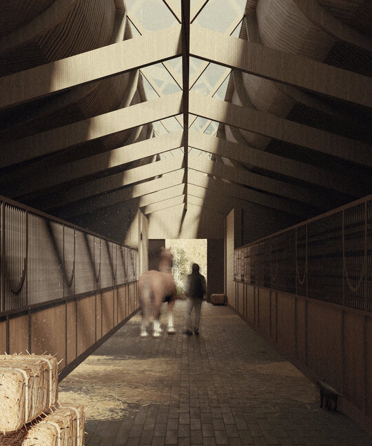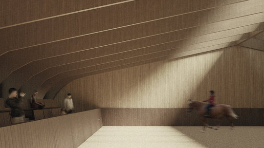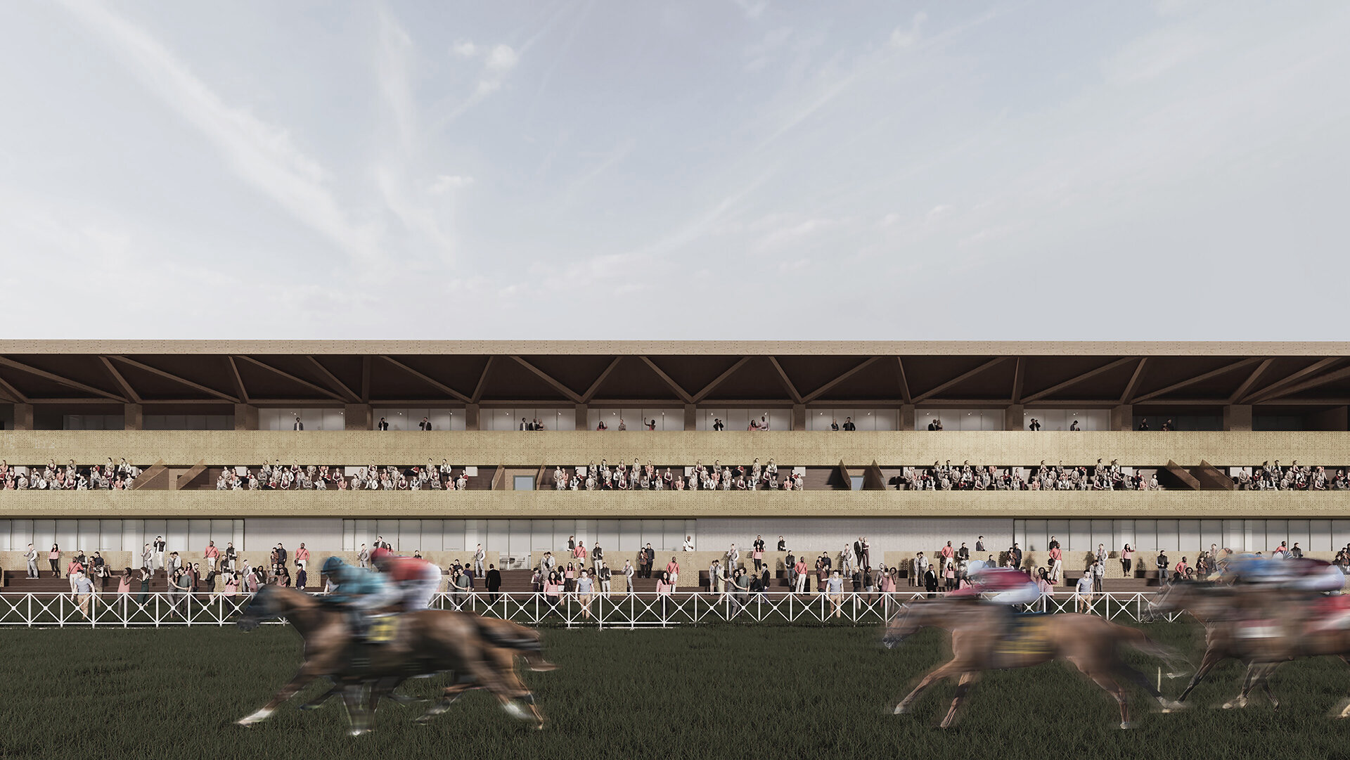 Pentru a atinge acest obiectiv, este propusă o restructurare a infrastructurii existente. Se introduce un acces public nou, inspirat din planul original al Parcului Bibescu, care reconectează situl cu traseele principale de circulație. Totodata, este restaurată rețeaua de alei istorice din interiorul hipodromului, iar tribuna este reactivată. La nivel funcțional, masterplanul organizează clar relația dintre zona publică și cea destinată personalului și activităților ecvestre. Partea estică este destinată vizitatorilor, în timp ce zona vestică este dedicată exclusiv activităților private. Această separare permite siguranța circulației, dar lasă loc și pentru interacțiuni controlate. Proiectul propune reabilitarea celor trei clădiri existente pe sit: tribuna istorică, turnul arbitrilor și casa paznicului. În plus, propun o nouă tribună cu orientare dublă, care deschide două perspective majore: una către pista de galop și cealaltă către arena de competiții deja existentă. Astfel, tribuna devine un punct de sprijin și orientare pentru întregul ansamblu.Așadar, hipodromul devine un foaier urban, cu funcțiuni contemporane, dar ancorate în specificul locului, cu limite flexibile și relații firești între oameni, animale și arhitectură.