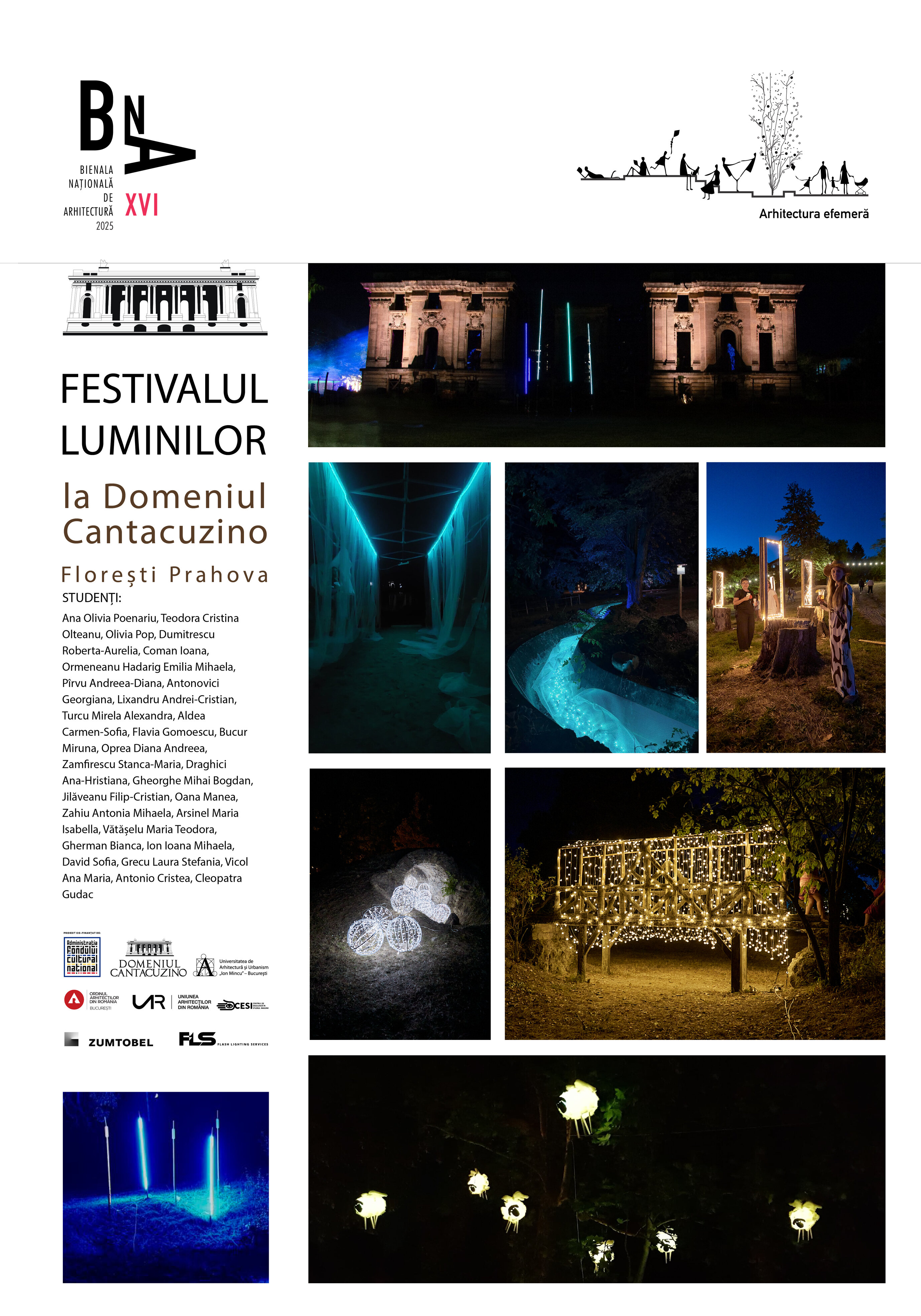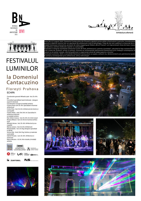 Festivalul a integrat și rezultatele Școlii de Vară „Arhitectură, Lumină și Instalații”, unde studenții au lucrat în regim hands-on, alături de arhitecți și artiști, la proiectarea și realizarea a peste 20 de instalații luminoase . Experiența practică – de la testarea și montarea structurilor până la scenografierea traseelor – a fost un exercițiu direct de formare în domeniul iluminatului arhitectural și al designului de instalații conturând un spațiu al arhitecturii efemere atât simbolic cât și palpabil.