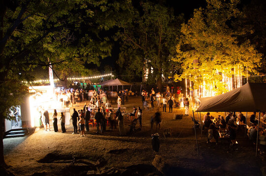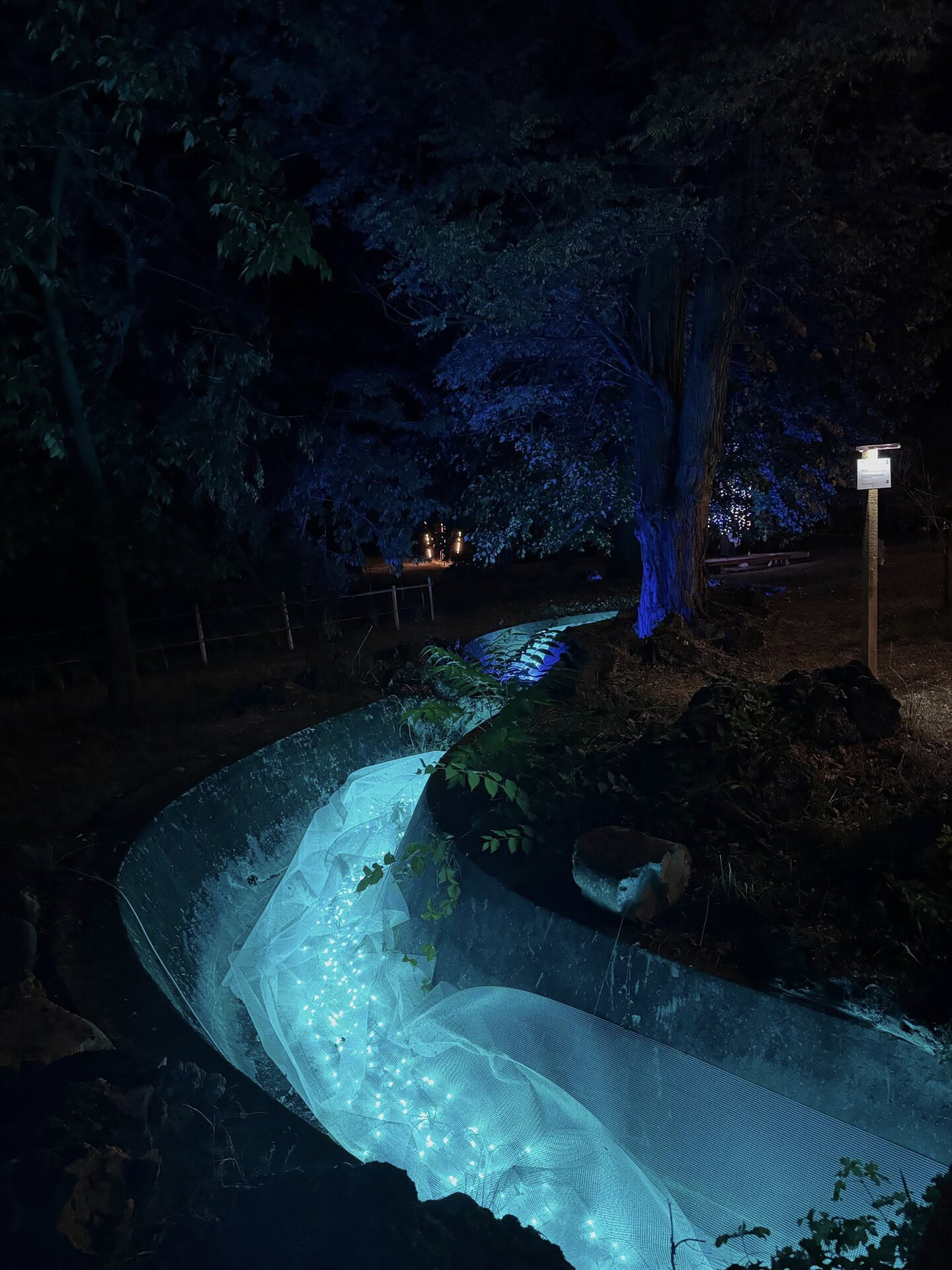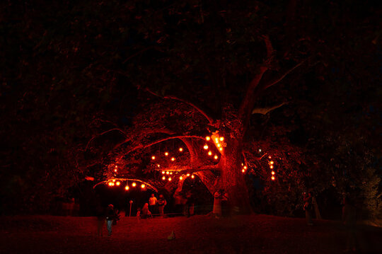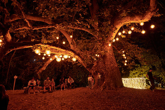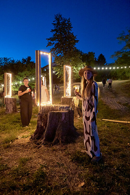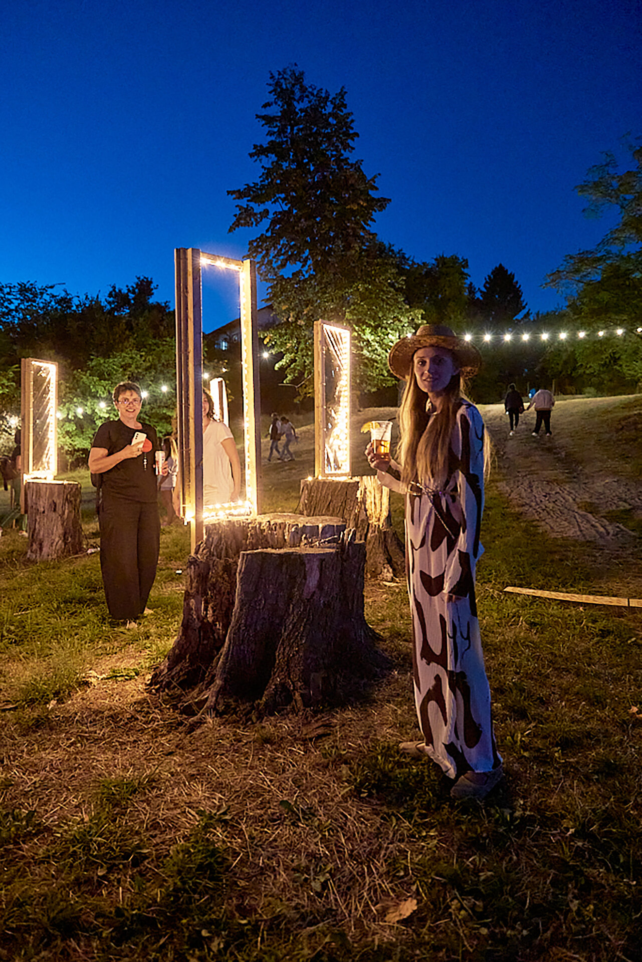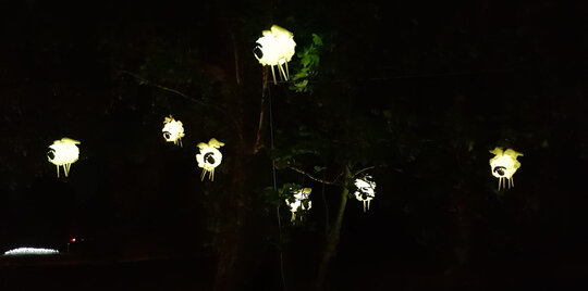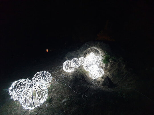 Lucrări precum „Zig-Zag”, care marca intrarea și ghida vizitatorii, „Licuricii”, evocând memoria Anei Alice Cantacuzino, „Nostalgie”, cu luminile suspendate printre ramuri, sau „Platanul de foc”, ce punea în valoare copacul secular al domeniului, au demonstrat cum arhitectura efemeră poate activa atât spațiul natural, cât și pe cel construit. Instalația „Mioritica”, semnată de Raluca Mocanu și Gabriel Panasiu, a transpus vizual absurdul cotidian românesc într-o formulă luminoasă autohtonă, dublând caracterul critic al intervenției și aducând un strat reflexiv aparte în cadrul festivalului.
