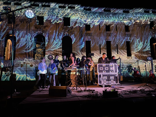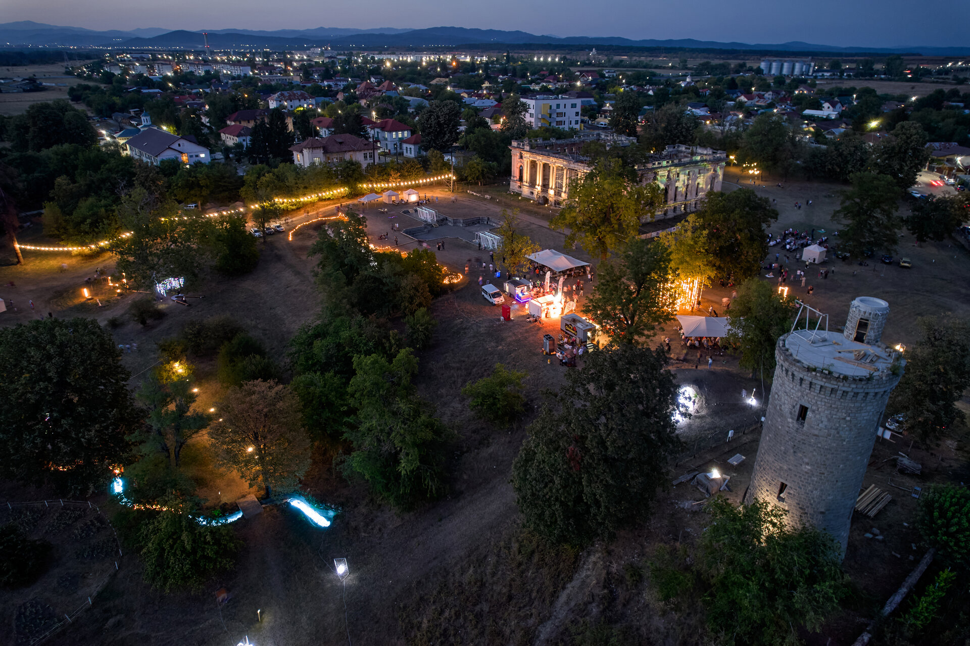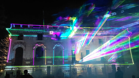 Un element central l-a constituit activarea Palatului „Micul Trianon” și a turnului prin video mapping semnat de artiști vizuali consacrați (Răzvan Pascu – Aural Eye, Ion Cotenescu – VJ Cote, Dan Adrian Ionescu – D.A.I.), care au transformat fațadele în suprafețe vii, deschise către lumi imaginare. Patrimoniul construit nu a rămas fundal inert, ci a devenit actor al spectacolului, purtând și reinterpretând povești prin culoare, lumină și mișcare. Tot pentru valorificarea monumentului, show-ul de lasere și producțiile multimedia au completat scenografia luminoasă. Dintre acestea s-a remarcat Silent Shadows de Tom Brânduș. În acest cadru, palatul a fost perceput nu doar ca obiect de patrimoniu, ci ca spațiu viu, rescris prin lumină și sunet.