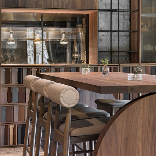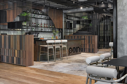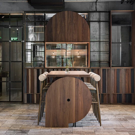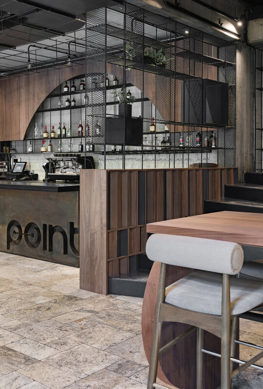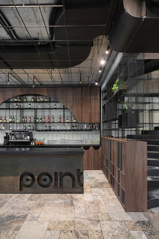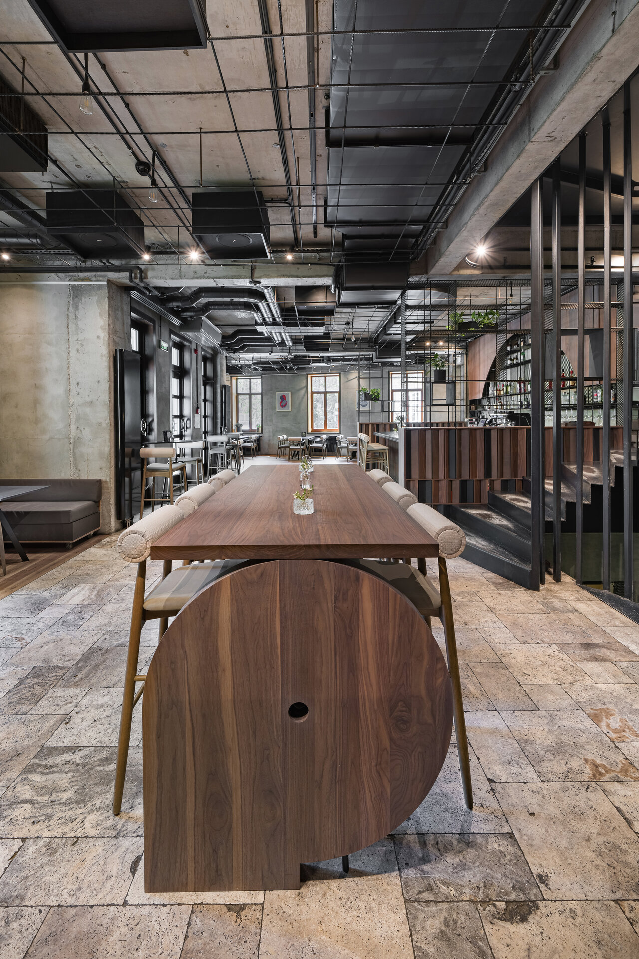 Arhitectura 'altfel' prsupune o arhitectură responsabilă, realizată cu atenție la context și resurse. S-a utilizat lemn de nuc, în contrast cu elementele metalice ‘moștenite’, iar designul barului din corten a fost reinterpretat, păstrându-i-se materialul, ca un liant între culorile și texturile regăsite în întreg spațiul.