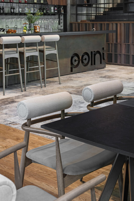 Re-Point este un proiect de design interior despre ce se păstrează și refolosește și ce alegem să înlocuim, despre cum se poate schimba întreaga atmosferă a spațiului interior al unui bar și restaurant printr-o intervenție chirurgicală, fără a-i întrerupe activitatea.