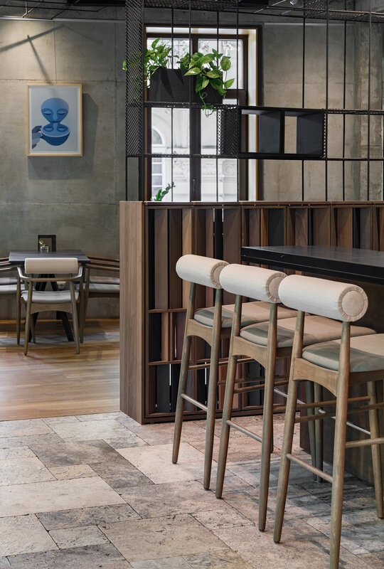 Elementele noii amenajări au fost realizate custom de către artizani locali, iar pe lângă aspectele estetice acestea îndeplinesc și cerințe funcționale. Rezultatul este un amestec aparte, puțin prețios și sofisticat dar cu reminiscențele raw, industriale (ale unei vechi amenajări).