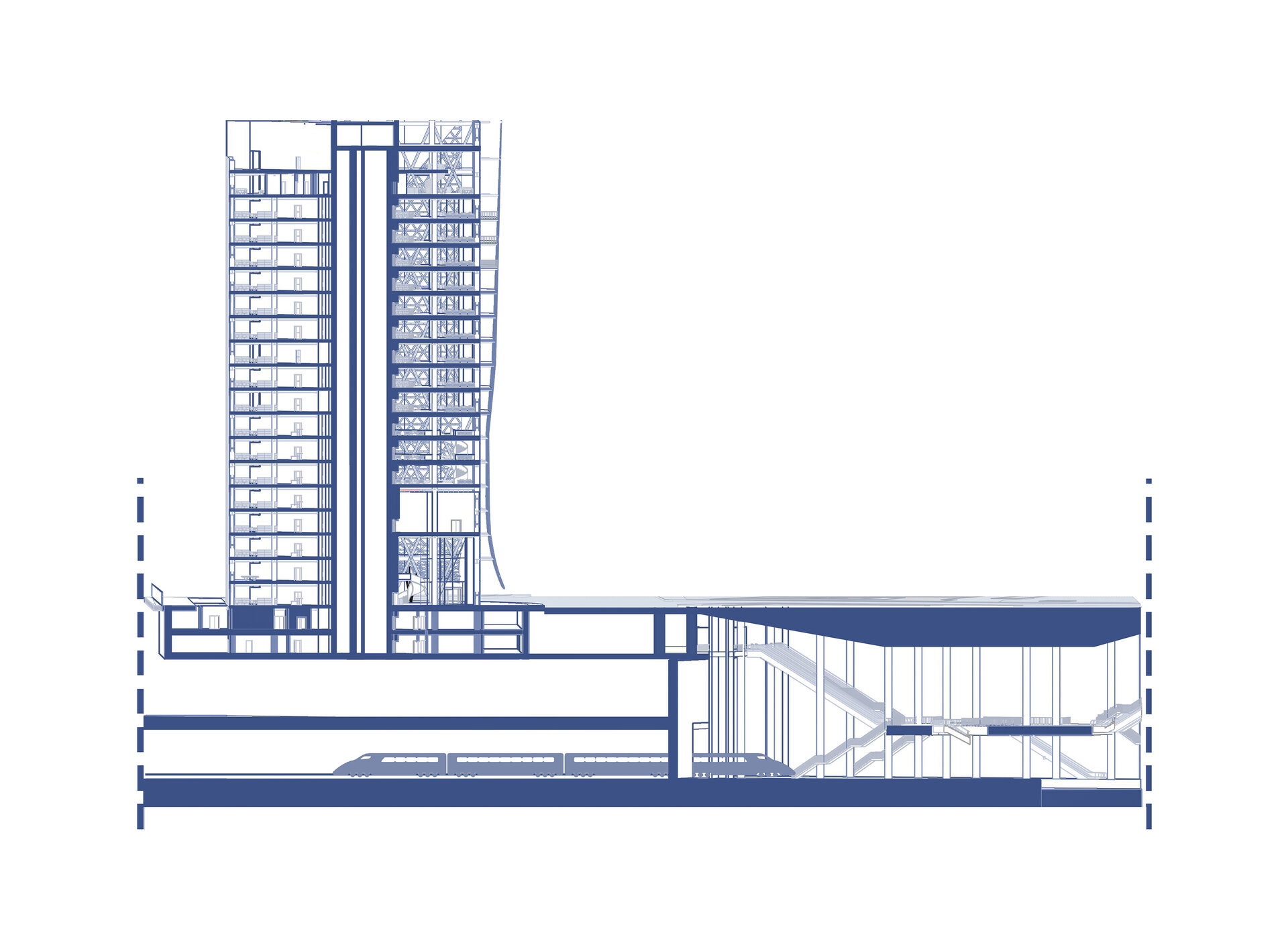 În acest context, propunerea își construiește intențiile pornind de la potențialul intersecției dintre infrastructură și spațiul public. Astfel, s-a propus realizarea unei clădiri hibride care să înglobeze două direcții funcționale majore: birouri și spații publice, cu legături directe către viitoarea stație de metrou.