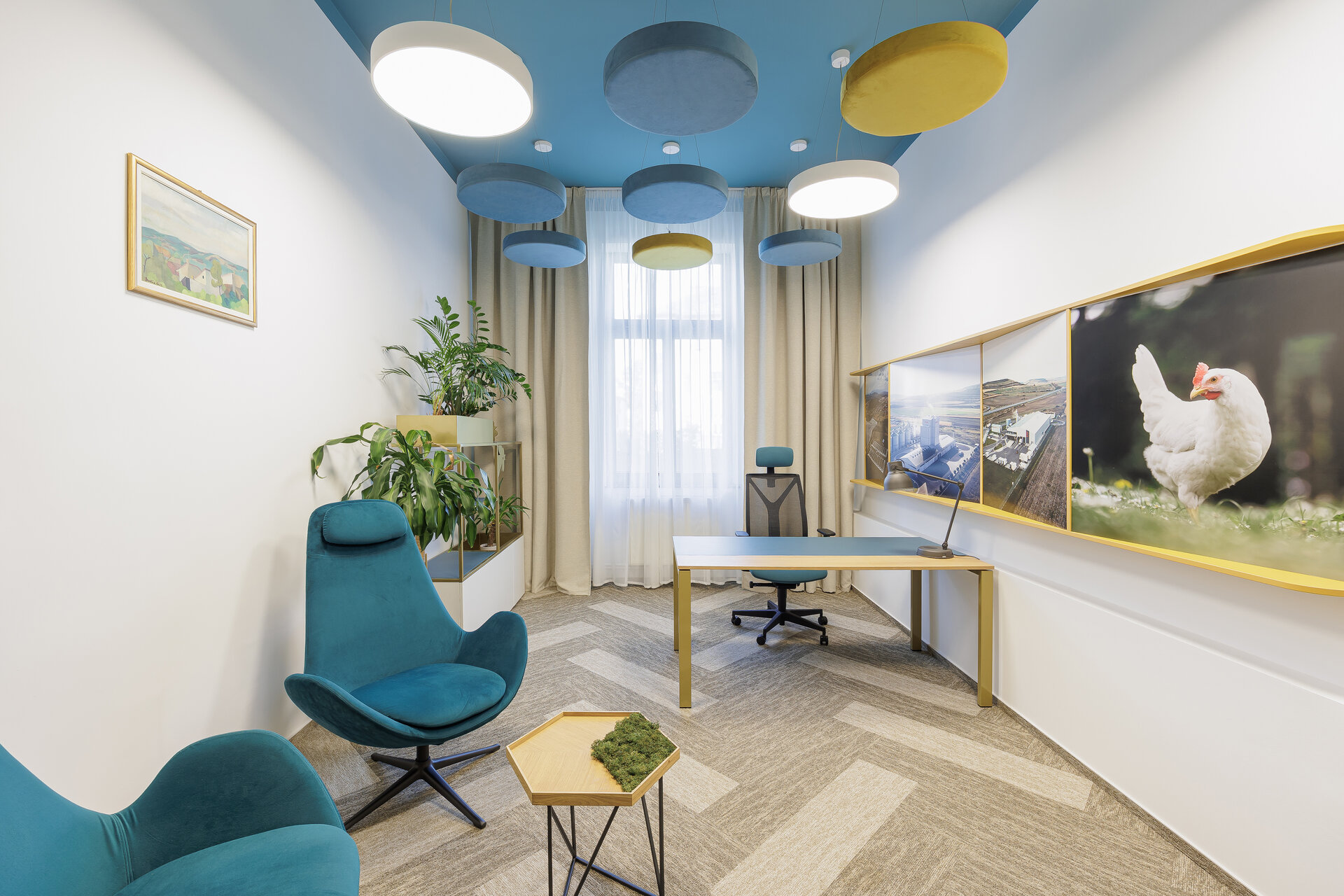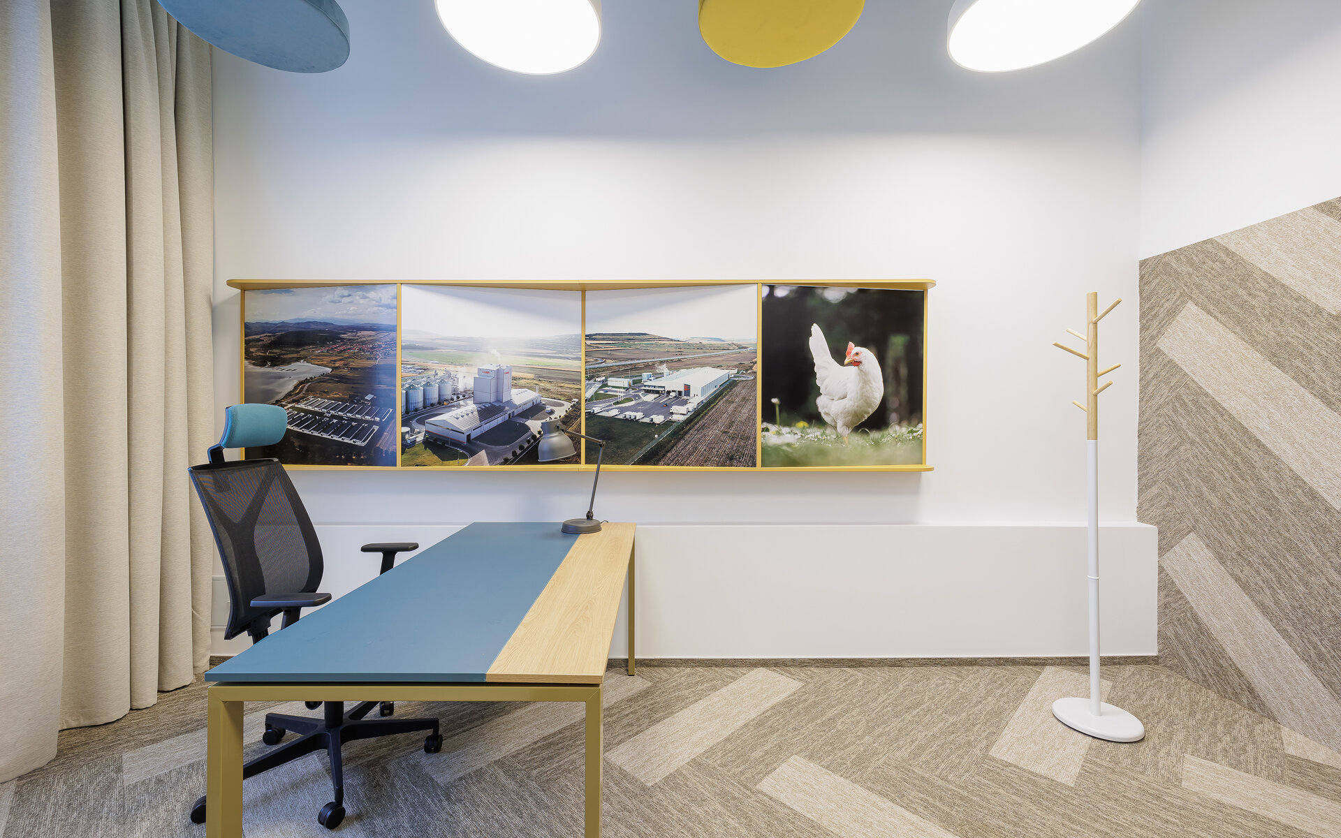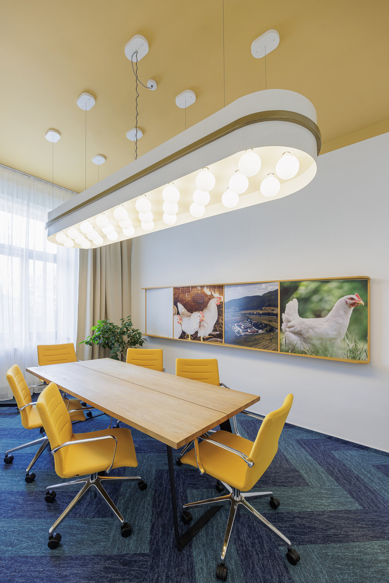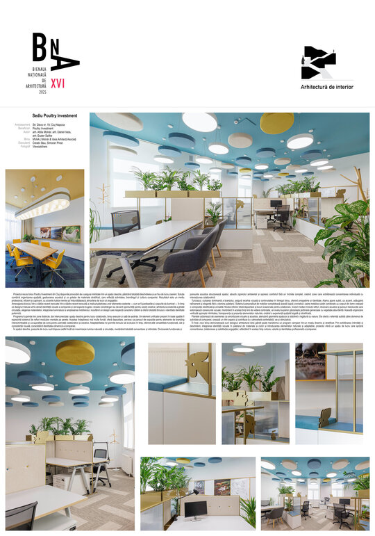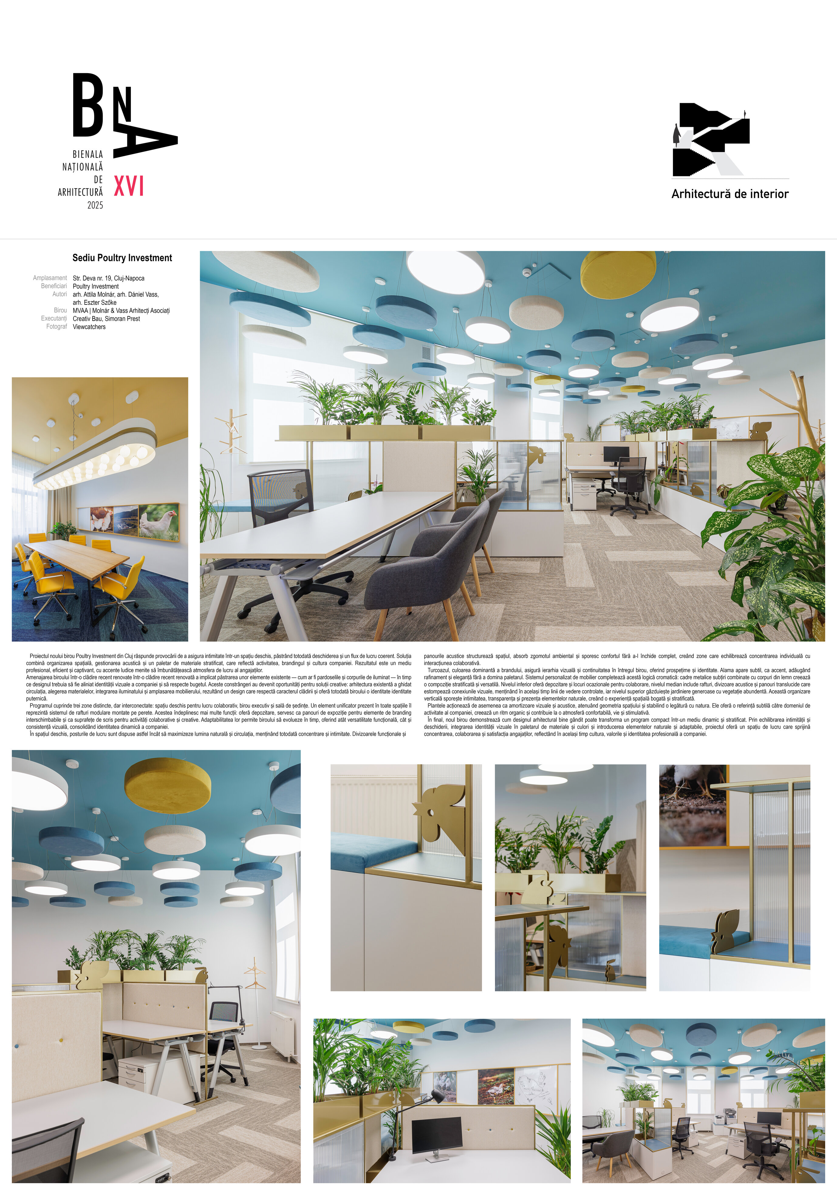 Proiectul noului birou Poultry Investment din Cluj răspunde provocării de a asigura intimitate într-un spațiu deschis, păstrând totodată deschiderea și un flux de lucru coerent. Soluția combină organizarea spațială, gestionarea acustică și un paletar de materiale stratificat, care reflectă activitatea, brandingul și cultura companiei. Rezultatul este un mediu profesional, eficient și captivant, cu accente ludice menite să îmbunătățească atmosfera de lucru al angajaților.