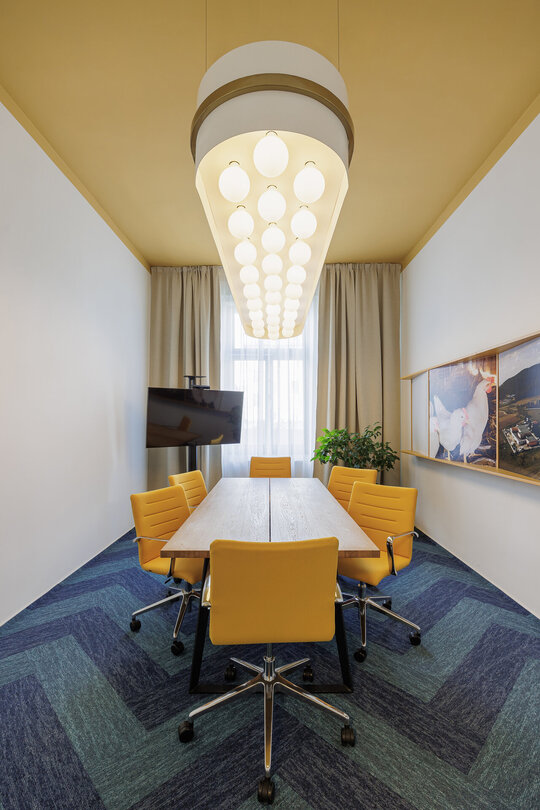 Amenajarea biroului într-o clădire recent renovate într-o clădire recent renovată a implicat păstrarea unor elemente existente — cum ar fi pardoselile și corpurile de iluminat — în timp ce designul trebuia să fie aliniat identității vizuale a companiei și să respecte bugetul. Aceste constrângeri au devenit oportunități pentru soluții creative: arhitectura existentă a ghidat circulația, alegerea materialelor, integrarea iluminatului și amplasarea mobilierului, rezultând un design care respectă caracterul clădirii și oferă totodată biroului o identitate identitate puternică.
