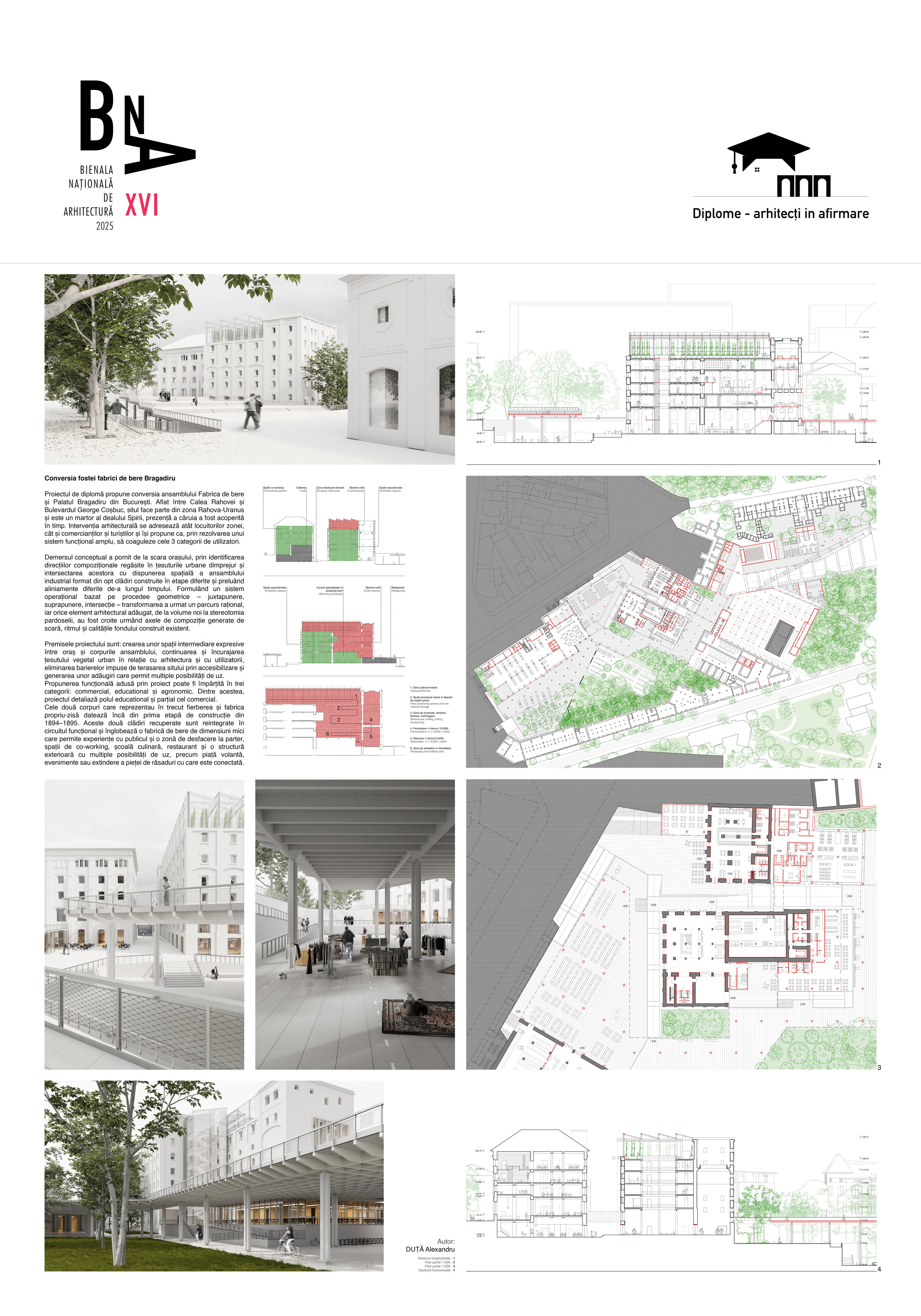 Proiectul de diplomă propune conversia ansamblului Fabrica de bere și Palatul Bragadiru din București. Aflat între Calea Rahovei și Bulevardul George Coșbuc, situl face parte din zona Rahova-Uranus și este un martor al dealului Spirii, prezență a căruia a fost acoperită în timp. Intervenția arhitecturală se adresează atât locuitorilor zonei, cât și comercianților și turiștilor și își propune ca, prin rezolvarea unui sistem funcțional amplu, să coaguleze cele trei categorii de utilizatori.