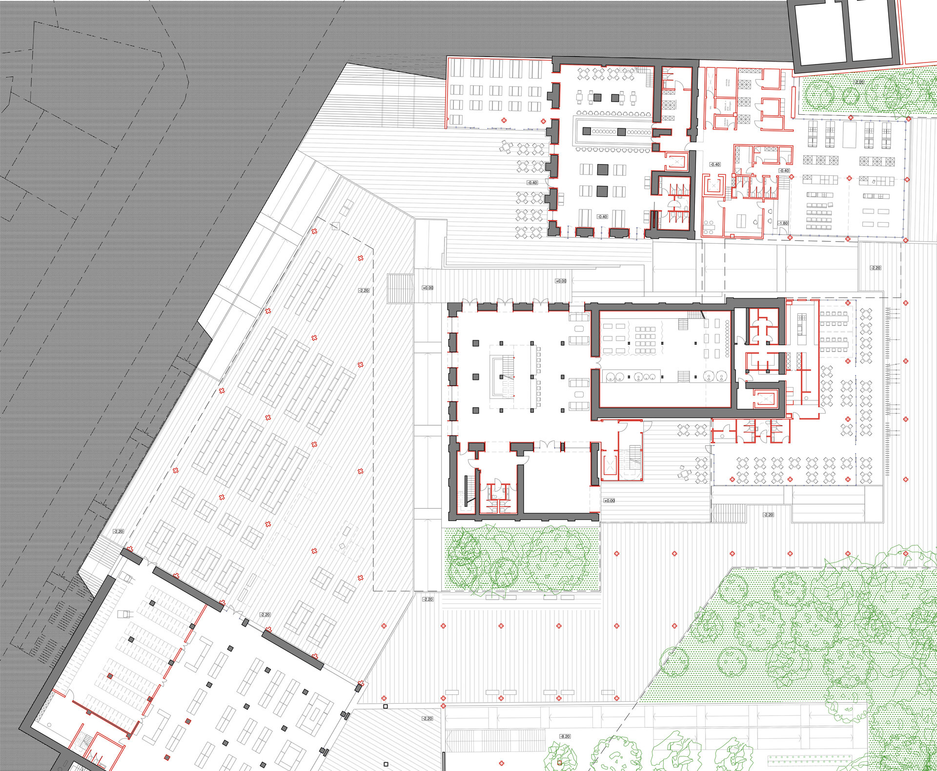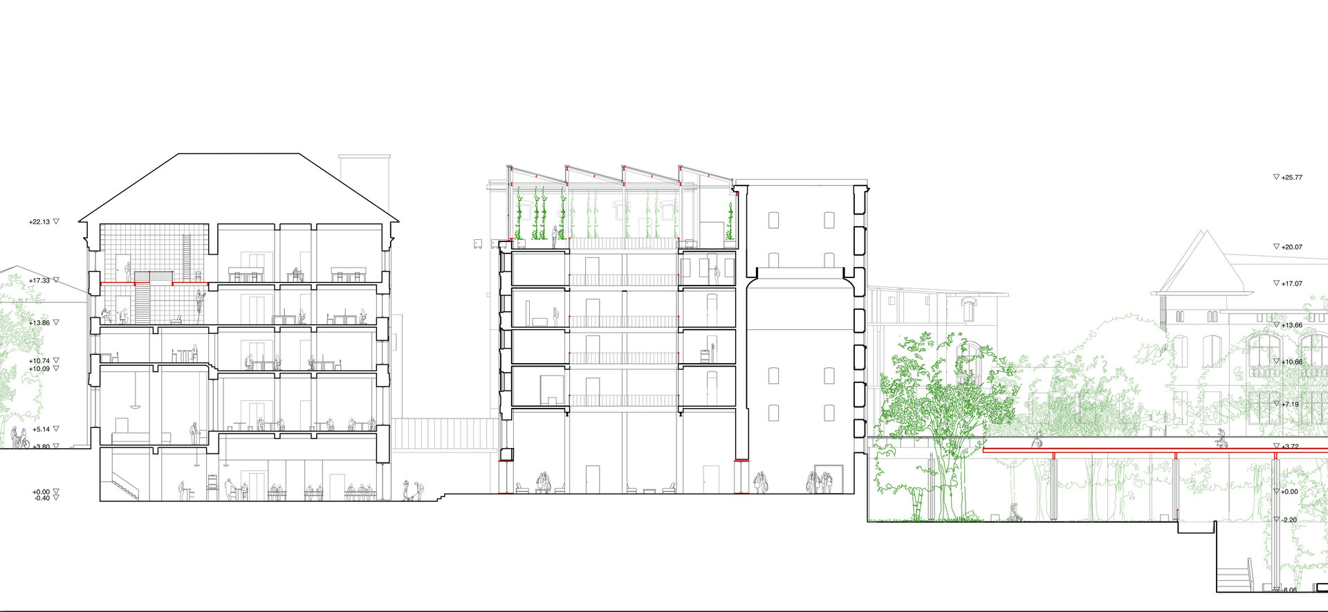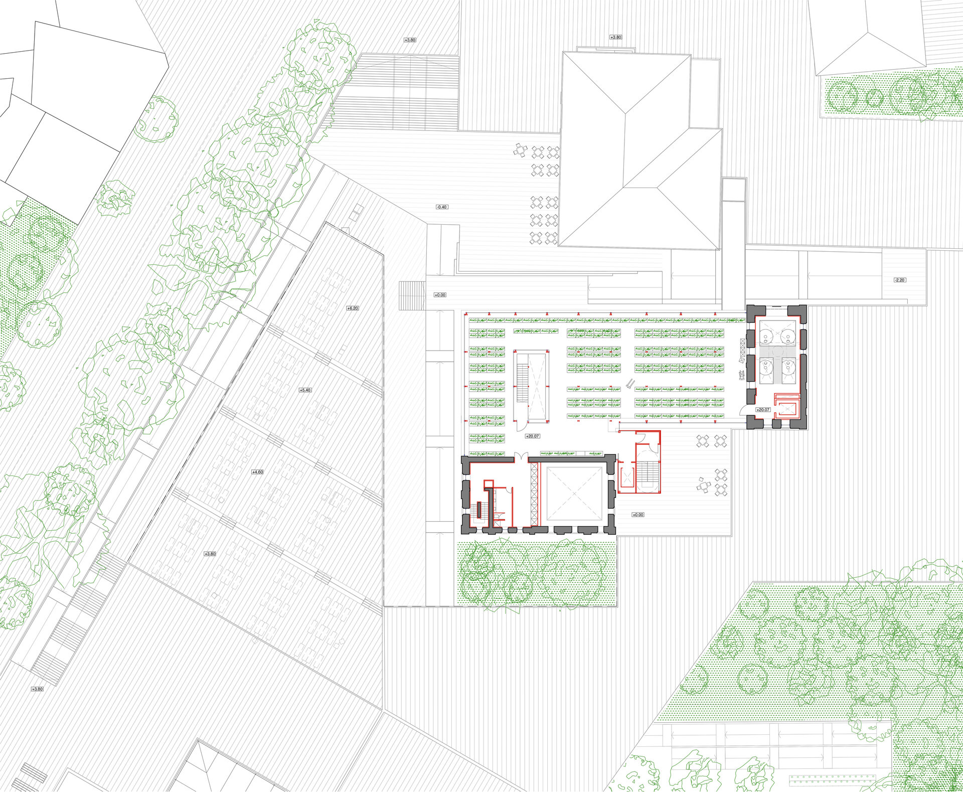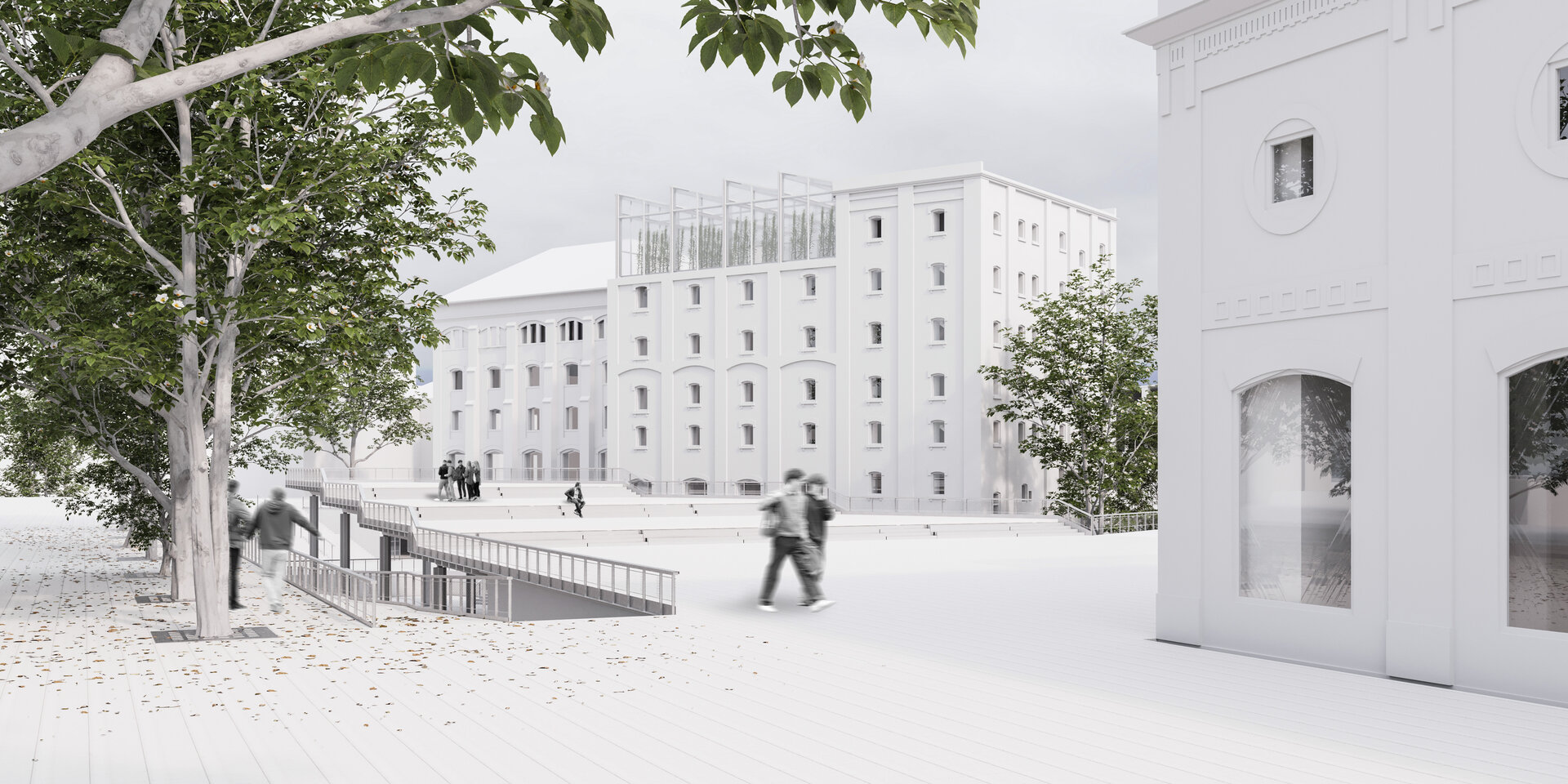 Premisele proiectului sunt: crearea unor spații intermediare expresive între oraș și corpurile ansamblului, continuarea și încurajarea țesutului vegetal urban în relație cu arhitectura și cu utilizatorii, eliminarea barierelor impuse de terasarea sitului prin accesibilizare și generarea unor adăugiri care permit multiple posibilități de uz.