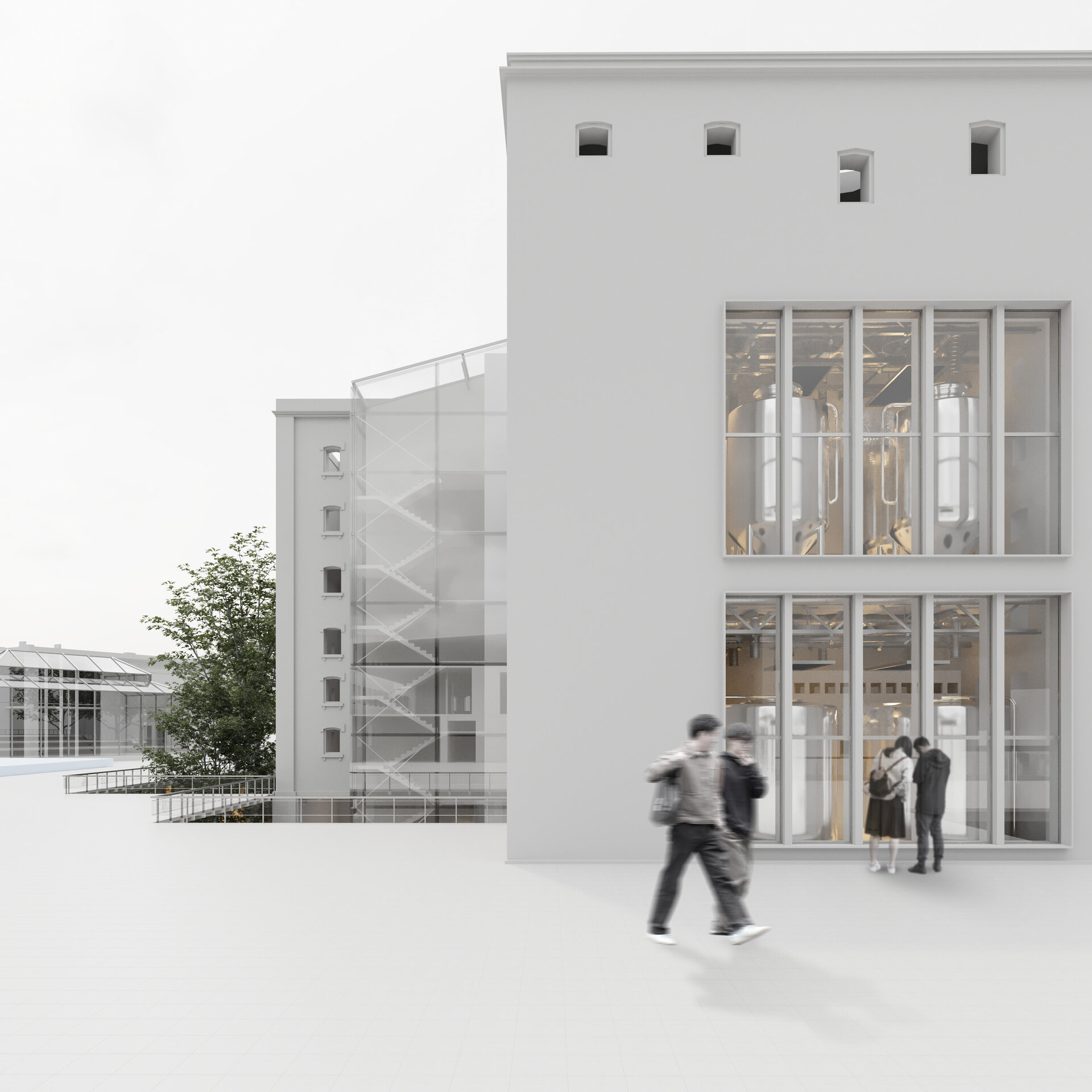 Demersul conceptual a pornit de la scara orașului, prin identificarea direcțiilor compoziționale regăsite în țesuturile urbane dimprejur și intersectarea acestora cu dispunerea spațială a ansamblului industrial format din opt clădiri construite în etape diferite și preluând aliniamente diferite de-a lungul timpului. Formulând un sistem operațional bazat pe procedee geometrice – juxtapunere, suprapunere, intersecție – transformarea a urmat un parcurs rațional, iar orice element arhitectural adăugat, de la volume noi la stereotomia pardoselii, a fost croit urmând axele de compoziție generate de scară, ritmul și calitățile fondului construit existent.