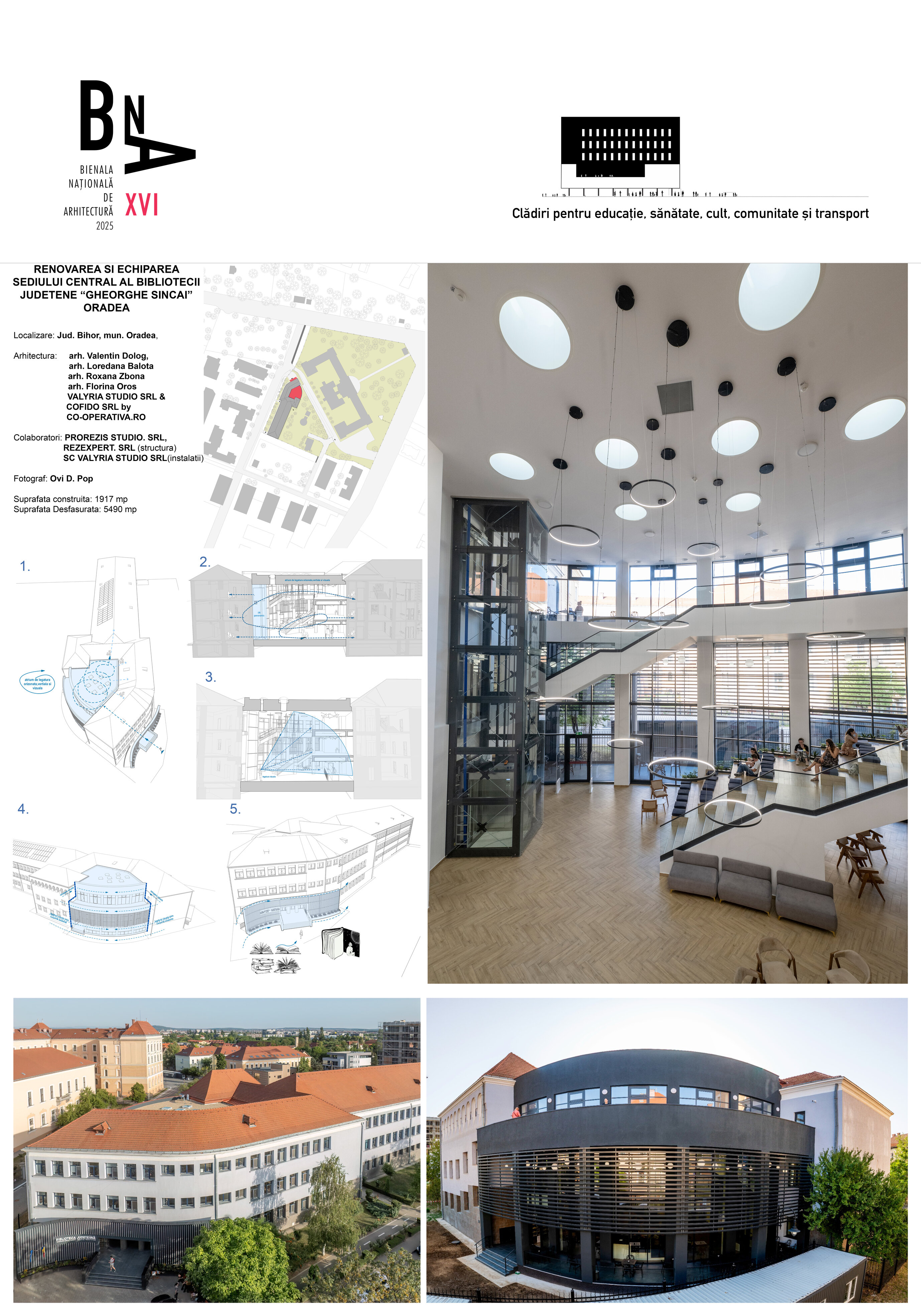 În lobby-ul central este propus și un lift panoramic interior, cu vedere spre amfiteatru, pentru legătura rapidă între nivele și accesibilitatea persoanelor cu dizabilități. Prin crearea acestui atrium de legătură funcțională și culturală, prin digitalizare, prin modernizare, Biblioteca Județeană „Gheorghe Șincai” din Oradea devine un hub cultural cu scopul facilitării accesului la educație într-un spațiu confortabil, accesibil și atractiv, conform standardelor actuale.