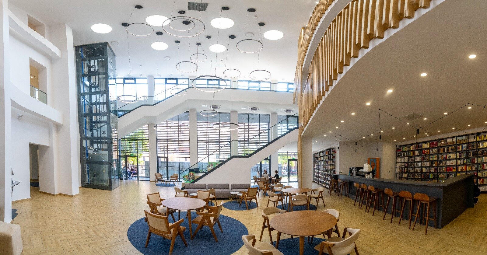 La nivelul etajului 1, pe lângă spațiile comune de lectură și expunere carte, sunt prezente și spații dedicate, precum: auditorium adulți, sală de lectură, sală training competențe digitale; iar la nivelul etajului 2 sunt spații precum sală de conferințe, mediatecă, studio podcast și sală de lectură separată pentru medicină și științe.