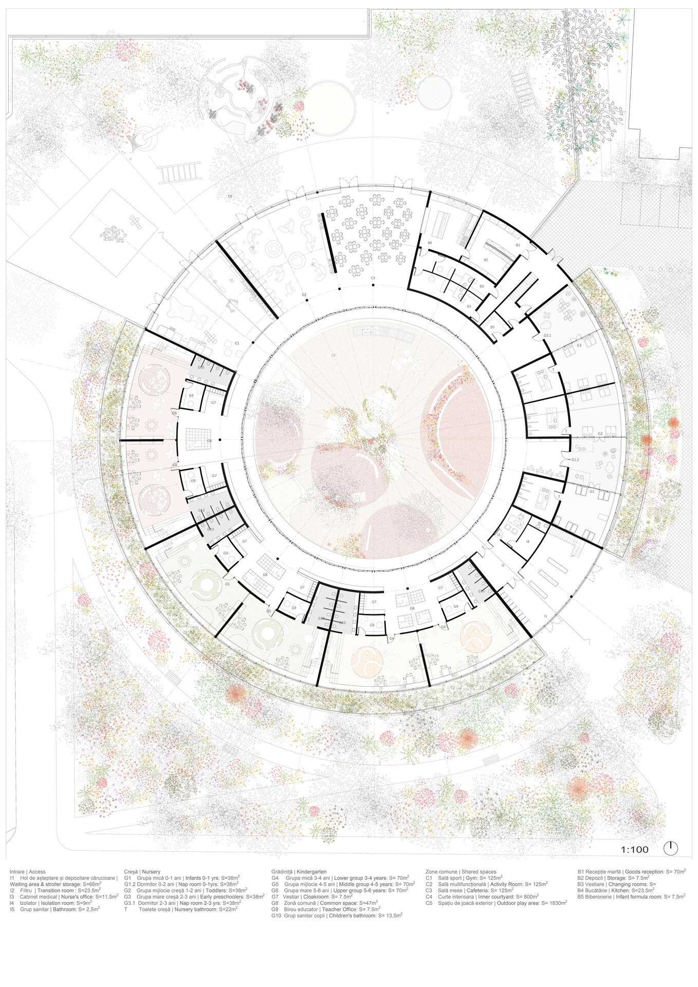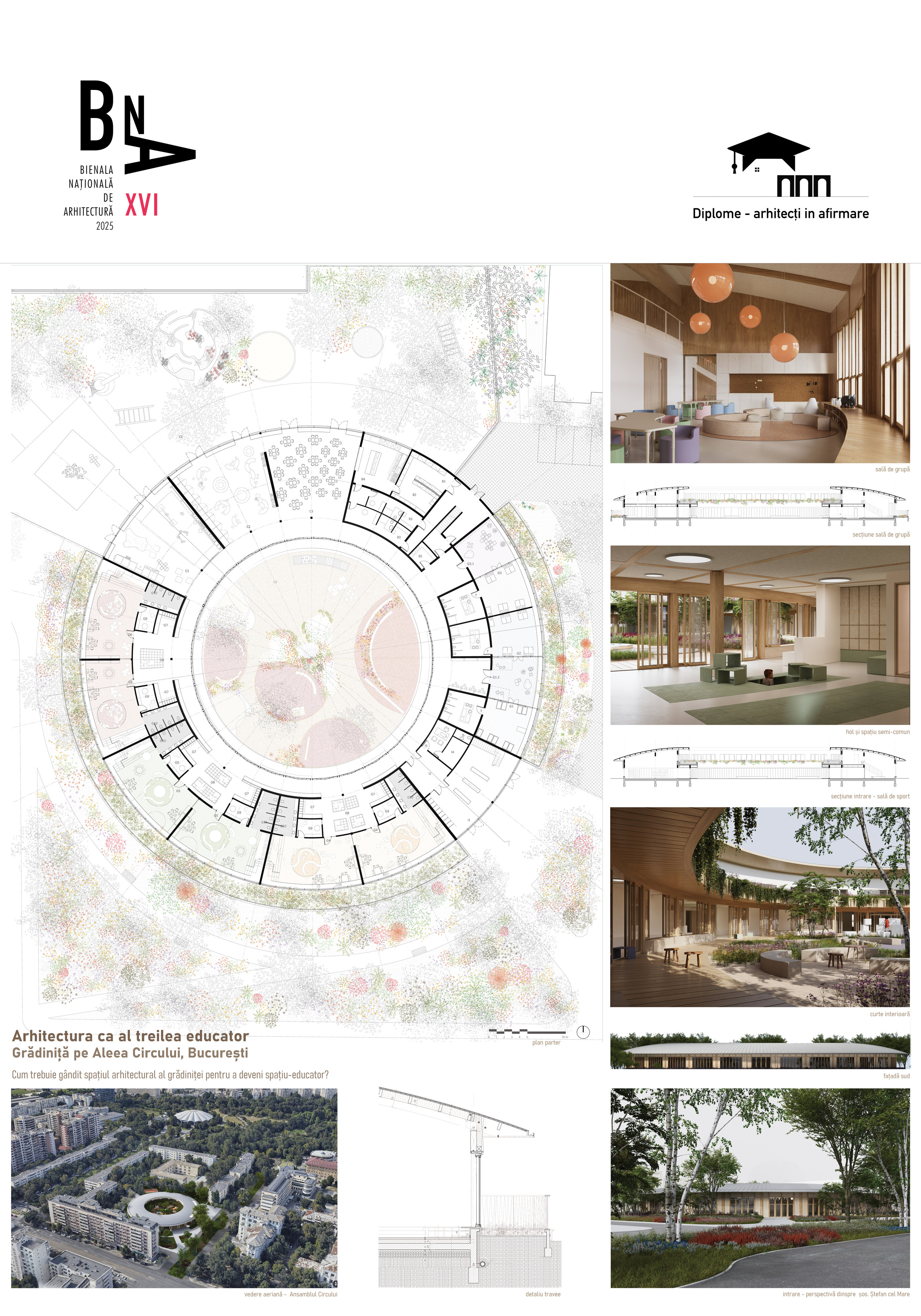 În contextul Bucureștiului de astăzi, mediul construit în care se dezvoltă un copil este previzibil: apartament de 2-3 camere la bloc, grădinița aglomerată și locul de joacă amenajat dintre blocuri. “Grădina de copii” devine în timp “Grădiniță”, pentru ca apoi și curțile și spațiile verzi să se diminueze și ele odată cu dezvoltarea urbană și a infrastructurii de educație. Proiectul propune recăpătarea sensului termenilor și în același timp, implicarea activă a naturii în primii ani de viață.