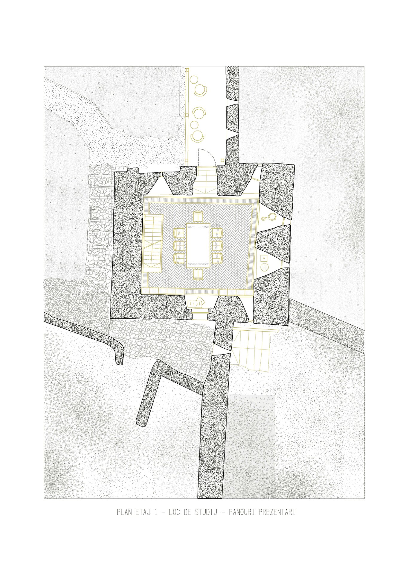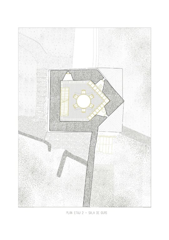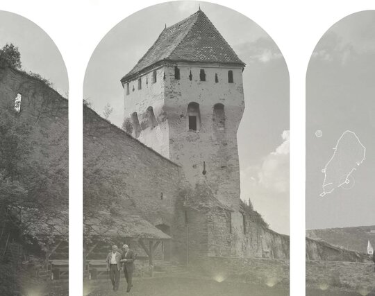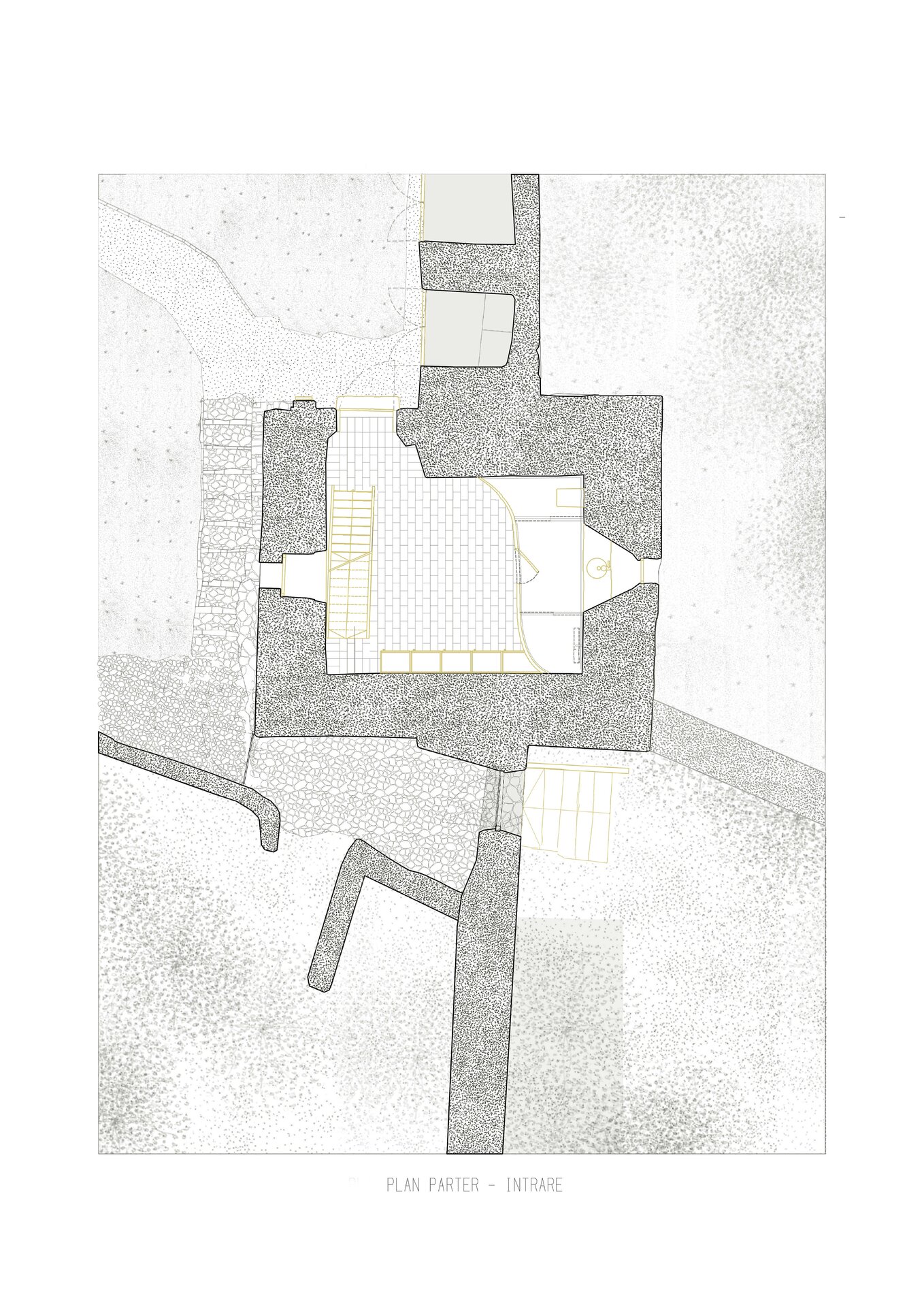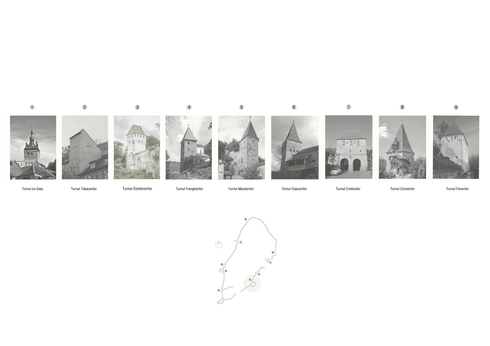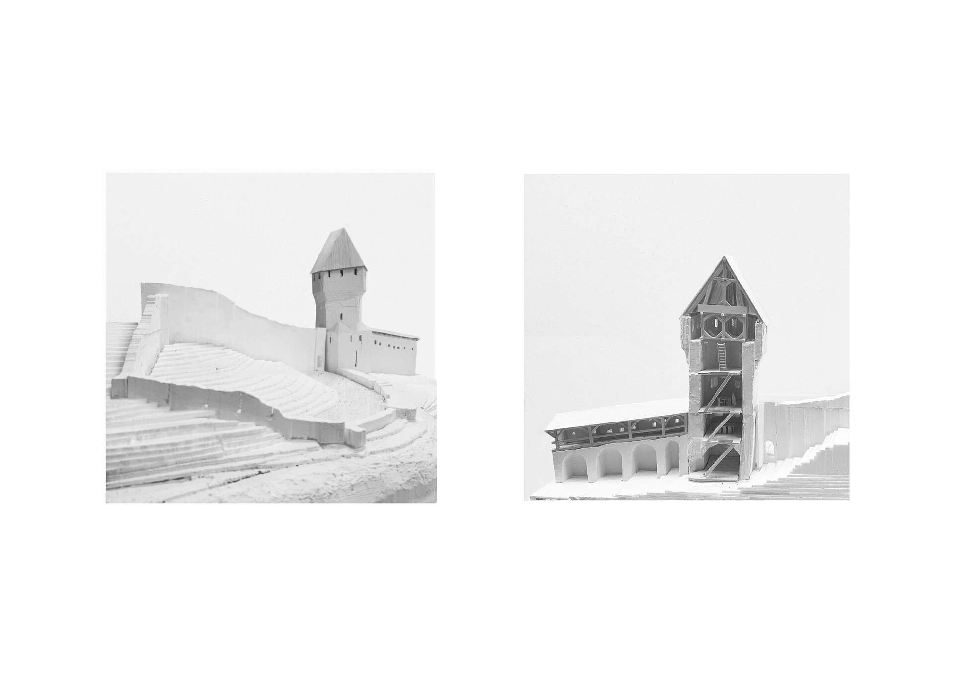 Turnul devine un eveniment prin tectonica sa, dar se consacră proximității și face loc disponibilului. Reverența față de loc o iradiază prin simpla conservare a firescului, cheamă și apropie elementele înconjurătoare, care converg din aproape în aproape către acest spațiu al comunității. Apropierile se citesc în elementele de mobilier urban, acolo unde găsim atingeri contingente, precum: bănci, trepte și rampe ancorate sfios de bastionul atașat turnului.