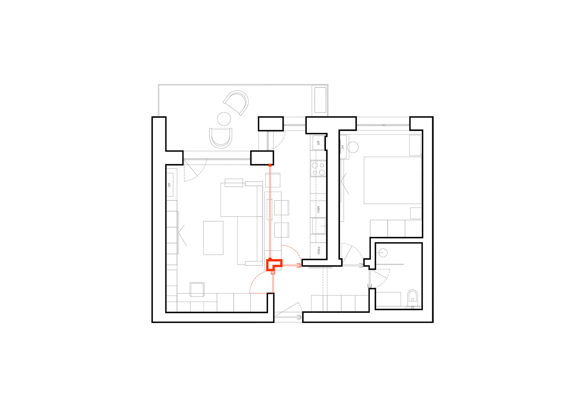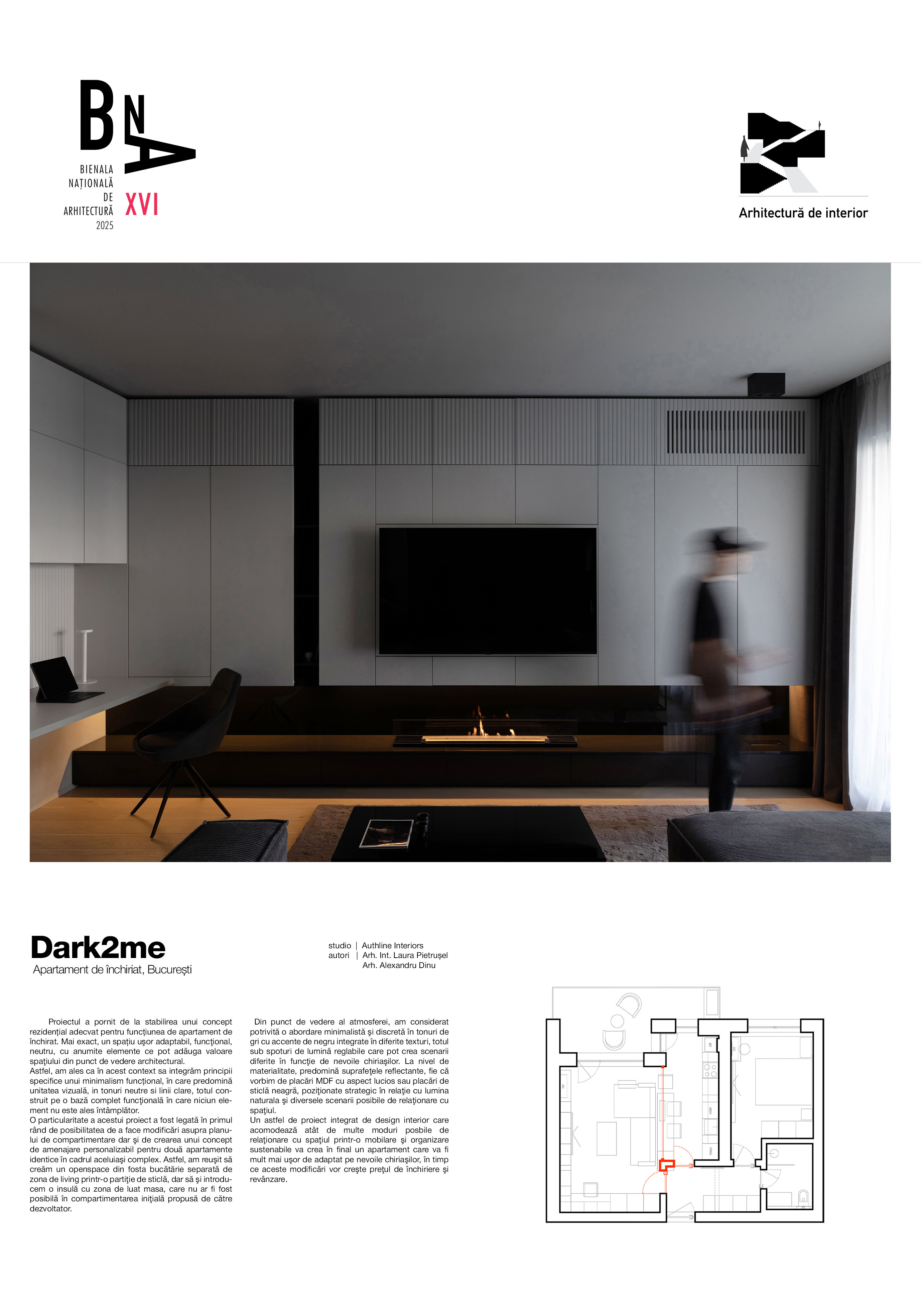 Proiectul a pornit de la stabilirea unui concept rezidențial adecvat pentru funcțiunea de apartament de închirat. Mai exact, un spațiu uşor adaptabil, funcţional, neutru, cu anumite elemente ce pot adăuga valoare spaţiului din punct de vedere architectural.