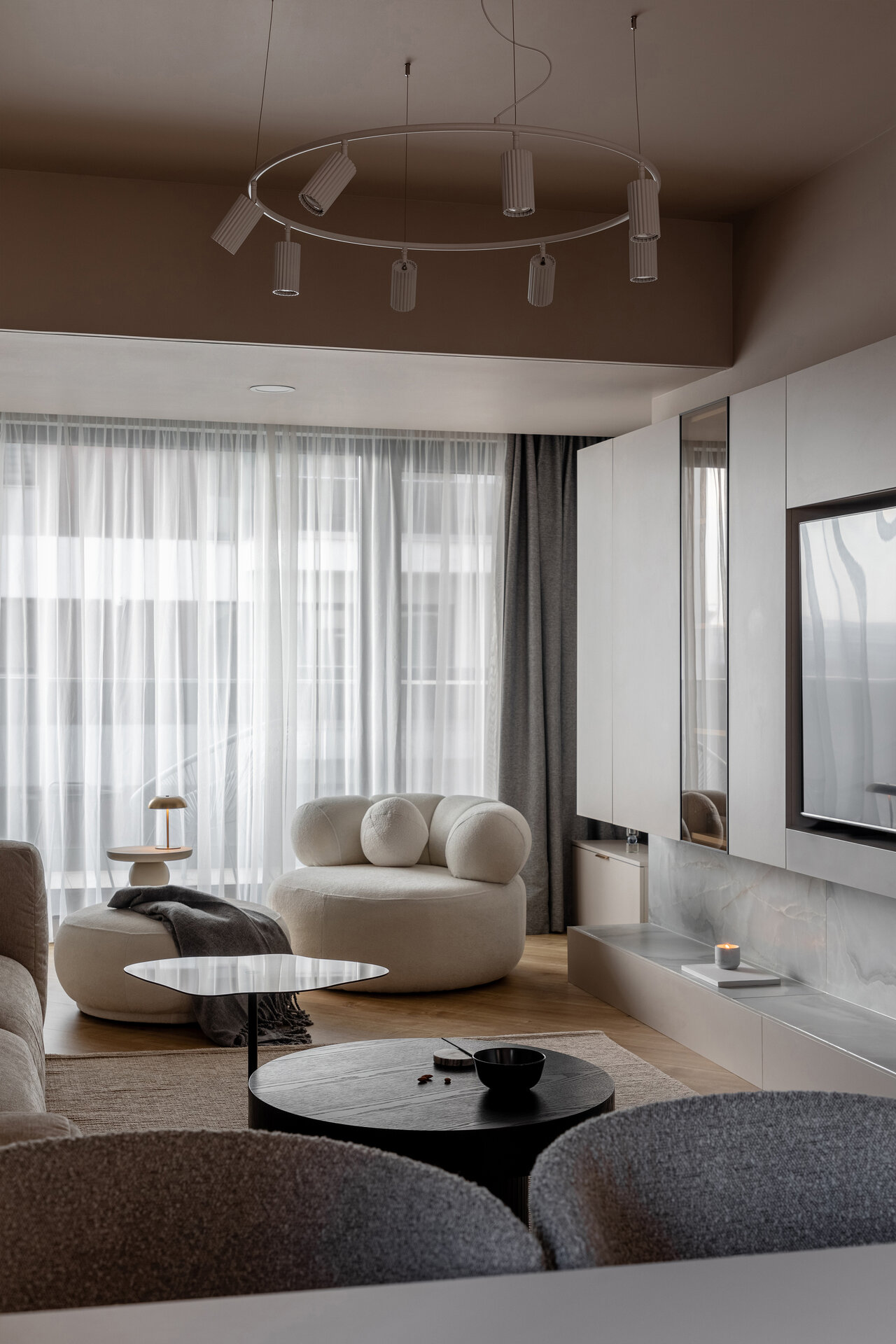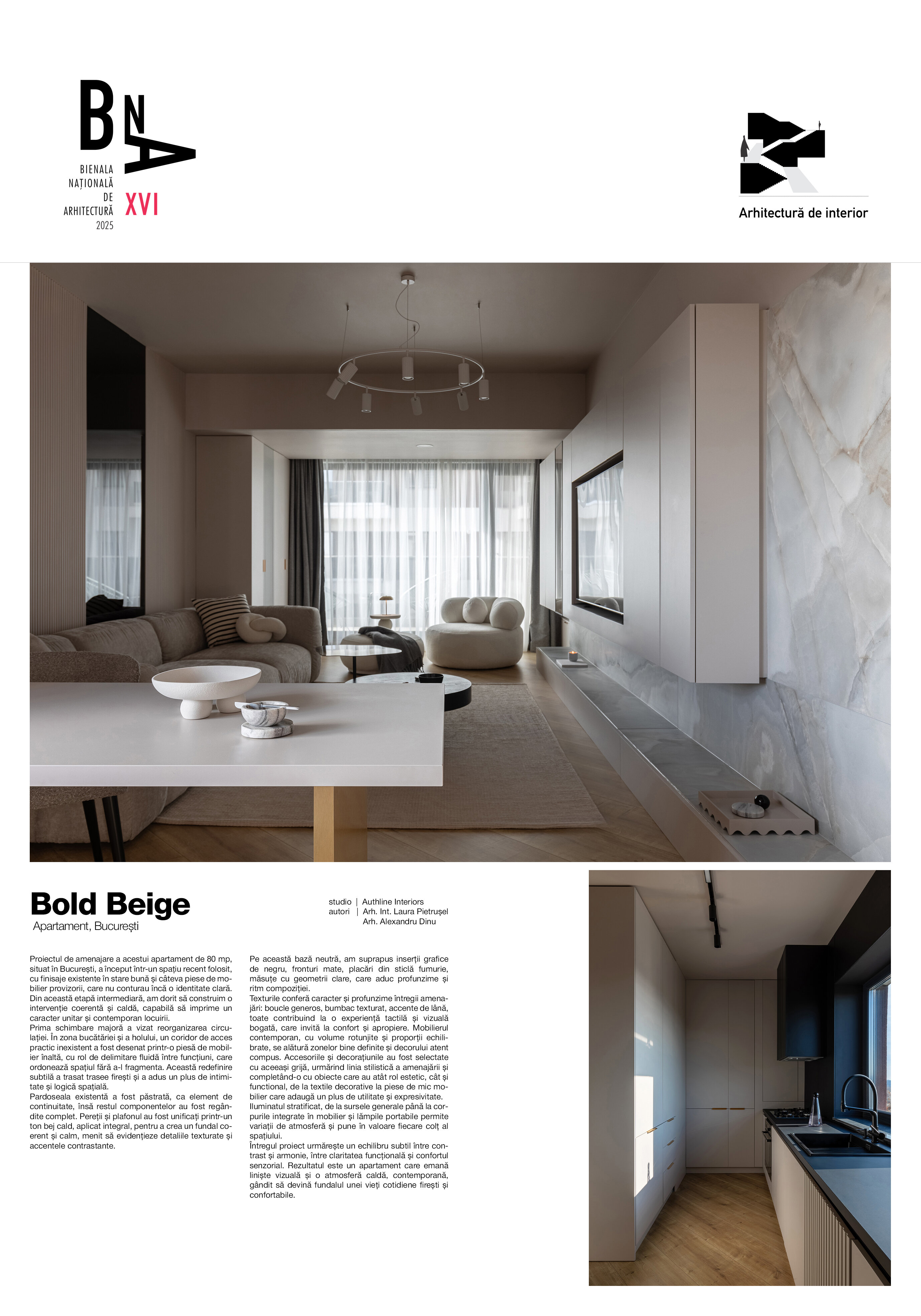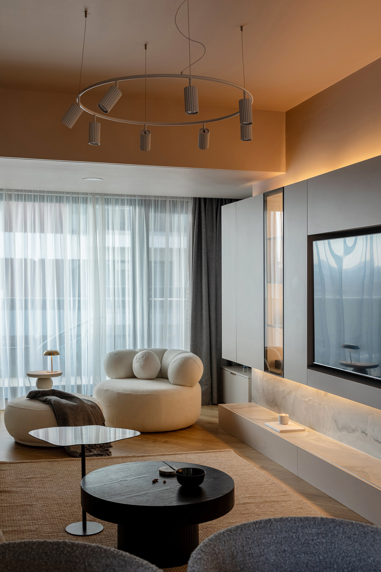 Întregul proiect urmărește un echilibru subtil între contrast și armonie, între claritatea funcțională și confortul senzorial. Rezultatul este un apartament care emană liniște vizuală și o atmosferă caldă, contemporană, gândit să devină fundalul unei vieți cotidiene firești și confortabile.