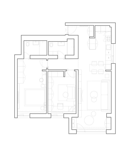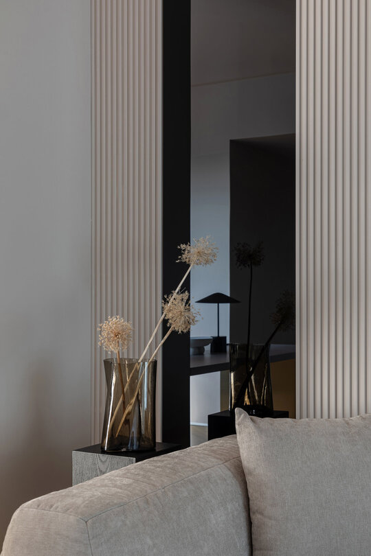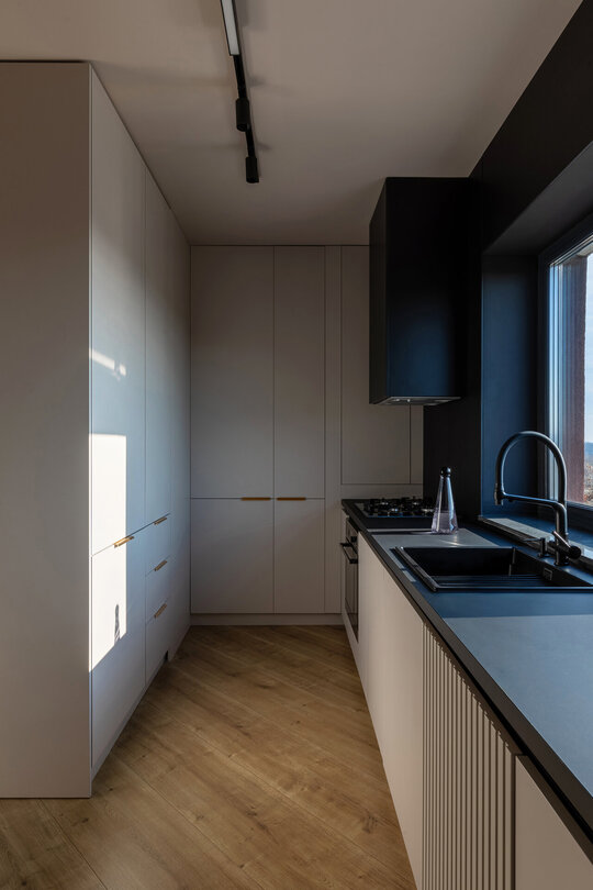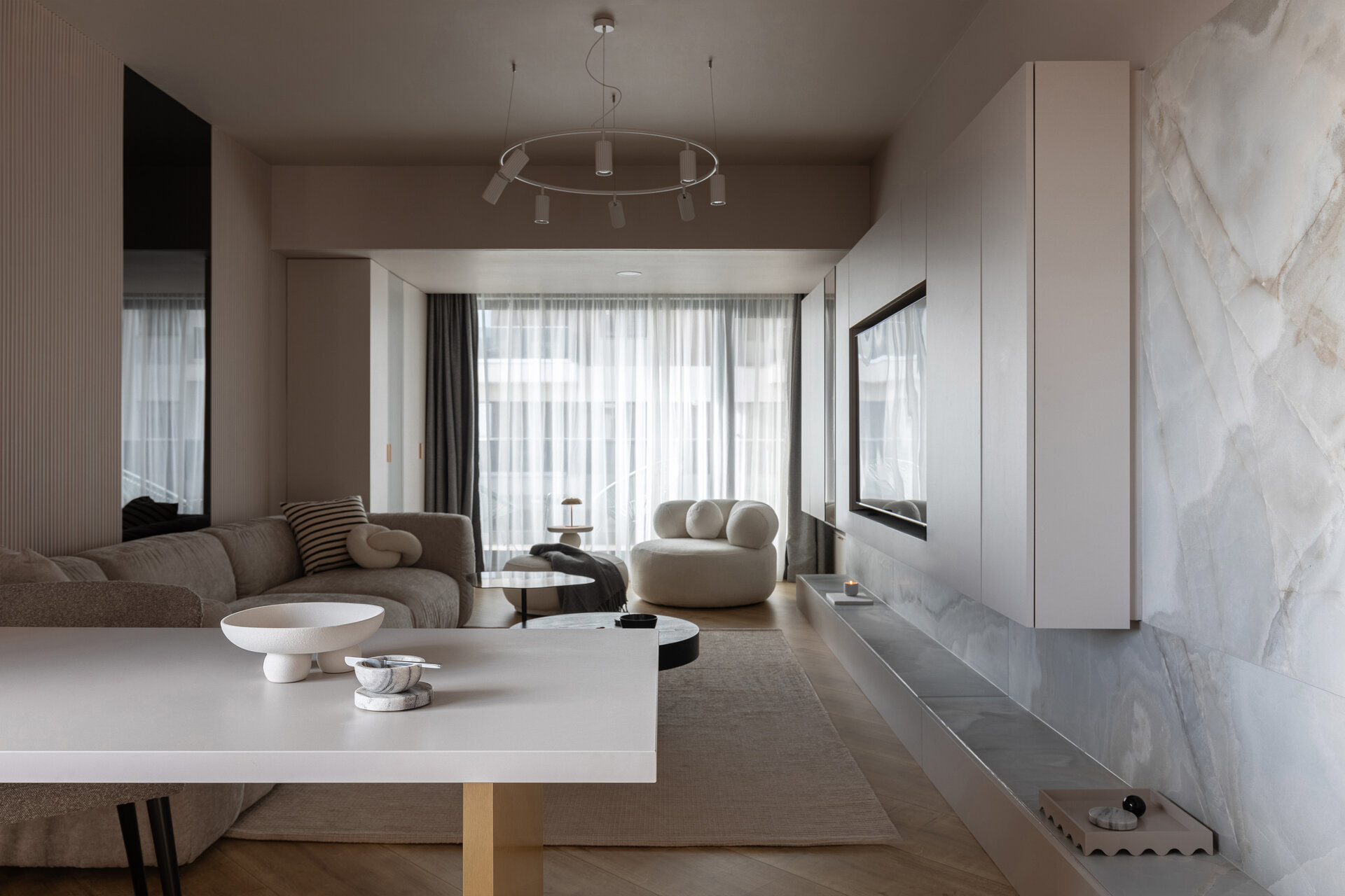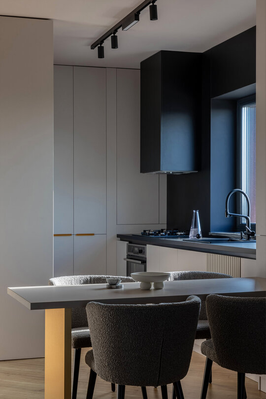 Întregul proiect urmărește un echilibru subtil între contrast și armonie, între claritatea funcțională și confortul senzorial. Rezultatul este un apartament care emană liniște vizuală și o atmosferă caldă, contemporană, gândit să devină fundalul unei vieți cotidiene firești și confortabile.