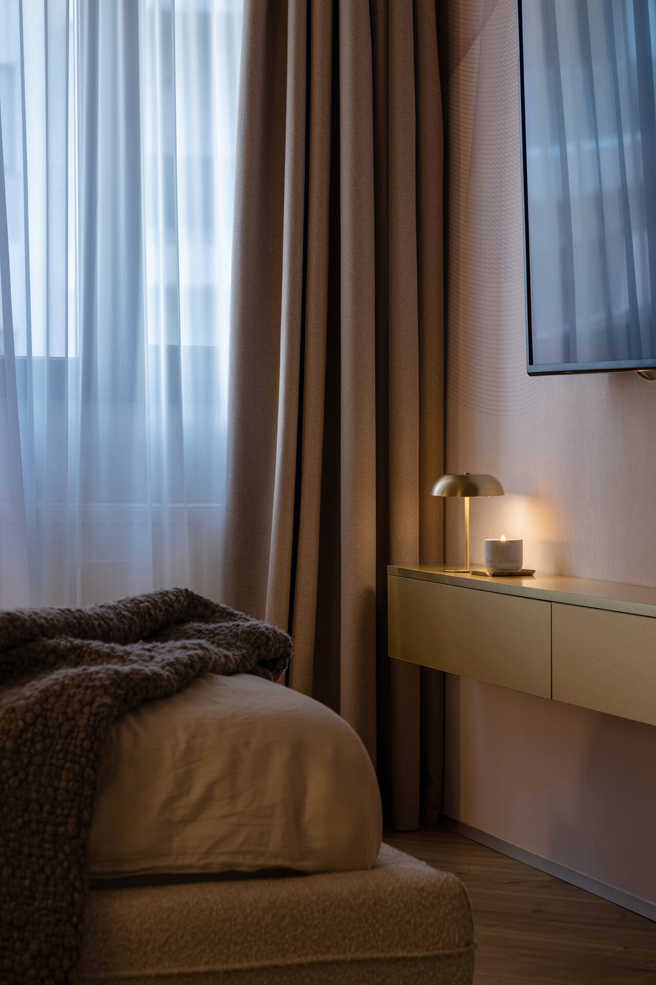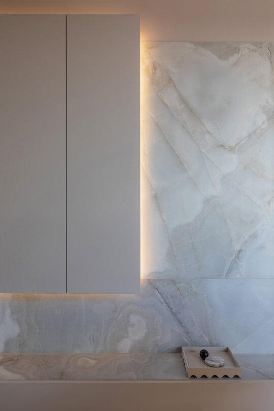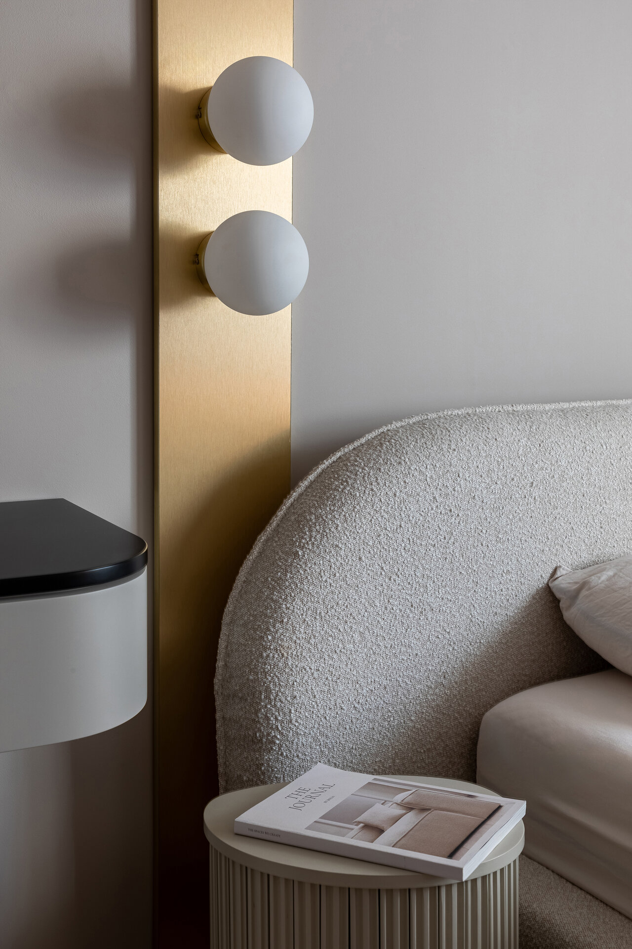 Iluminatul stratificat, de la sursele generale până la corpurile integrate în mobilier și lămpile portabile permite variații de atmosferă și pune în valoare fiecare colț al spațiului.