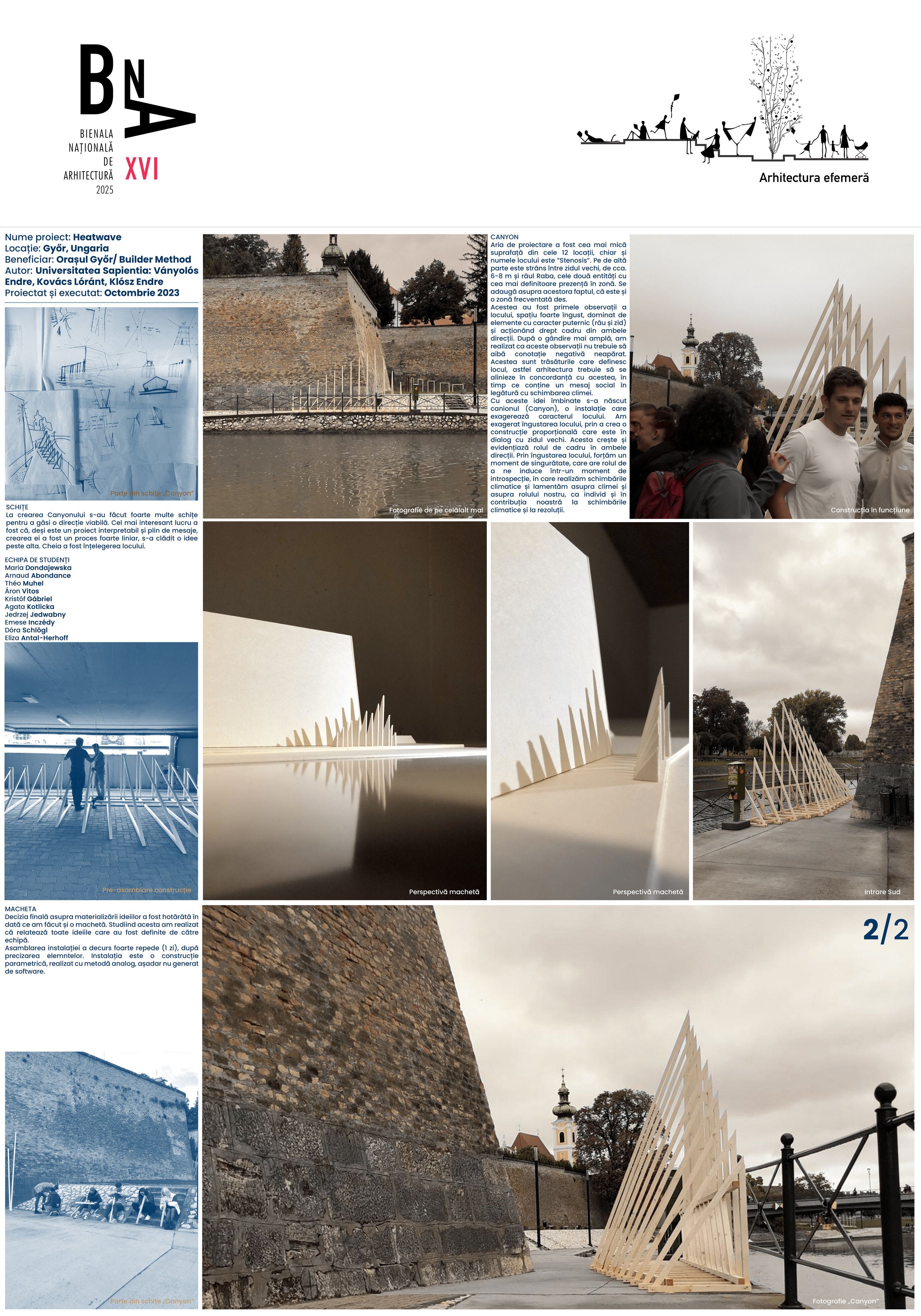 Workshop-ul a fost organizat de Universitatea Széchenyi István, facultatea de arhitectură. S-au construit 12 construcții (9 autori locali și 3 internațional), dintre care 2 conduse de Universitatea Sapientia: Ledge și Canyon.