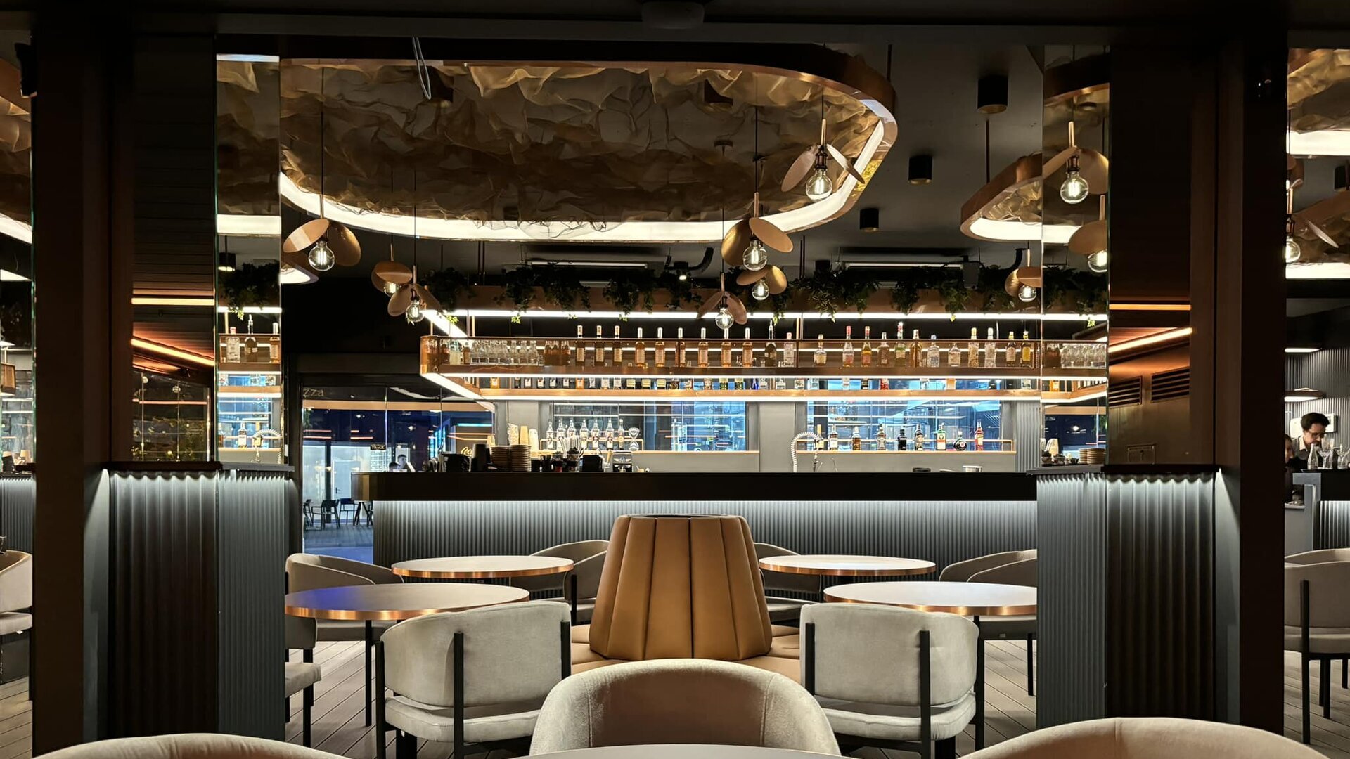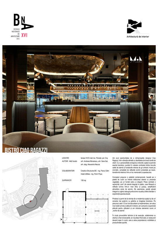 Cu o personalitate vibrantă, energică, am putea spune că acest spațiu reflectă în mod absolut caracterul brandului. Utilizarea nuanțelor calde de alamă, în contrast absolut cu fundalurile gri-antracit, dezvăluie un spațiu emblematic, care îi distrează pe clienți cu jocurile de lumină create pe tavan și în reflexii.