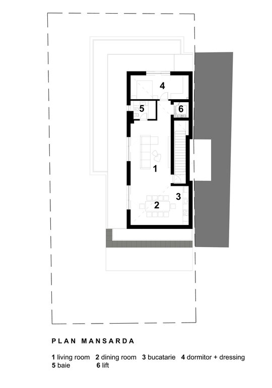 La etajul 3 (mansarda) de gaseste un apartament independent functional ce se extinde pe o terasa perimetrala ce ofera o panorama frumoasa asupra cartierului. Volumul etajului 3 este o prezenta discreta, fiind retras si finisat in culori inchise pentru a respecta caracterul si regimul de inaltime modest al zonei.