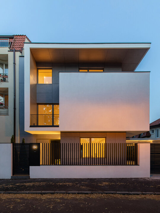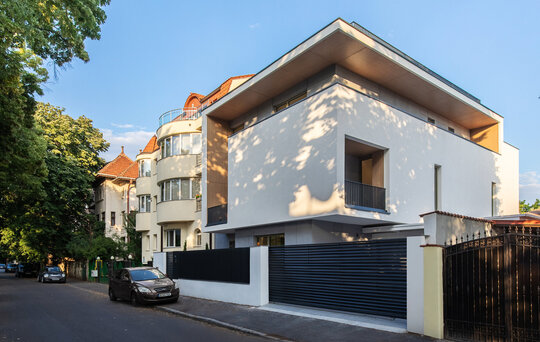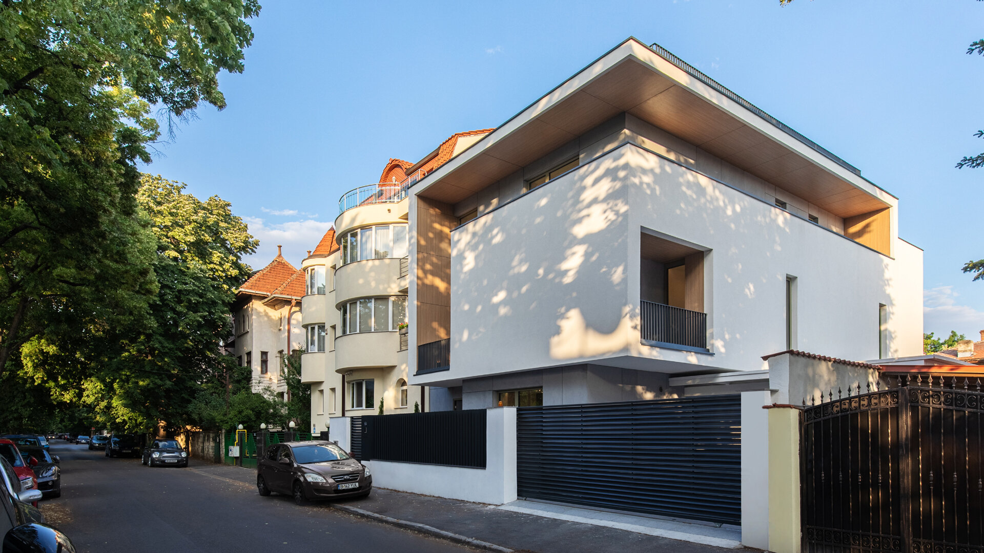 Cladirea se afla intr-un cartier eterogen din punct de vedere al stilurilor arhitecturale, dar caracterizat de fatade cu un raport plin/gol traditional. Astfel, aspectul exterior propus este dominat de masivitatea volumului etajelor 1 si 2 ce pluteste peste parterul retras si este strapuns de decupaje ce permit luminii sa patrunda in incaperi.