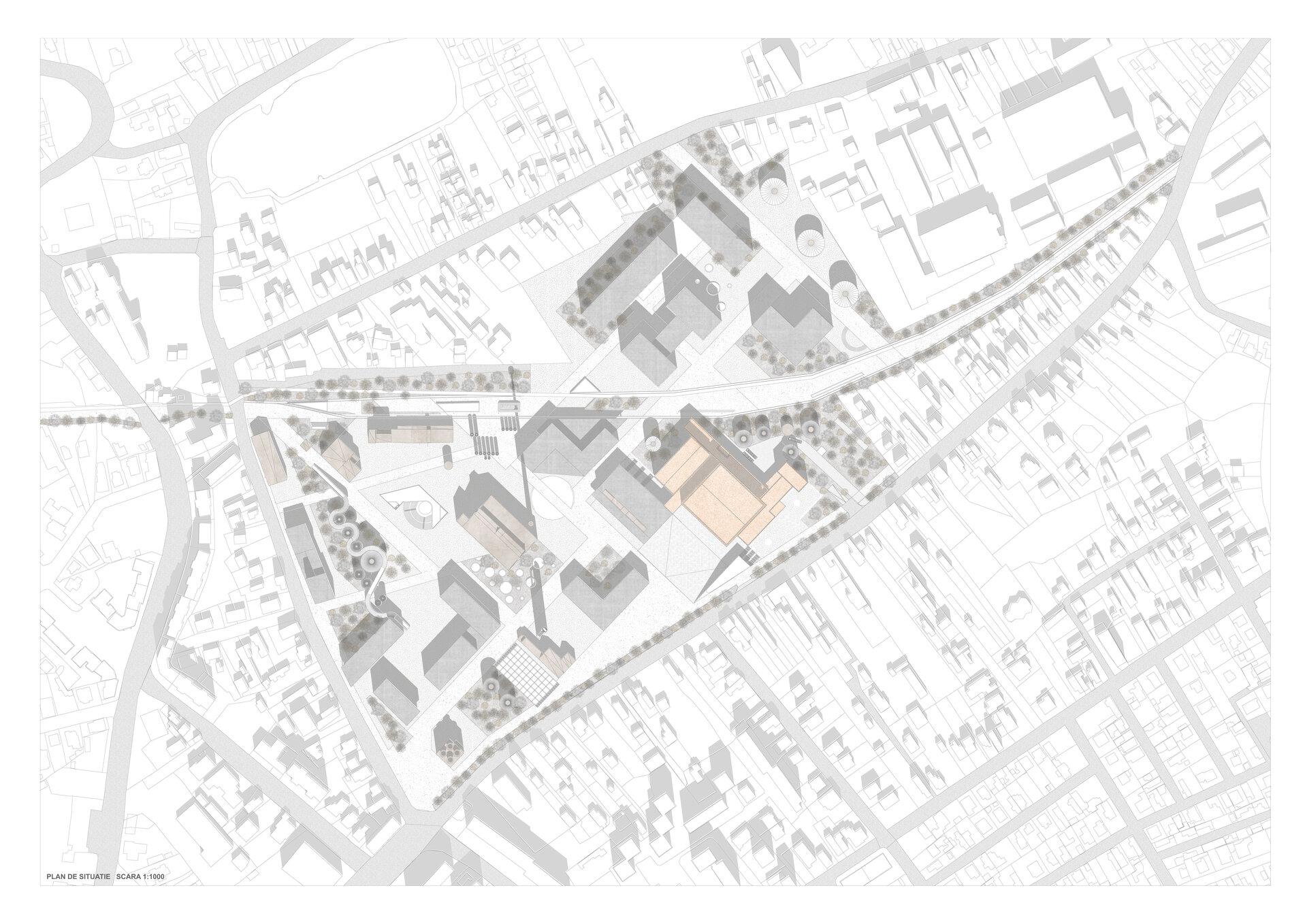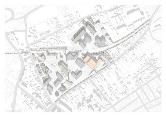 Conceptul de bază pornește de la identificarea reperelor spațiale existente, clădirile cu valoare istorică și traseul căii ferate ce divizează situl în două zone distincte. Aceste elemente au fundamentat o serie de „linii de forță” pe baza cărora au fost dispuse noile clădiri, spațiile publice (piațete și parcuri) și arterele de circulație, pietonale și auto, menite să îmbunătățească conectivitatea și fluiditatea traficului urban.