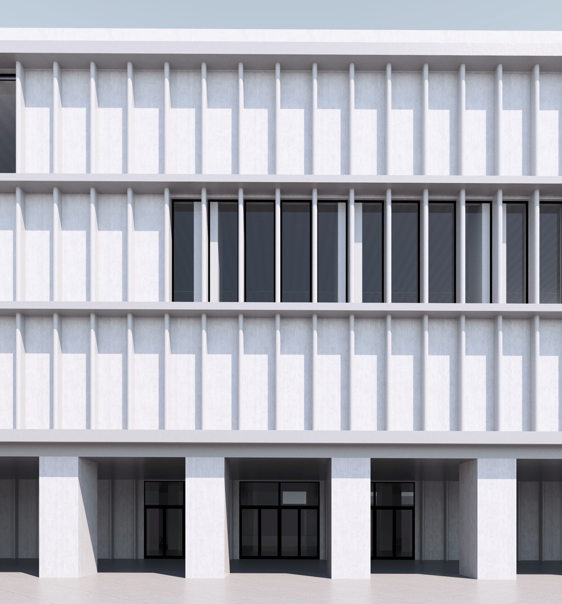 Fațadele ansamblului sportiv propun o expresie arhitecturală unitară, construită printr-un joc de registre verticale și orizontale, ce conferă volumelor masive o imagine clară și riguroasă. Placajul din panouri de Alucobond definește suprafețe continue și curate, pe care ritmul deschiderilor vitrate le fragmentează subtil, adăugând dinamism compoziției. Ferestrele sunt dispuse controlat, integrându-se într-un sistem repetitiv și ordonat, care asigură coerență vizuală și subliniază funcțiunile interioare.
