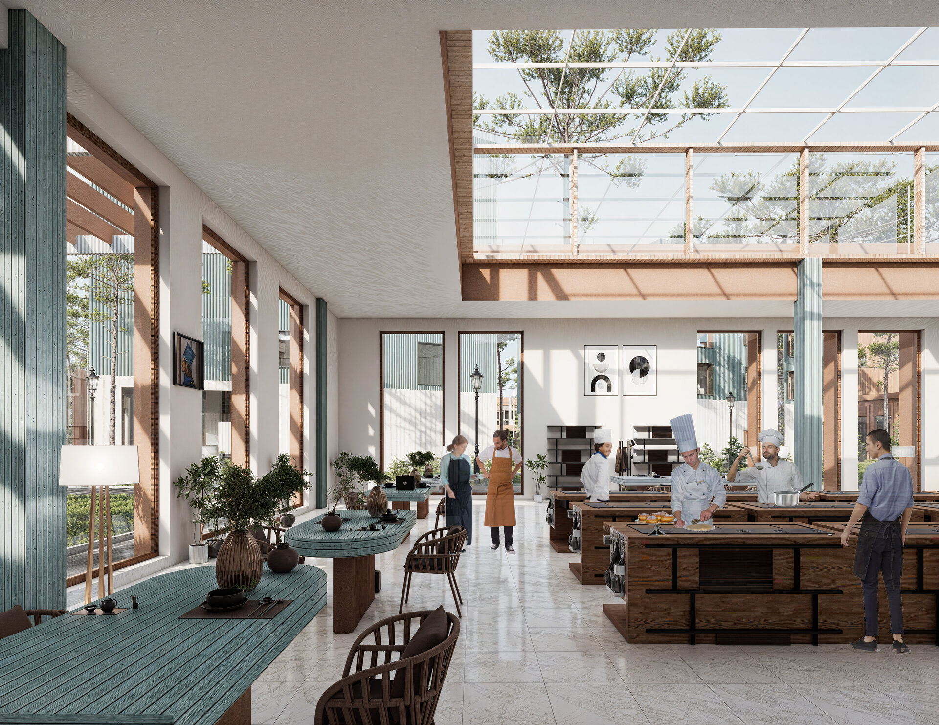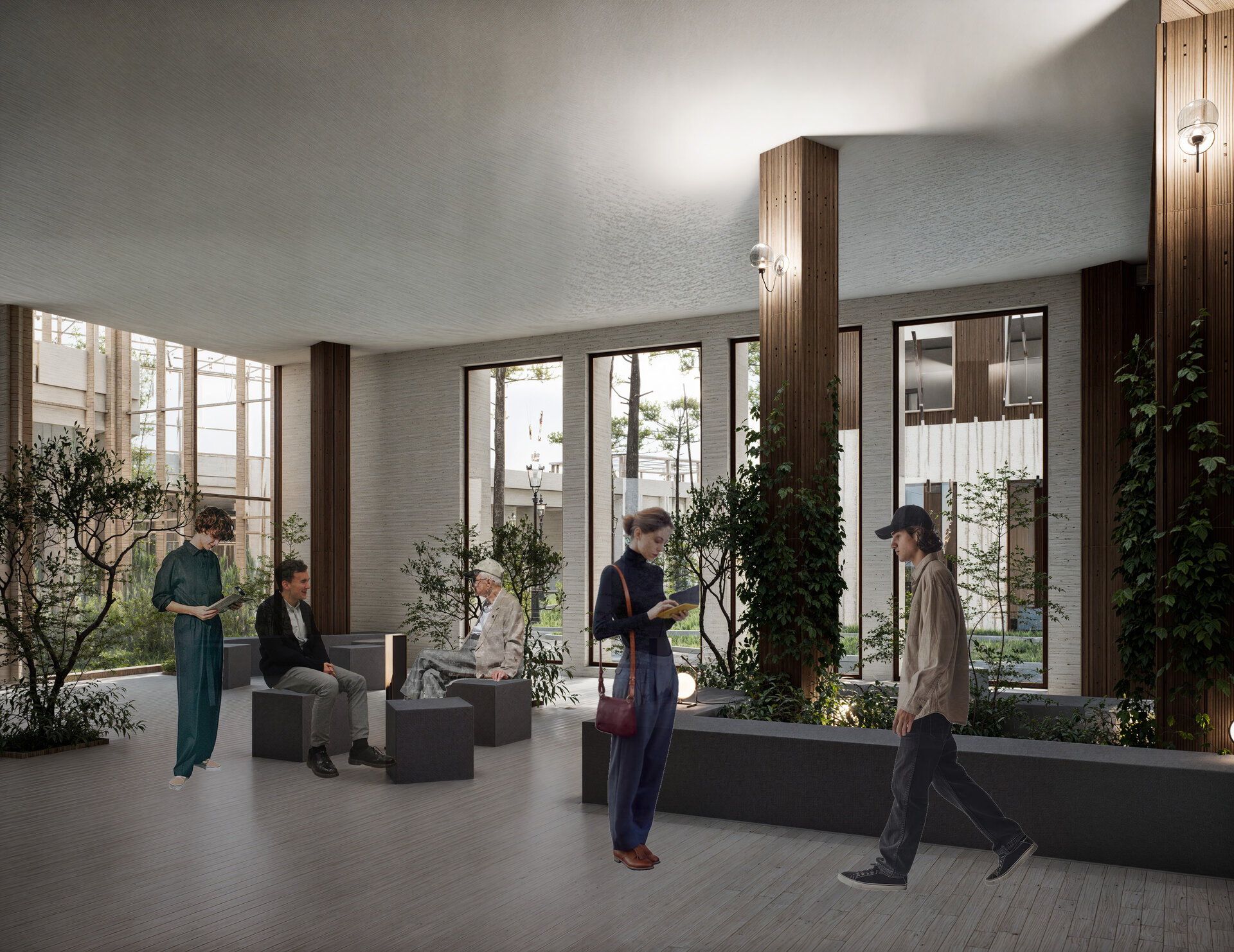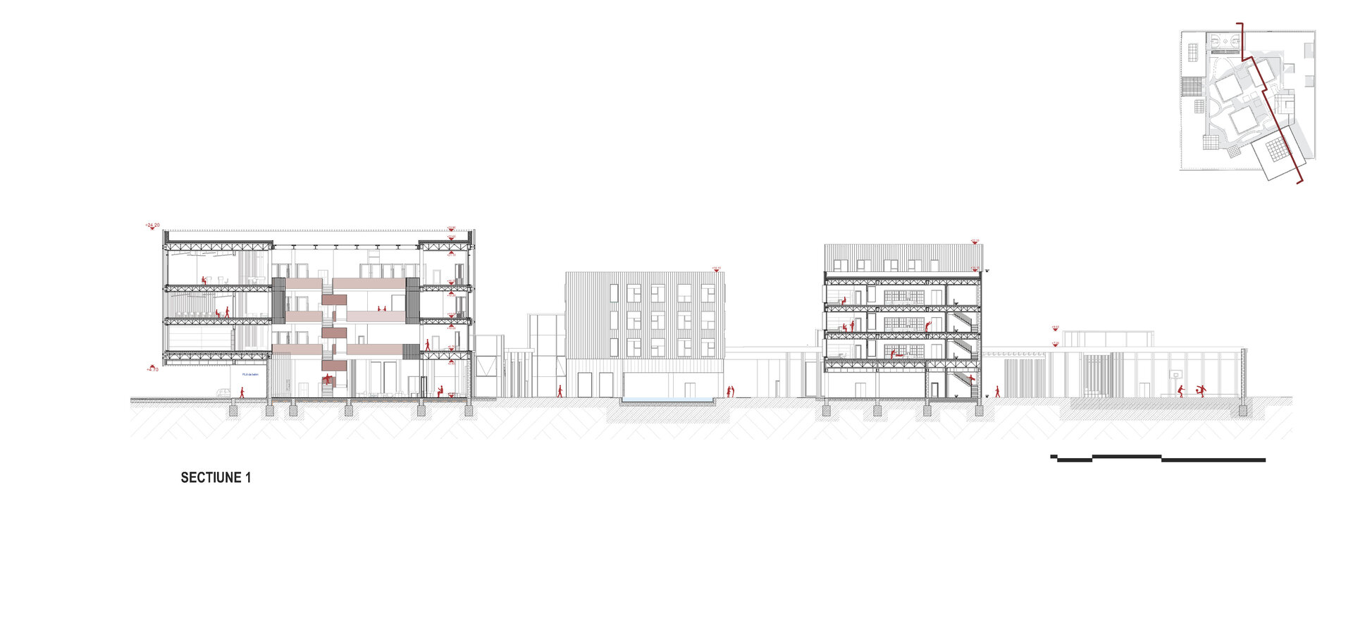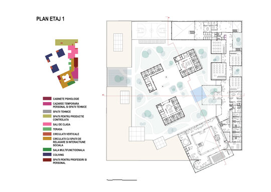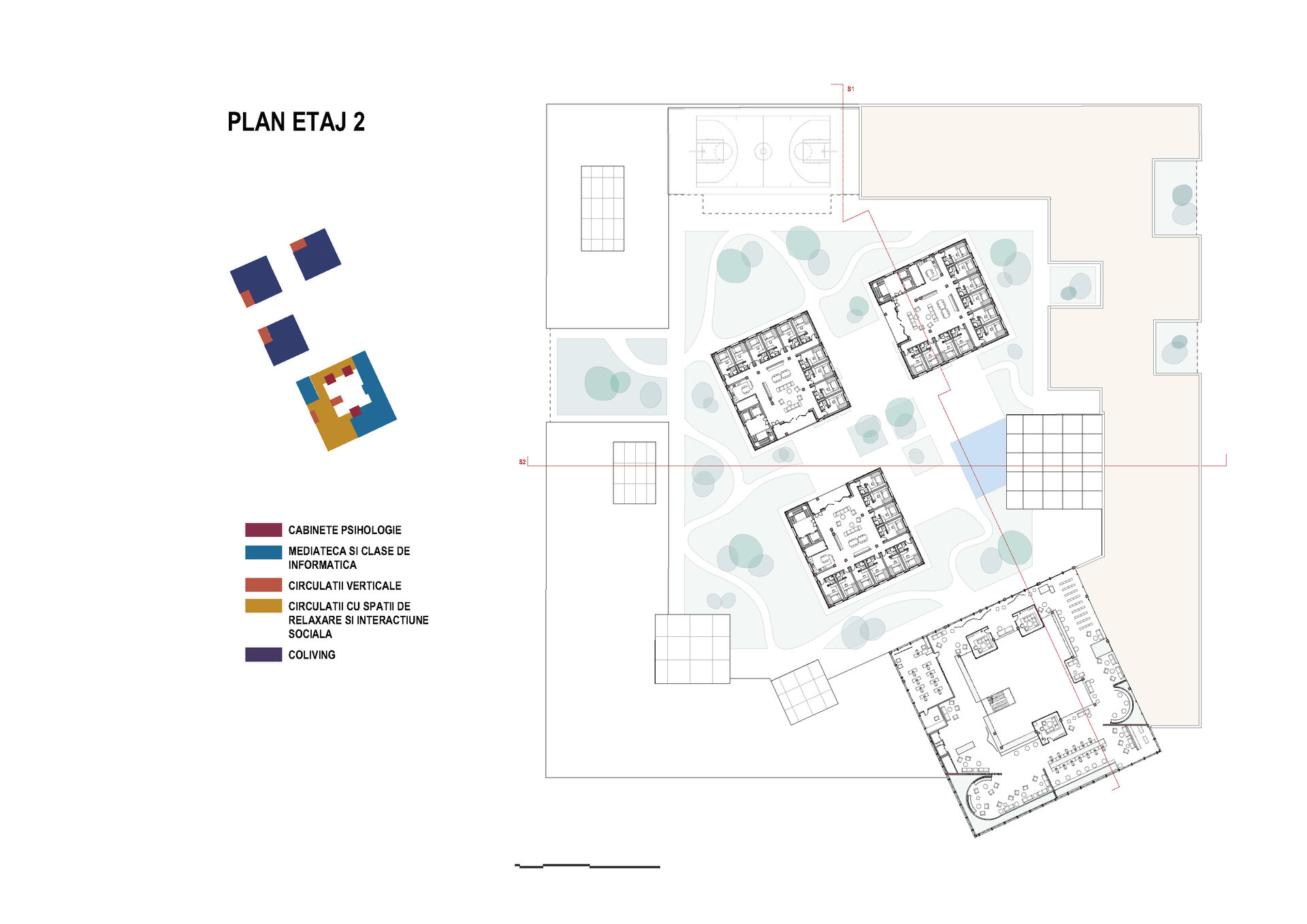 Arhitectura și modul de organizare al centrului joacă un rol esențial în îndeplinirea acestei misiuni. Spațiile sunt concepute astfel încât să inspire încredere și să creeze o atmosferă luminoasă, pozitivă și prietenoasă. Zonele de terapie oferă cadrul necesar pentru vindecare emoțională, atelierele sprijină disciplina și dobândirea unor competențe practice, biblioteca devine un loc pentru educație, cunoaștere și reflecție, iar spațiile de socializare stimulează interacțiunea și colaborarea. Curțile interioare, grădinile și spațiile verzi exterioare nu au doar un rol estetic, ci sunt concepute pentru a recrea un mediu familiar, liniștitor și plăcut, care să le ofere beneficiarilor sentimentul de apartenență și de siguranță. Contactul direct cu natura, chiar și în forme controlate – un colț verde, o grădină de legume, o alee umbrită sau un spațiu de odihnă sub copaci – contribuie la reducerea stresului și la stabilizarea emoțională. Pentru persoanele aflate într-un parcurs de reintegrare, aceste spații devin adevărate „zone de respiro”, unde își pot recăpăta echilibrul și pot experimenta bucuria unor activități simple, poate uitate in timp. Prin acest proiect, se demonstrează că reintegrarea socială nu este un vis utopic, ci un proces funcțional și eficient atunci când există voință, empatie și o infrastructură adecvată. Este o șansă reală ca oamenii să își reia drumul în viață într-un mod echilibrat, iar societatea să evolueze prin recuperarea și valorizarea resurselor umane, în loc să le piardă.