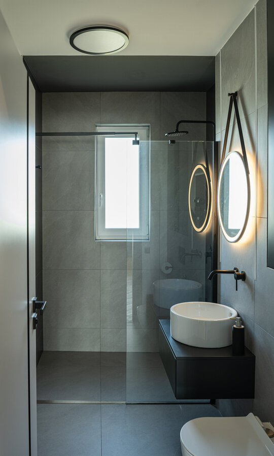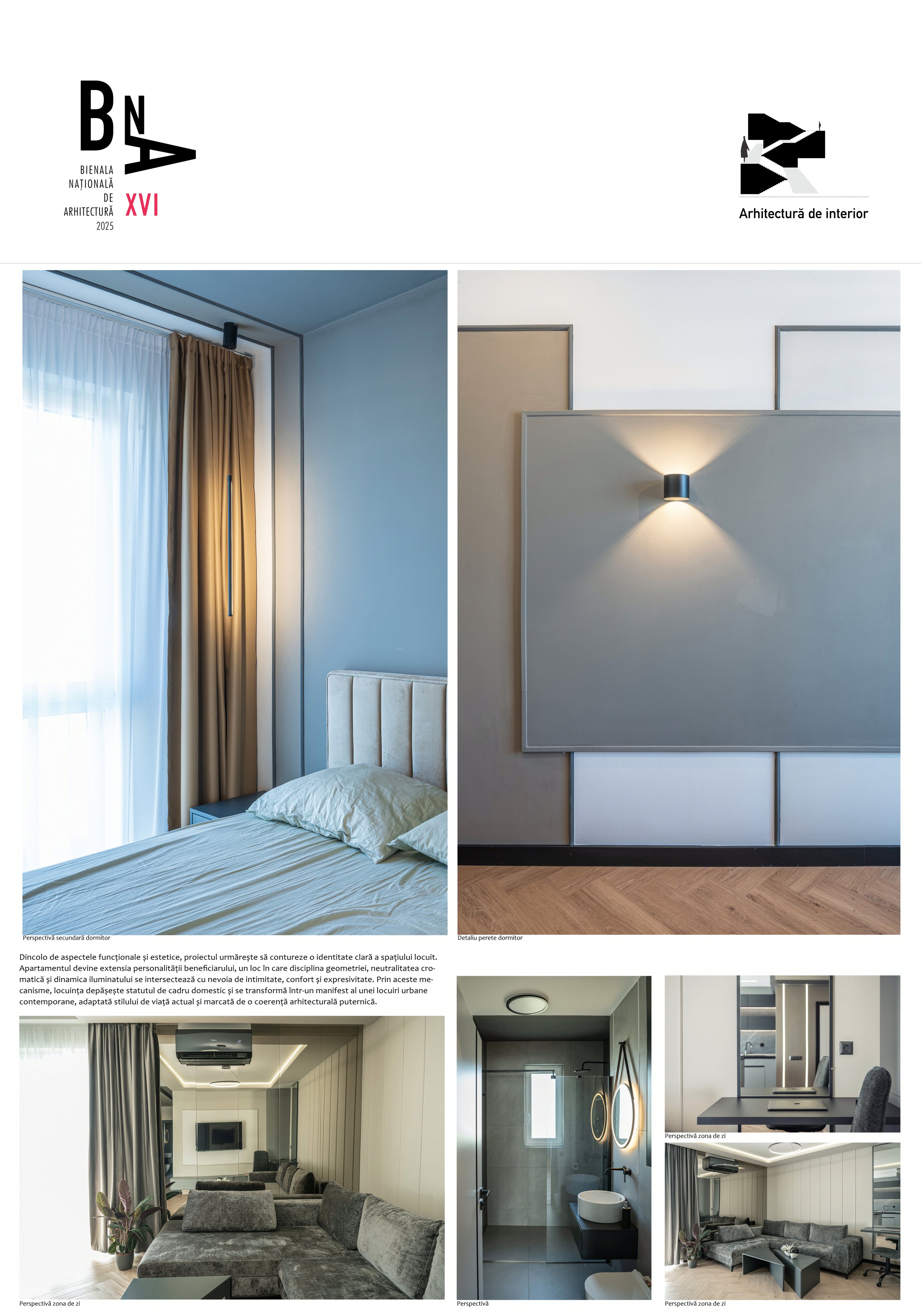 Intervenția a urmărit reorganizarea funcțională a spațiului existent, astfel încât să răspundă nevoilor complexe ale beneficiarului. Într-un cadru relativ compact, au fost integrate două funcțiuni suplimentare – o zonă de lucru la domiciliu și un dressing – fără a sacrifica confortul general. Repoziționarea acceselor și reconsiderarea relațiilor dintre spații au condus la o fluiditate sporită, în timp ce jocul ușilor și al liniilor continue pe pereți generează coerență vizuală și claritate compozițională.