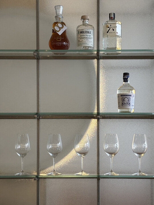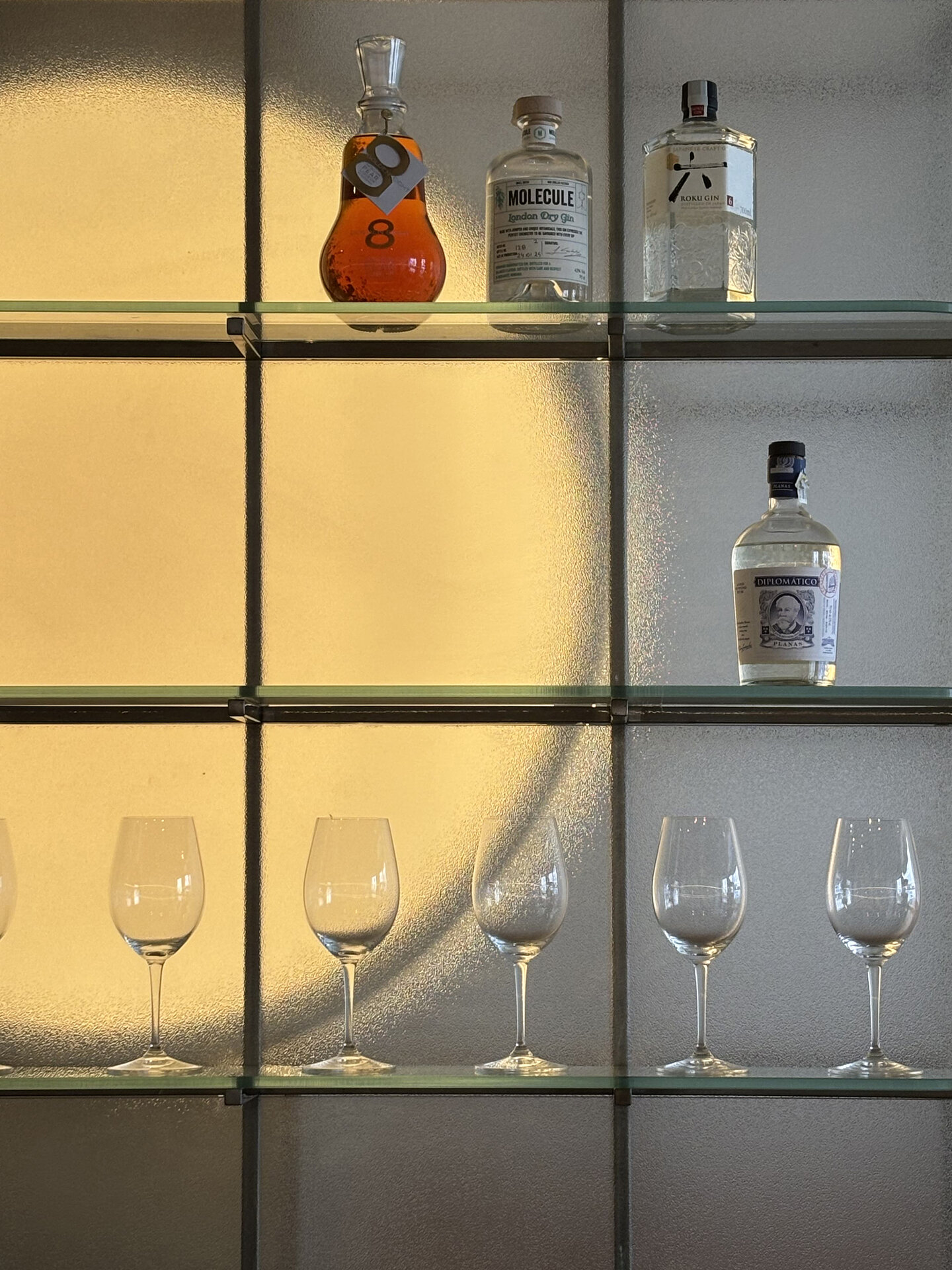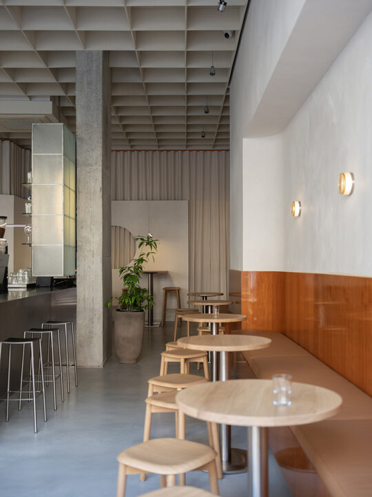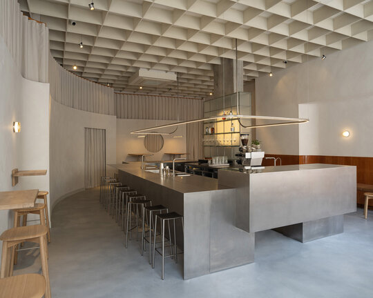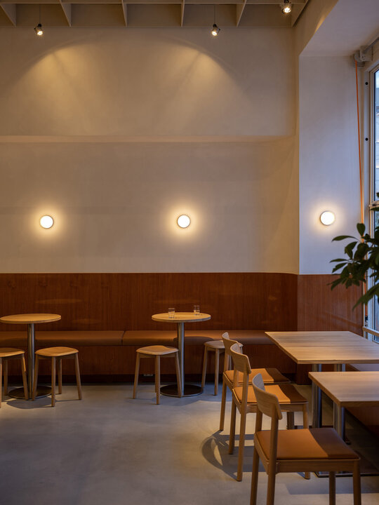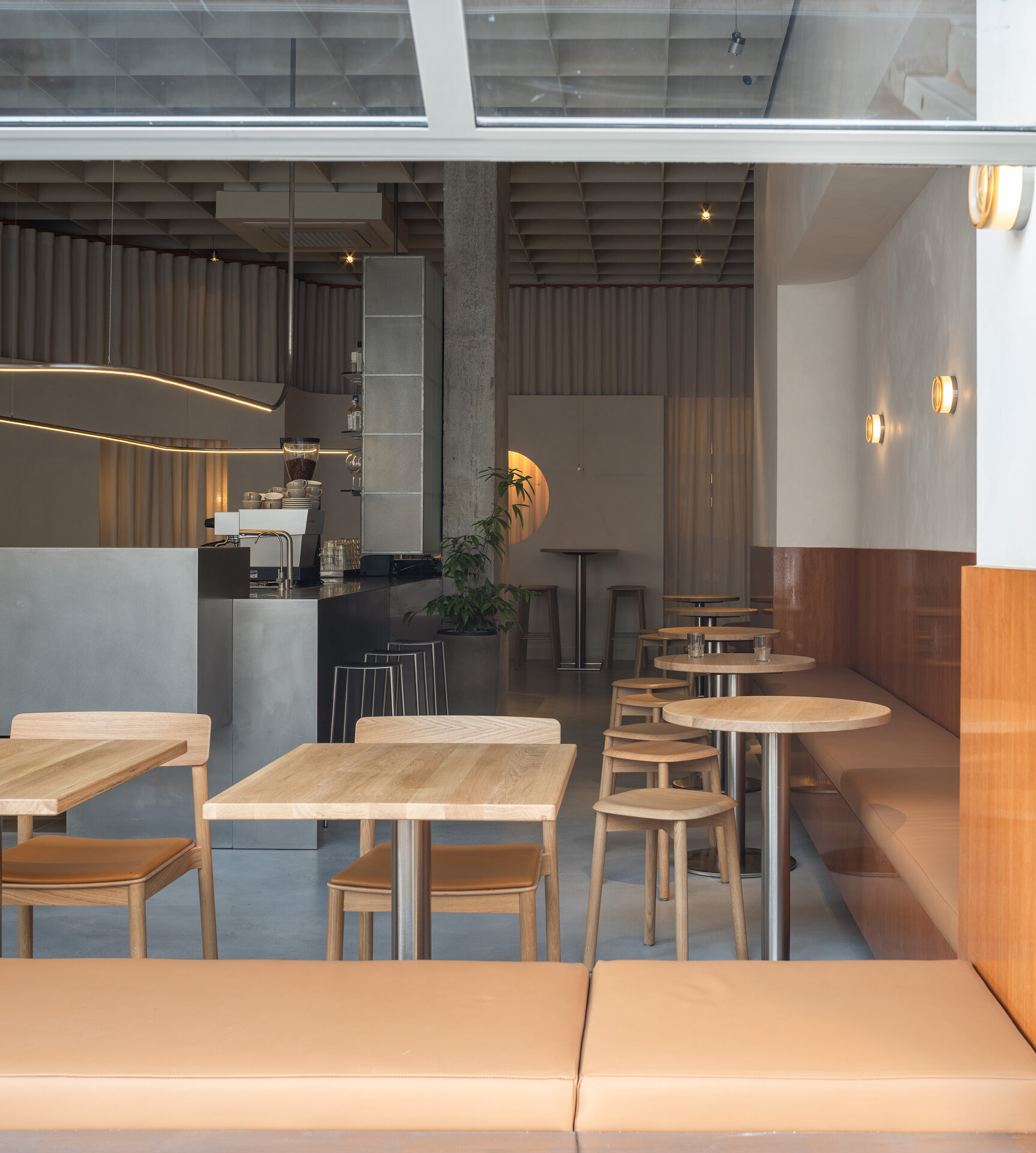 Spațiul capătă multiple profunzimi atunci când lumina întâlnește momentele meștesugite. Ziua, lumina soarelui se revarsă peste betonul brut, lemnul cald și metalul aproape mat - acestea sunt orele de contemplare matinală. Seara, spațiul trece prin propria metamorfoză: prezența industrială și rece a barului este atenuată de coregrafia ambientală a luminii; un display-wall luminos schimbă în tonuri aurii metalul iar decupajul perfect rotund din peretele-paravan revarsă lumină galbenă menită să simuleze o a doua fațadă a încăperii; Iluminatul este conceput asemenea unui mise-en-scène adaptabil și permite transformarea spațiului pentru a crea scenografii diferite.