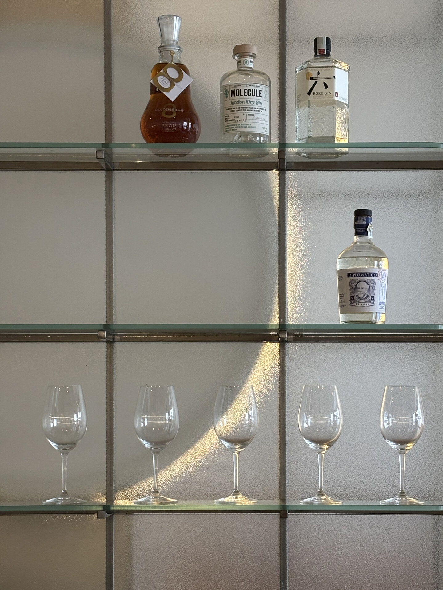 O încăpere simplă, rectangulară, în care singura orientare este dată de profunzimea fațadei dinspre bulevardul Regina Elisabeta și eleganța clădirii ce o găzduiește. O colonadă de stâlpi a unei perioade de consolidare perforează spațiul central, iar diametral opus accesului o legătură îngustă cu ceea ce urmează a fi bucătăria, prelungește adâncimea spațiului. Lumina își pierde din intensitate gradual și ierarhizează spațiul, alterându-i oarecum centralitatea.