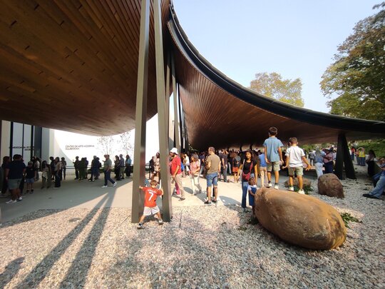 Încă dinaintea conferinței inaugurale, întreaga zonă de acces – inspirată de engawa japoneză, reinterpretată aici ca o prispă uriașă ce leagă interiorul de grădinile portugheze – devenise un spațiu viu. Oameni de toate vârstele și ocupațiile își găsiseră locul acolo: copii jucându-se, tineri discutând, cupluri plimbându-se, profesioniști observând detaliile, bunici și animale de companie relaxându-se în spațiul intermediar. Arhitectura se lăsa deja locuită, însușită și transformată într-un cadru natural al interacțiunii umane.