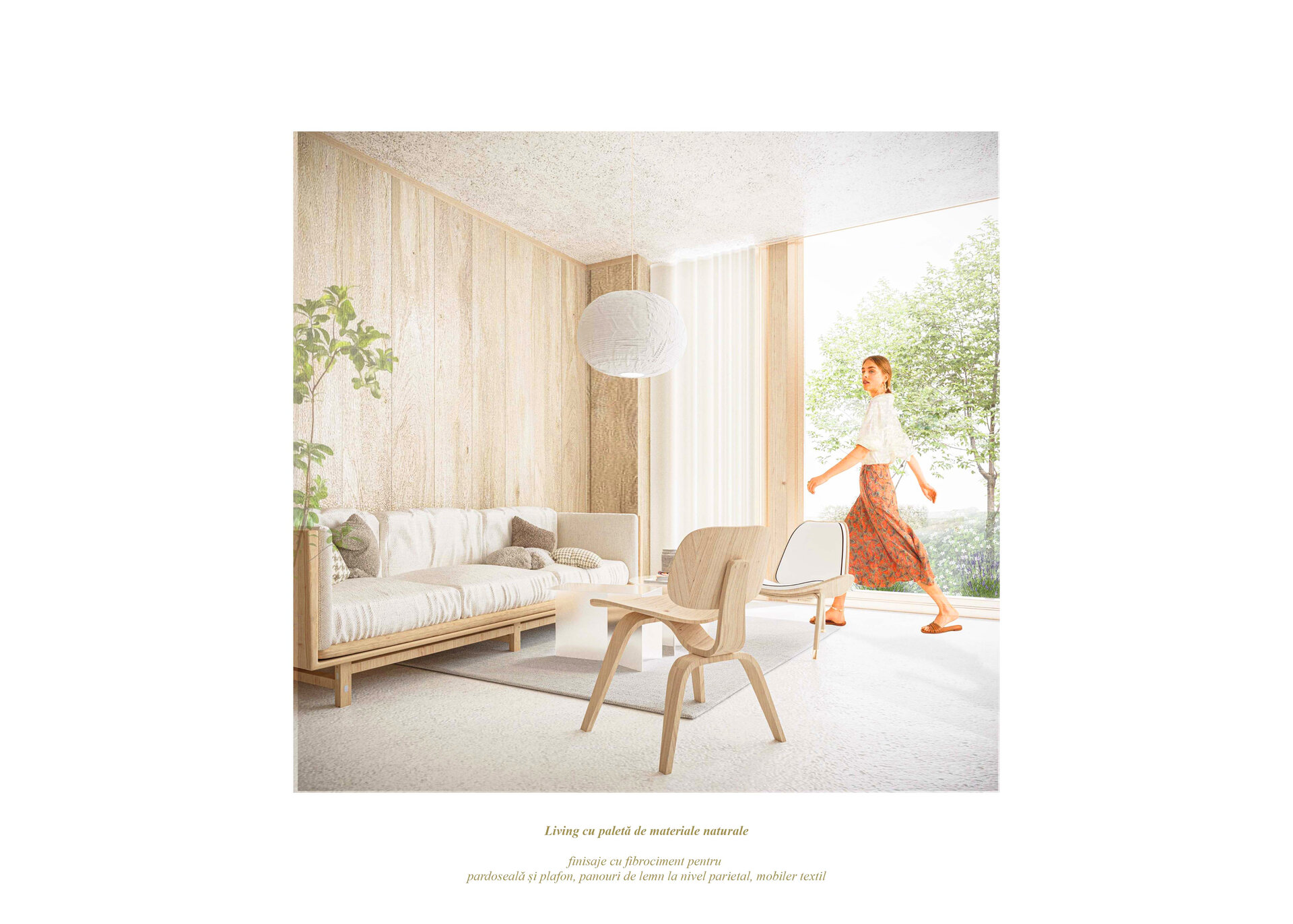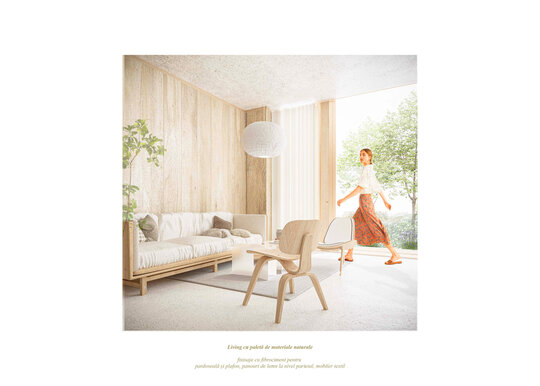 Materialele locale reciclabile: Finisaje de fațadă și finisajele interioare sunt din panouri din lemn de fag
