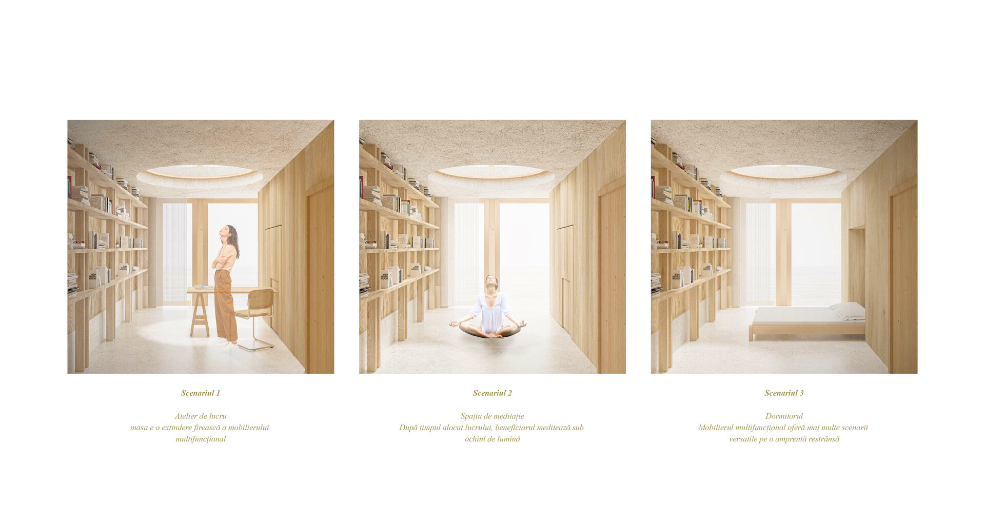Mobilierul multifuncțional oferă mai multe scenarii versatile pe o amprentă restrânsă.