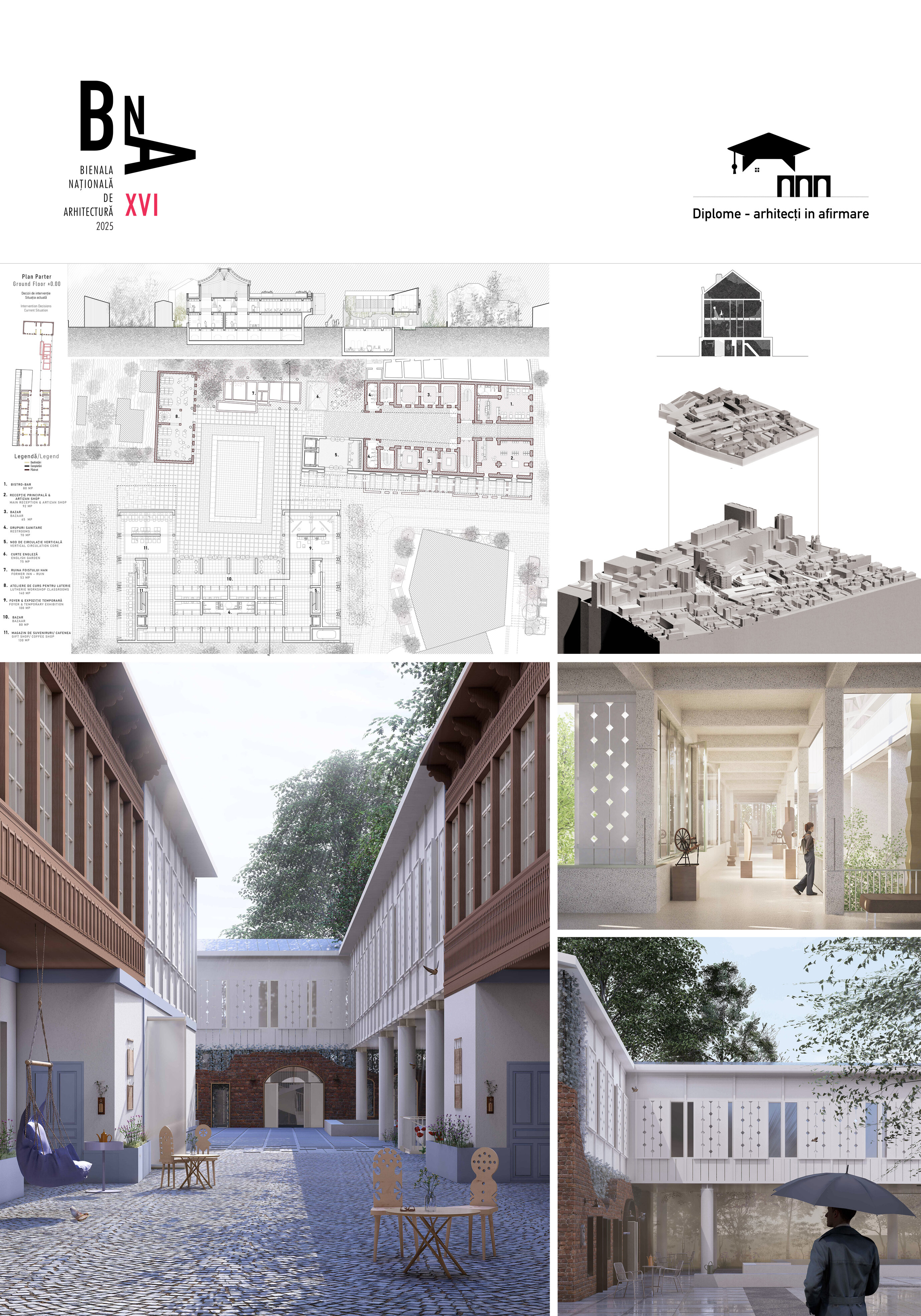 Prin integrarea memoriei locului și a unui limbaj arhitectural interpretativ, proiectul propune un model de regenerare urbană care activează spații istorice latente, transformând fostul bazar într-un pol cultural, dedicat meșteșugurilor, comunității și vieții urbane durabile.