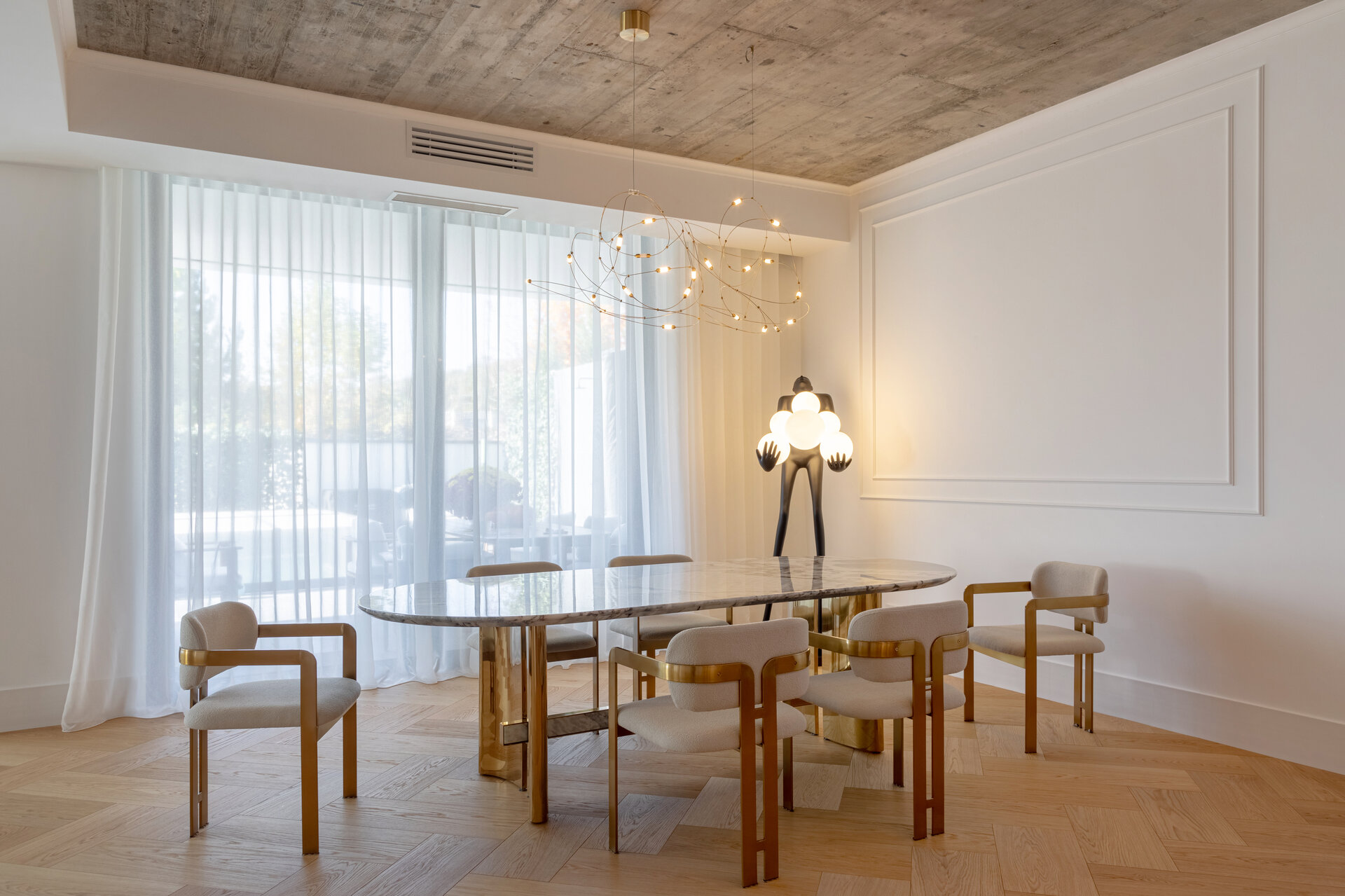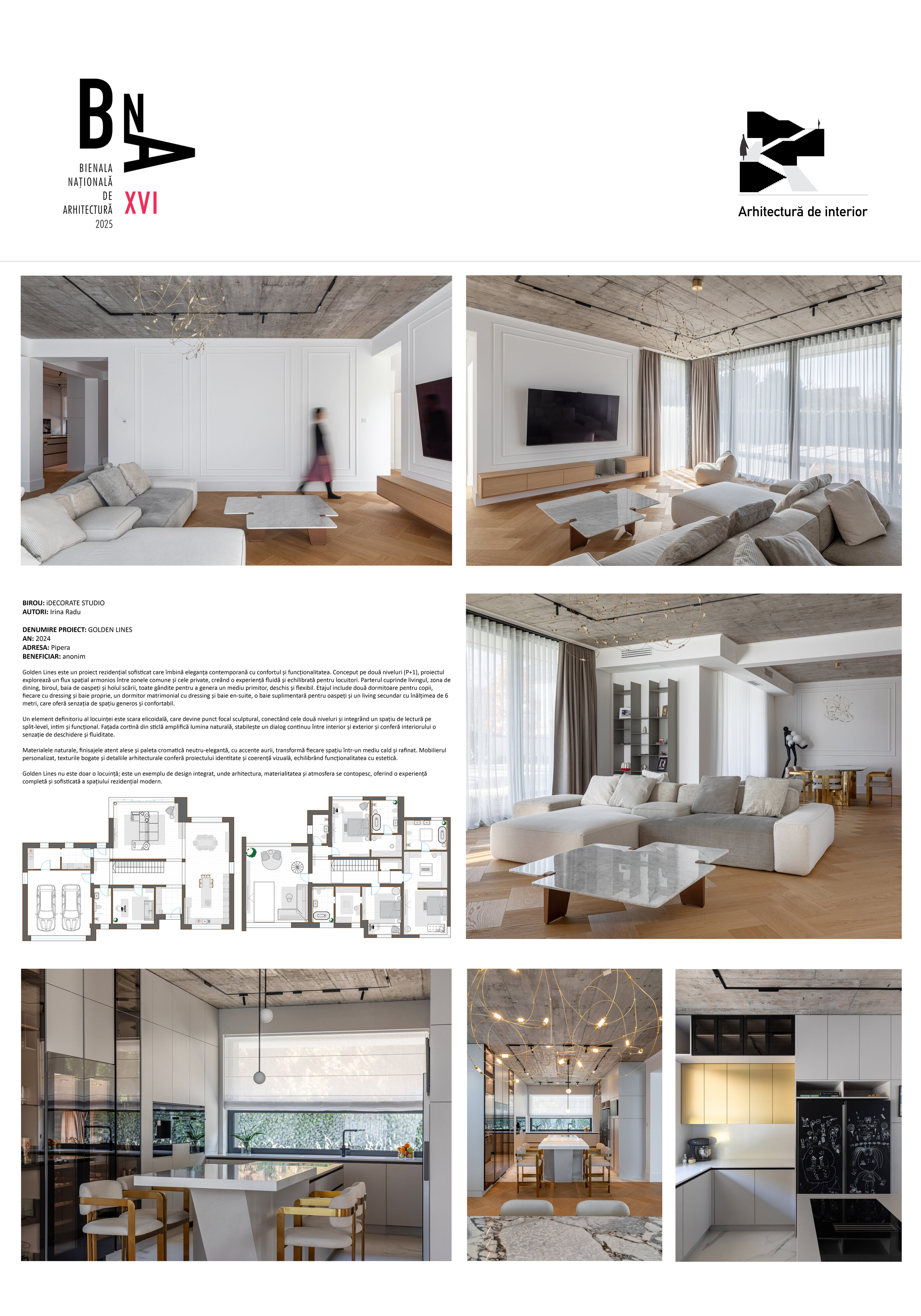 Situat în Pipera, Golden Lines este un proiect elegant de design interior rezidențial, ce îmbină armonios rafinamentul contemporan cu căldura și funcționalitatea. Construit de la zero, acest imobil desfășurat pe două niveluri (P+1) dezvăluie spații atent gândite, unde confortul, estetica și elementele arhitecturale unice se regăsesc într-un echilibru perfect.