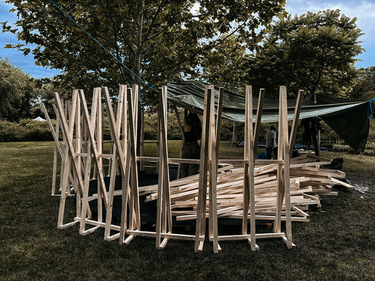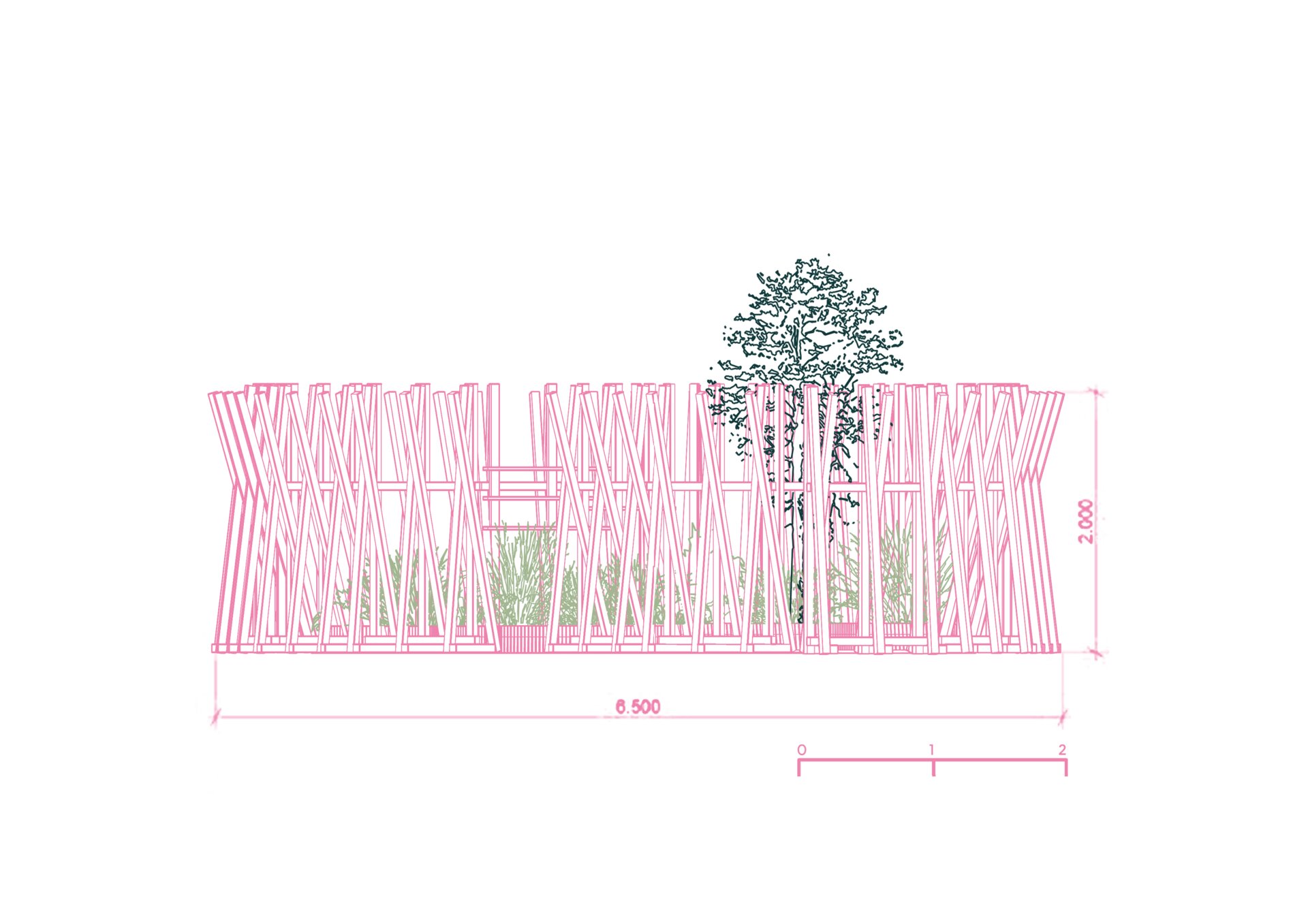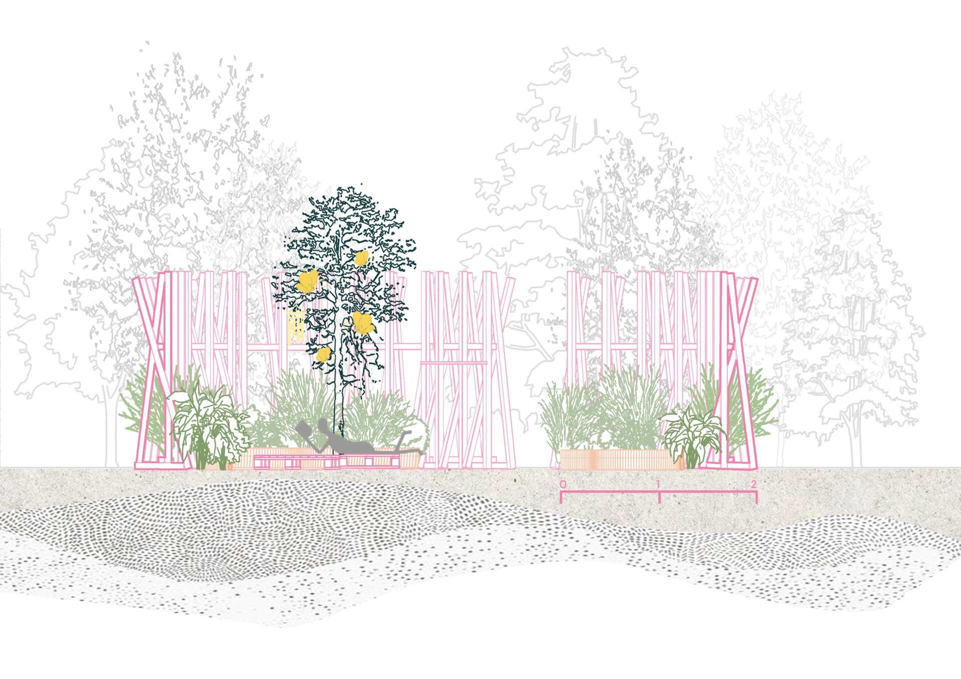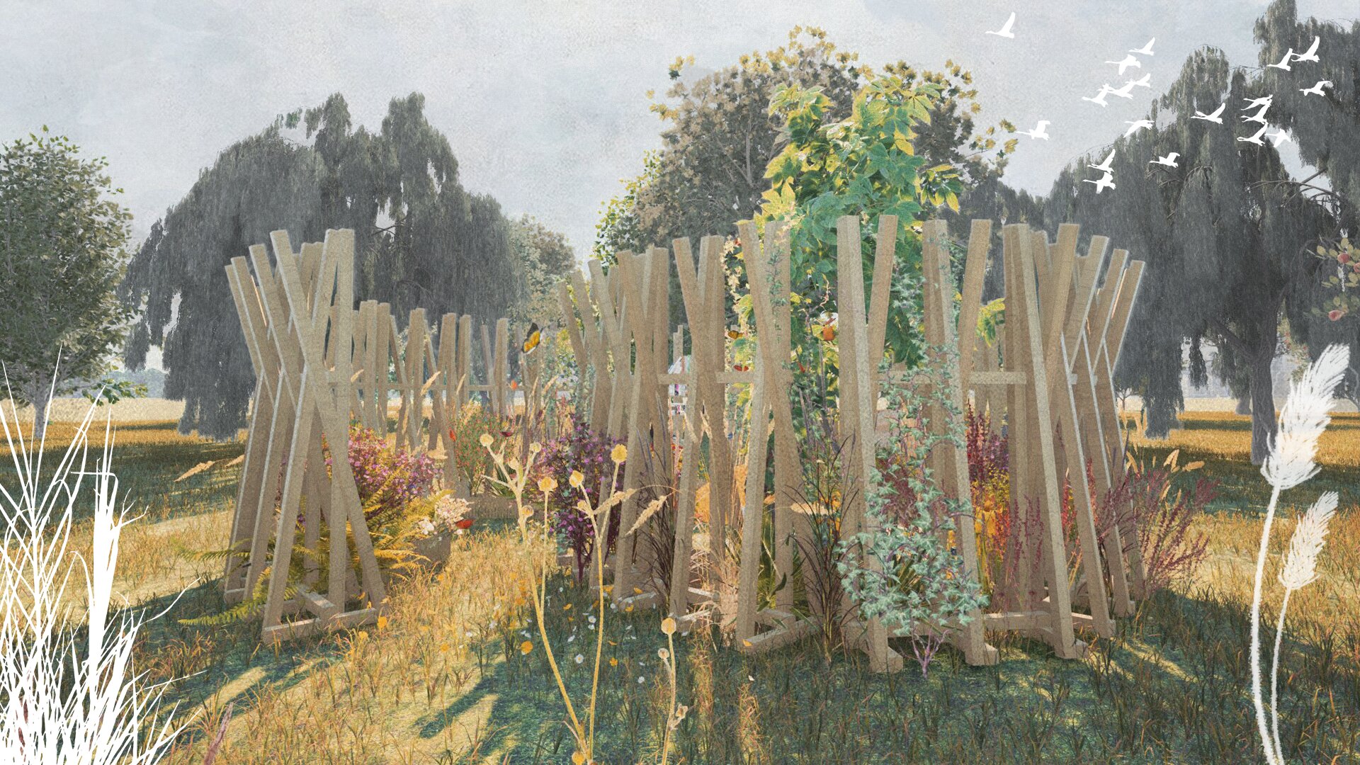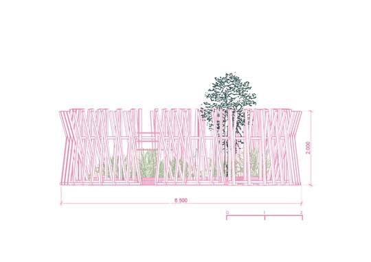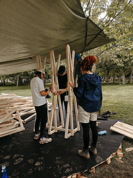 “Timpul nu trece ... ci doar se rotește în cercuri care se închid peste oameni.” Grădina noastră literară, bazată pe romanul “Un veac de singurătate” de Gabriel García Márquez, evocă atmosfera uneia dintre principalele locații ale poveștii: curtea interioară a casei familiale. Instalația urmează o formă de spirală, simbolizând căile sinuoase către interior – calea autocunoașterii. Greșelile repetate ale familiei Buendía evocă ciclicitatea timpului, unde singurătatea nu este doar izolare, ci un spațiu interior ce invită la reflecție. Instalația este un element spectaculos privit de la distanță, dar de aproape lasă loc misterului și stârnește curiozitate. Instalația oferă atât umbră, cât și jocuri de lumină datorită formei sale și structurii din lemn.