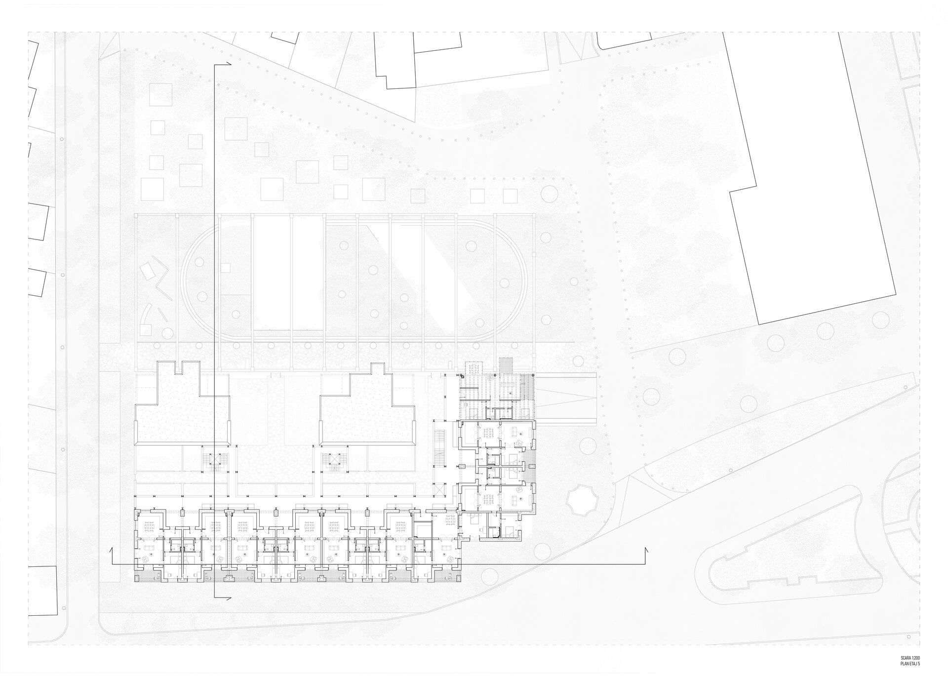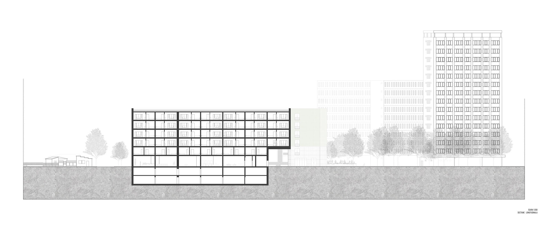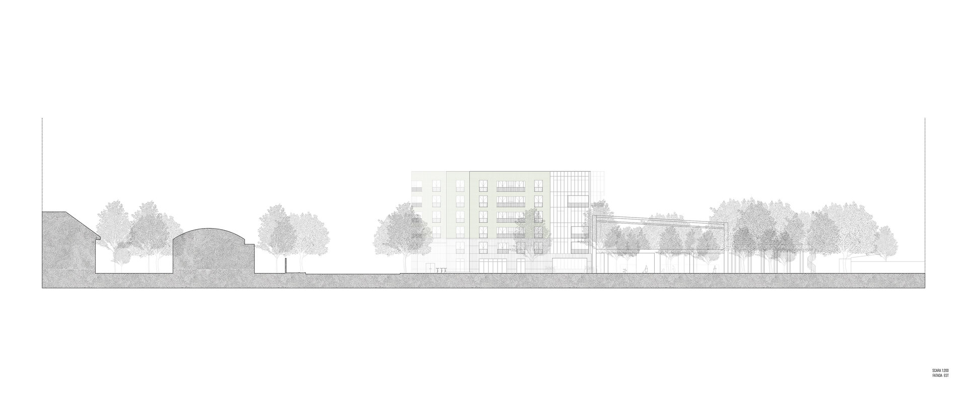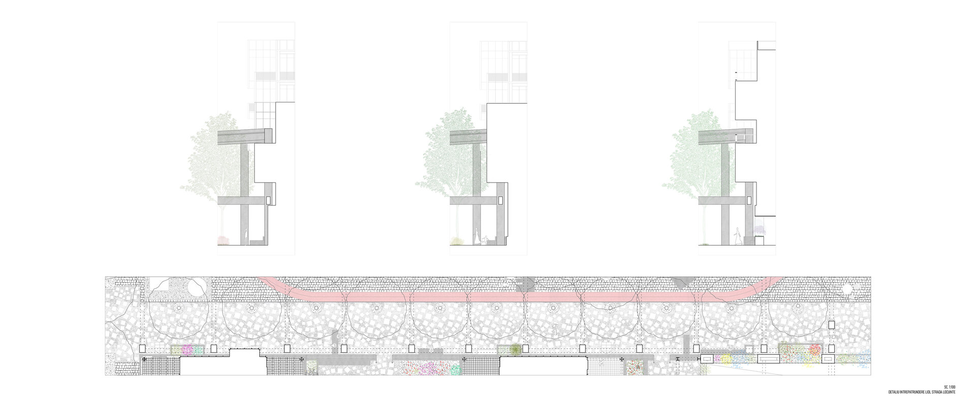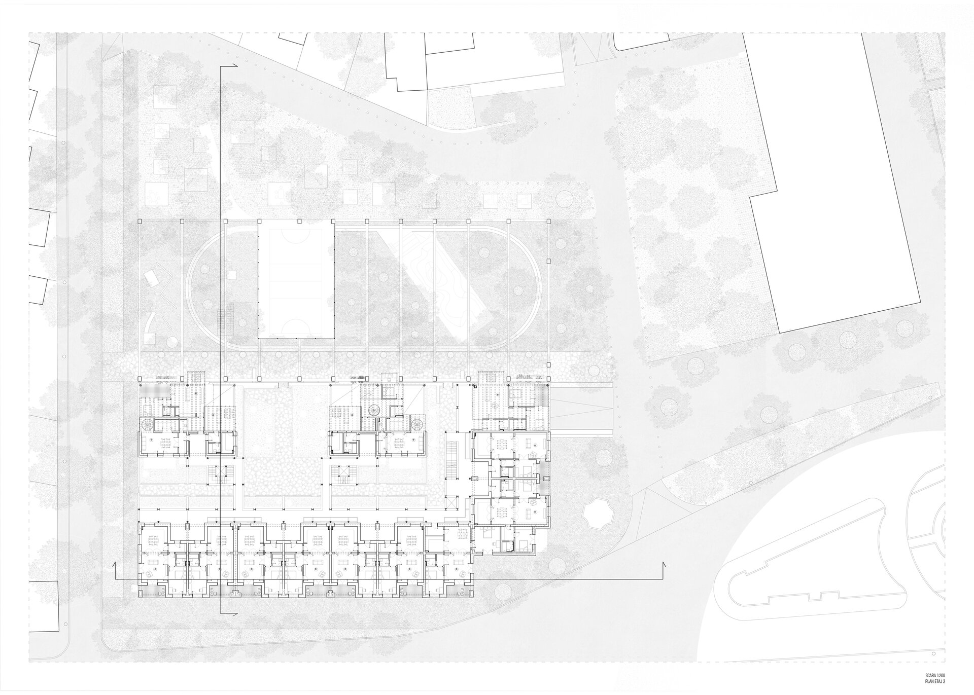 A doua fâșie este structura existentă, transformată acum într-o ruină - care adăpostește un nou tip de spațiu public. Aici, diverse funcții sunt formate prin obiecte discrete, concentrate, care există independent, dar rămân conectate la structura mai mare care le cuprinde.