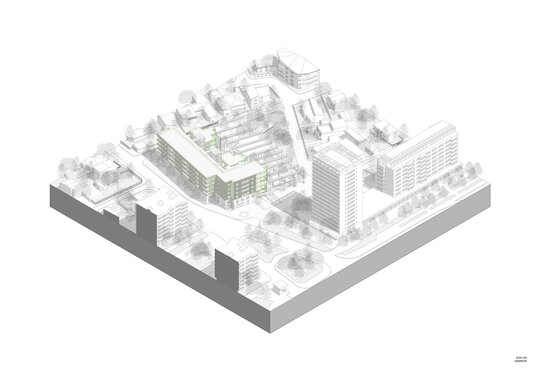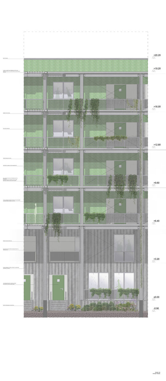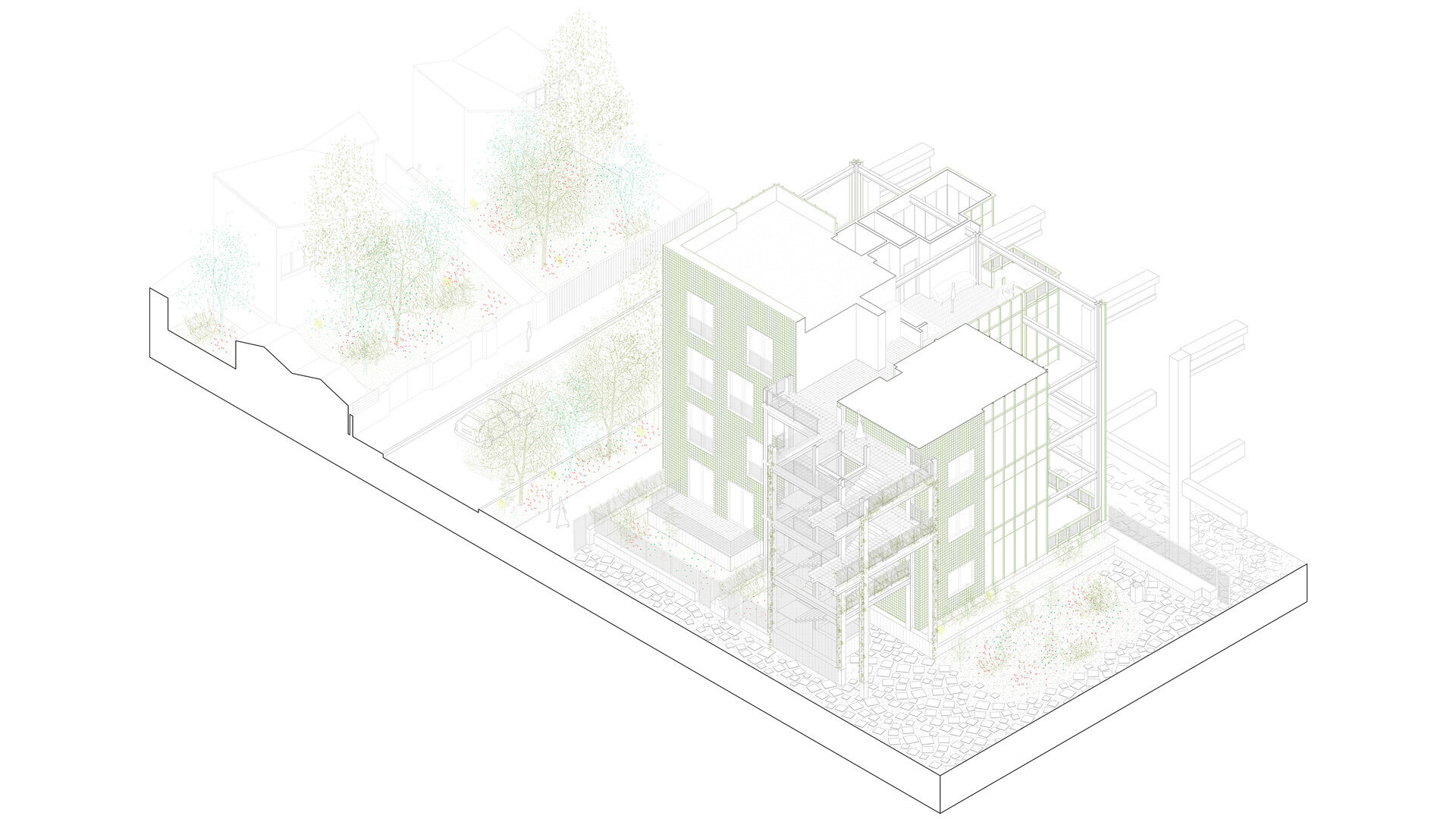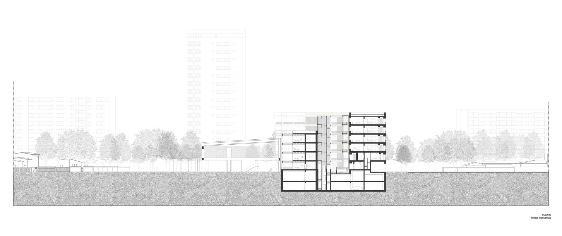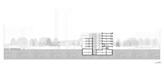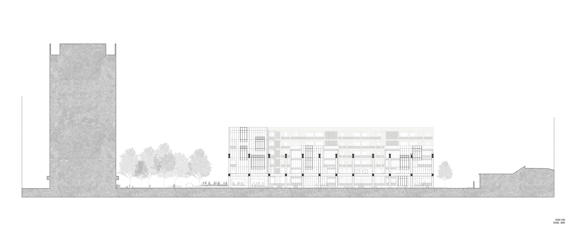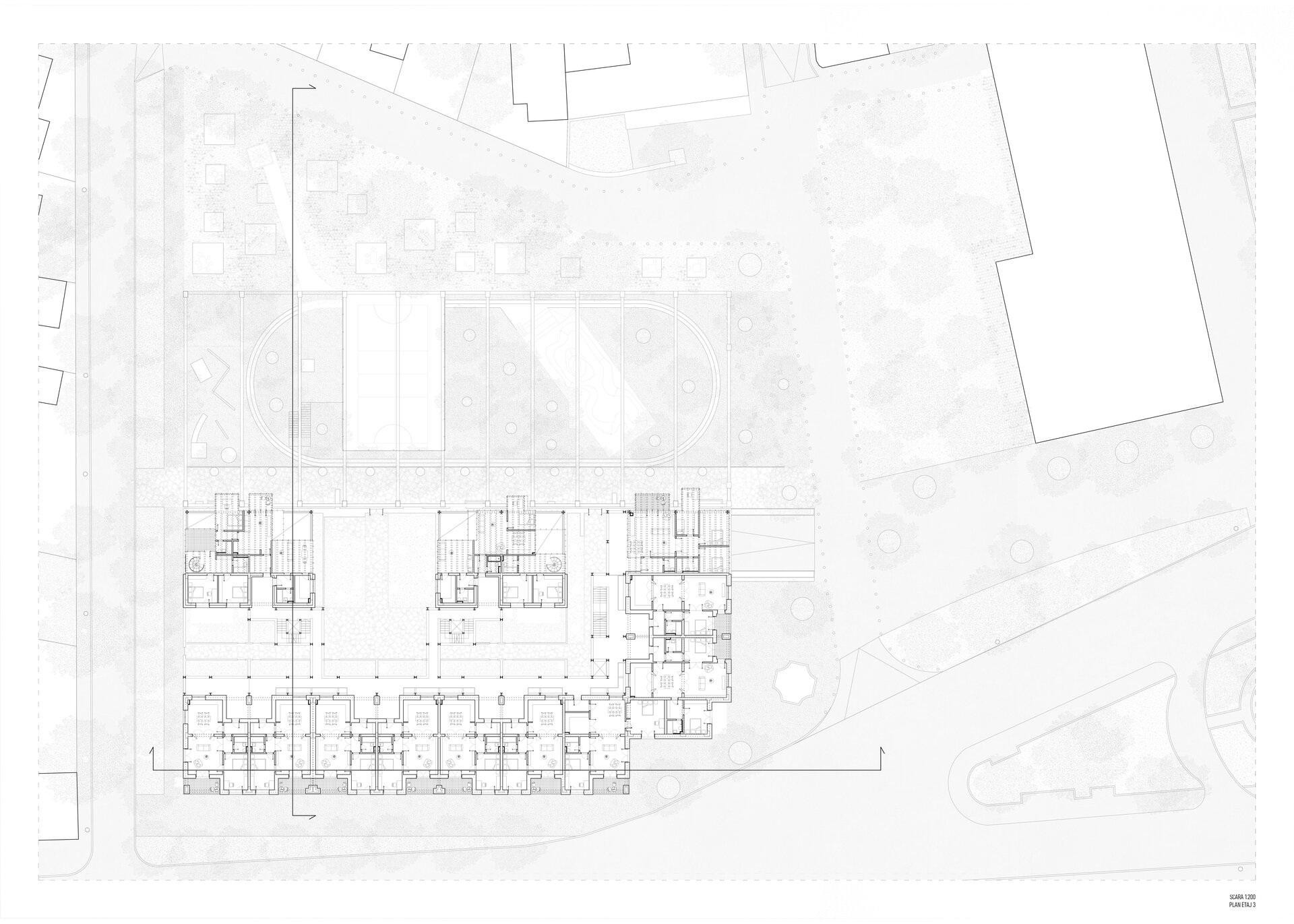 A doua fâșie este structura existentă, transformată acum într-o ruină - care adăpostește un nou tip de spațiu public. Aici, diverse funcții sunt formate prin obiecte discrete, concentrate, care există independent, dar rămân conectate la structura mai mare care le cuprinde.
