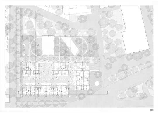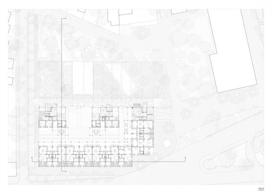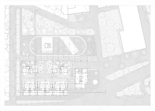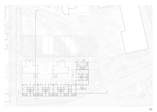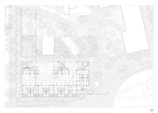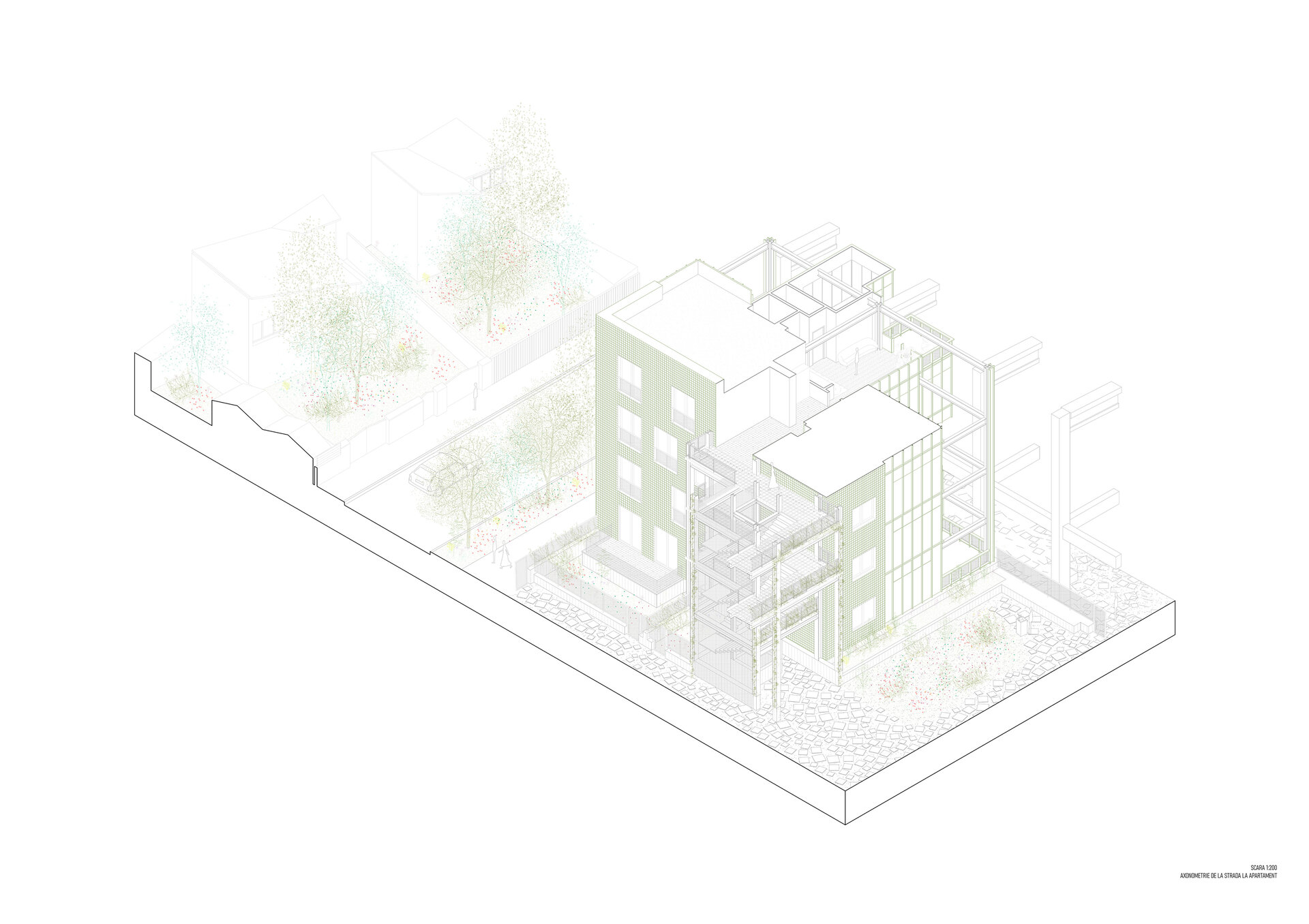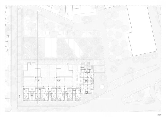 Prima fâșie aparține colectivului rezidențial - o incintă privată ce conține casele și grădinile acestora, unde relațiile de vecinătate cresc în intimitate, desfășurându-se independent de restul sitului. Această secvență este dezvăluită prin utilizarea unei cursive.